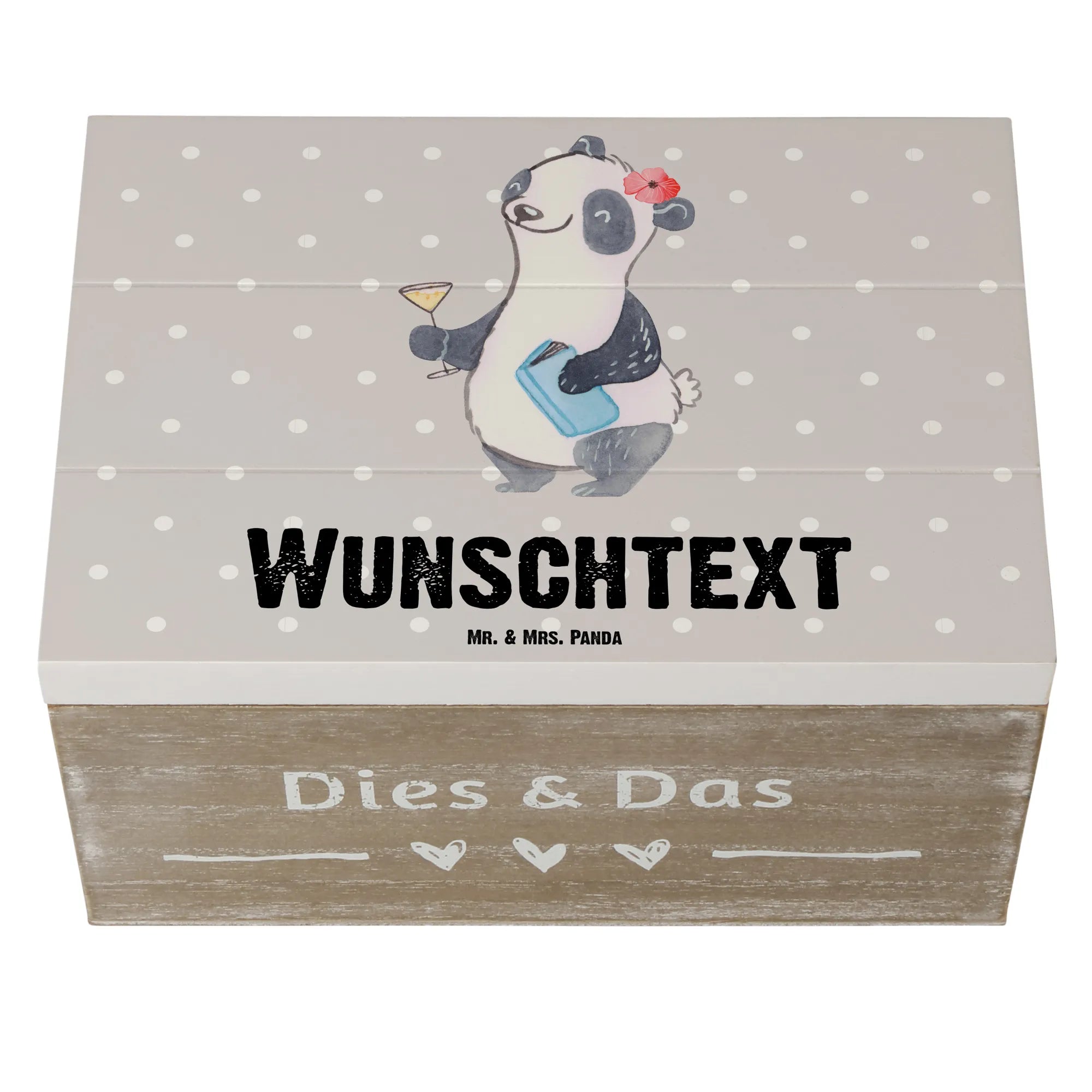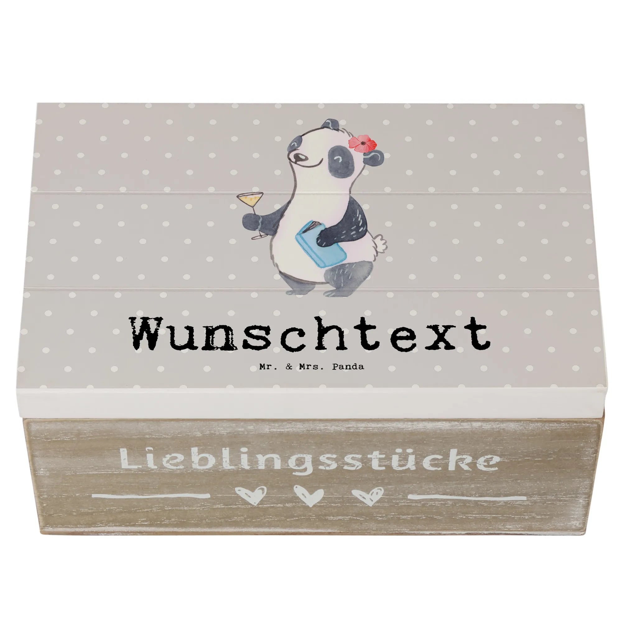 Personalizowane drewniane pudełko Panda Najlepsza sąsiadka na świecie – Mr. & Mrs. Panda