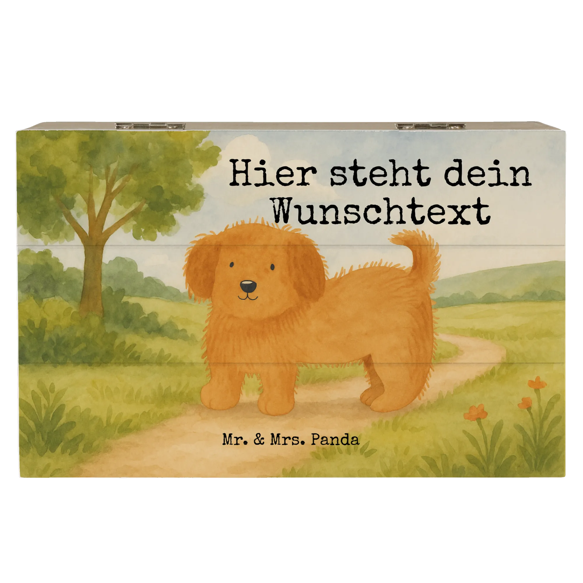 Personalizowane drewniane pudełko pies puszysty Design - 19 x 12 cm