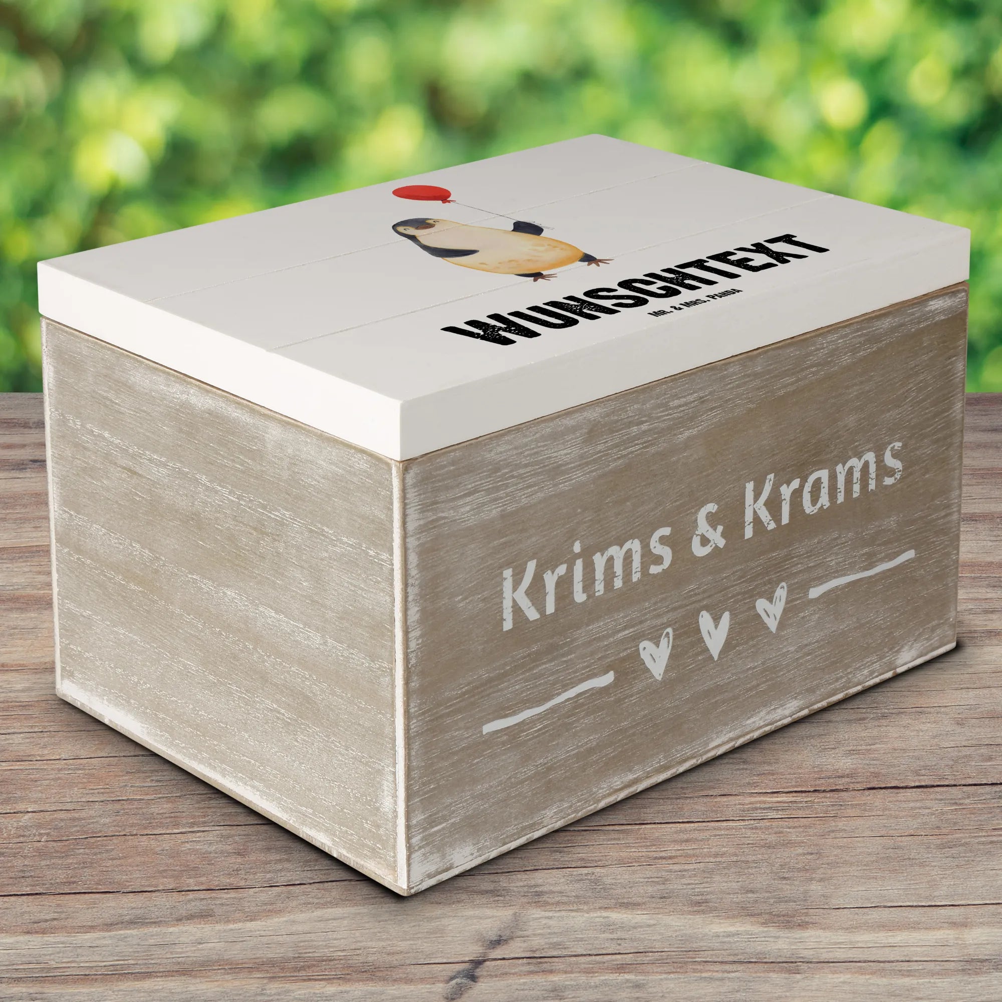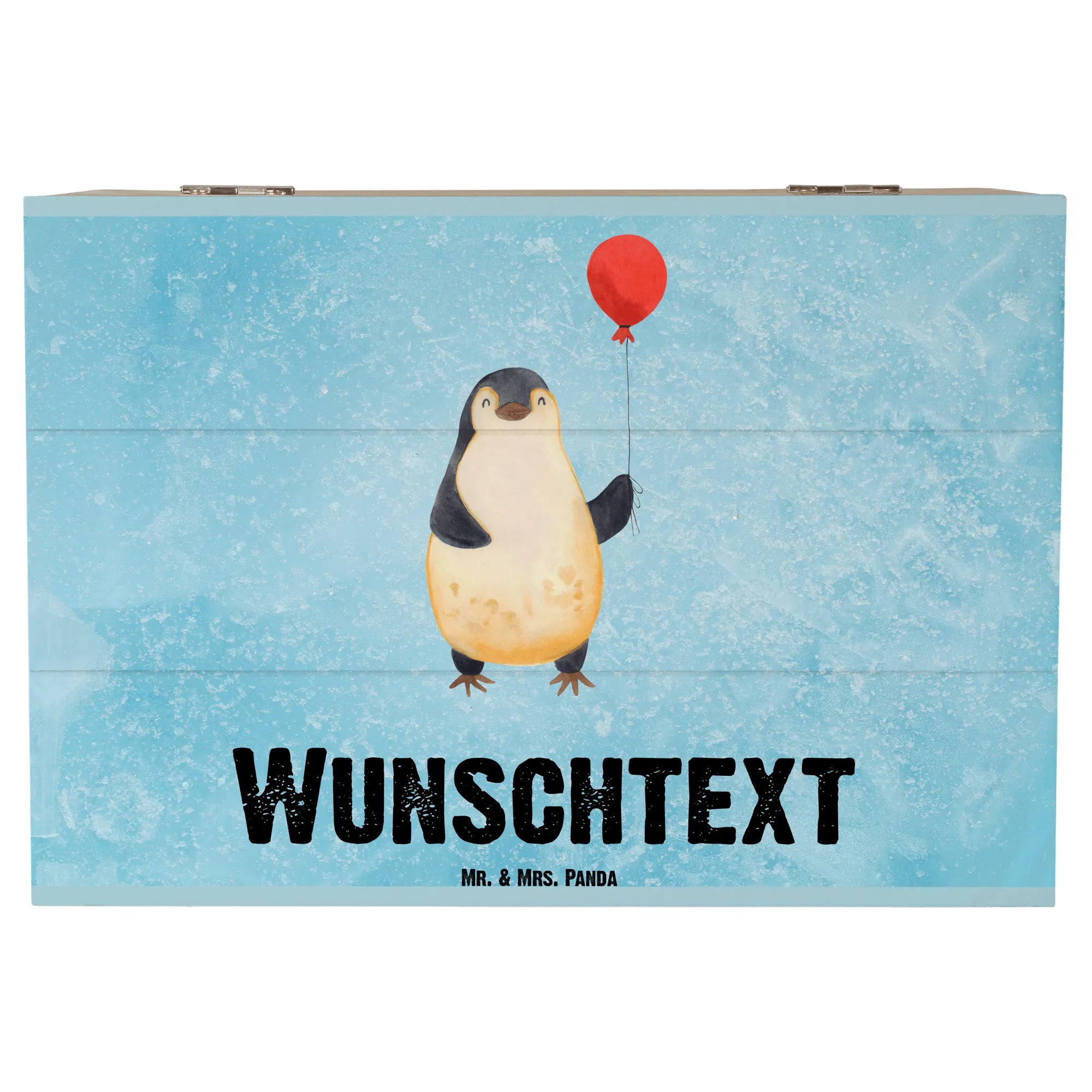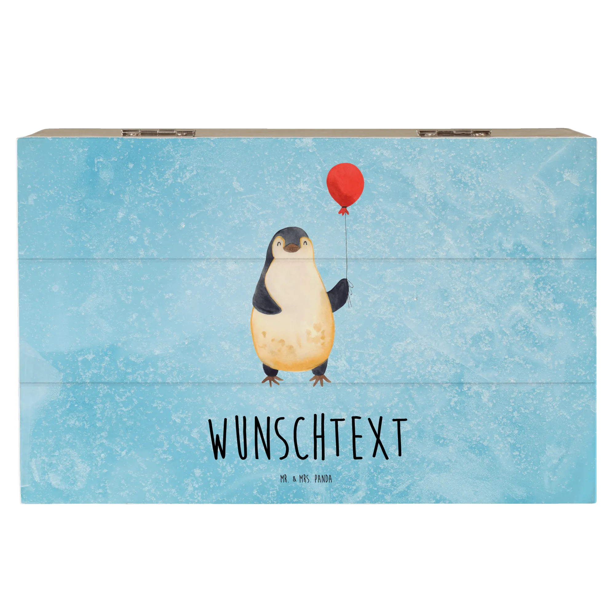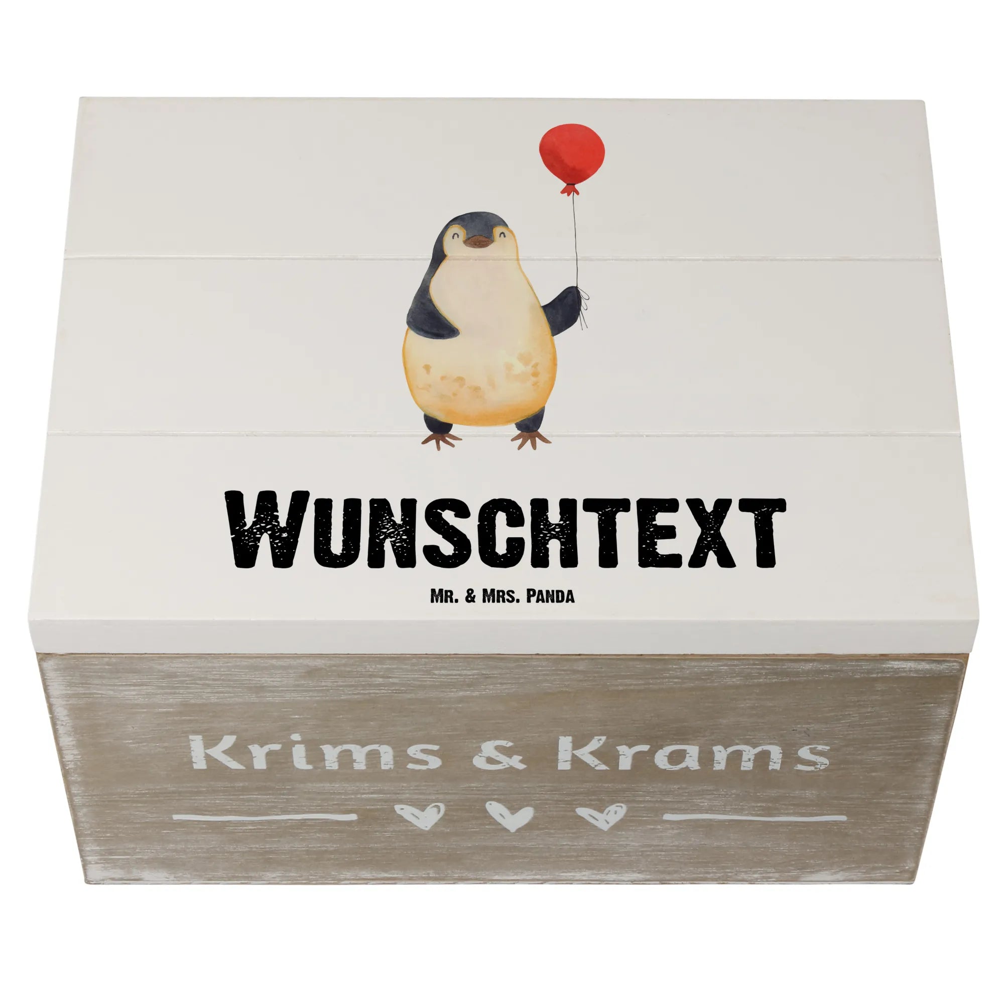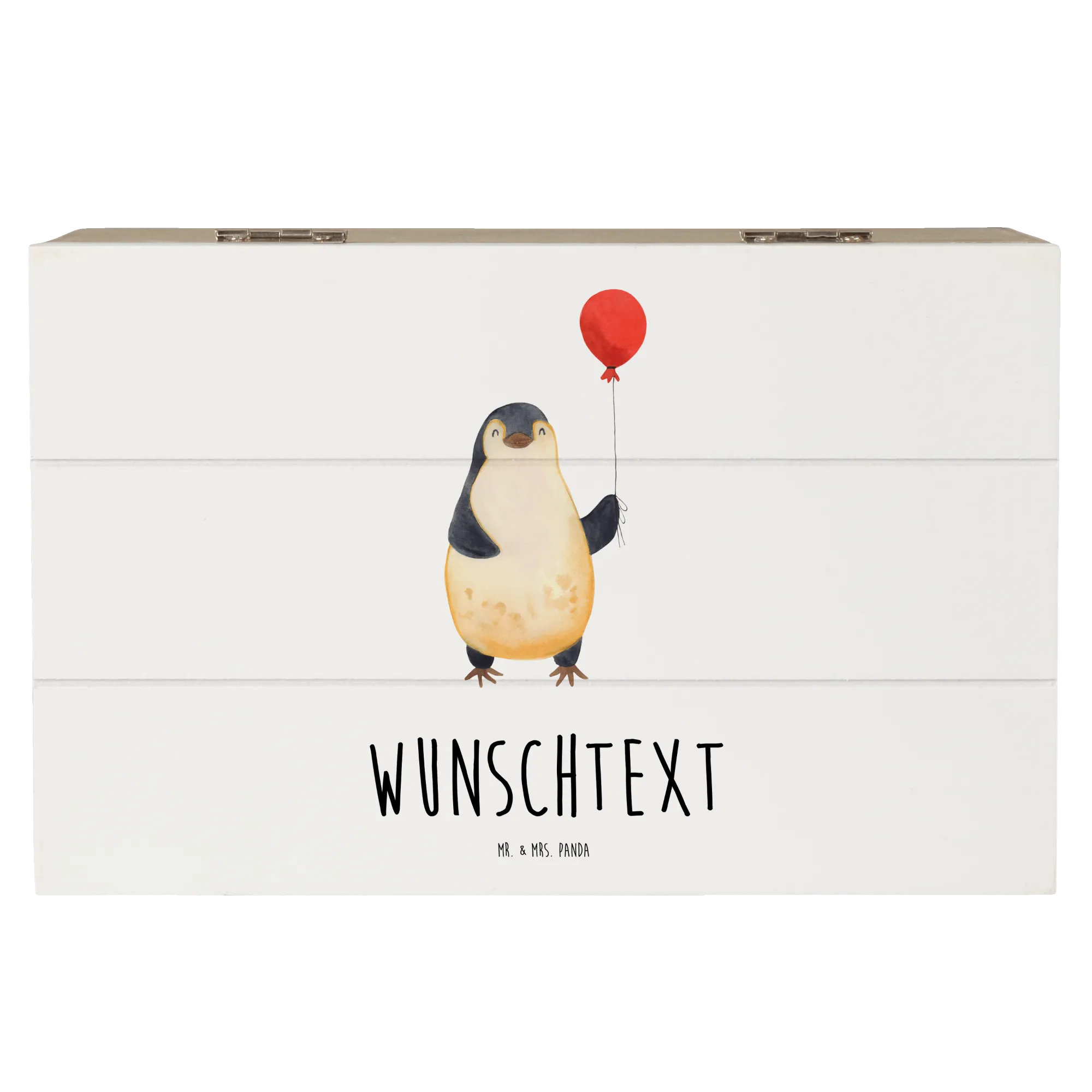 Personalizowane drewniane pudełko pingwin balon - 22 x 15 cm - biały