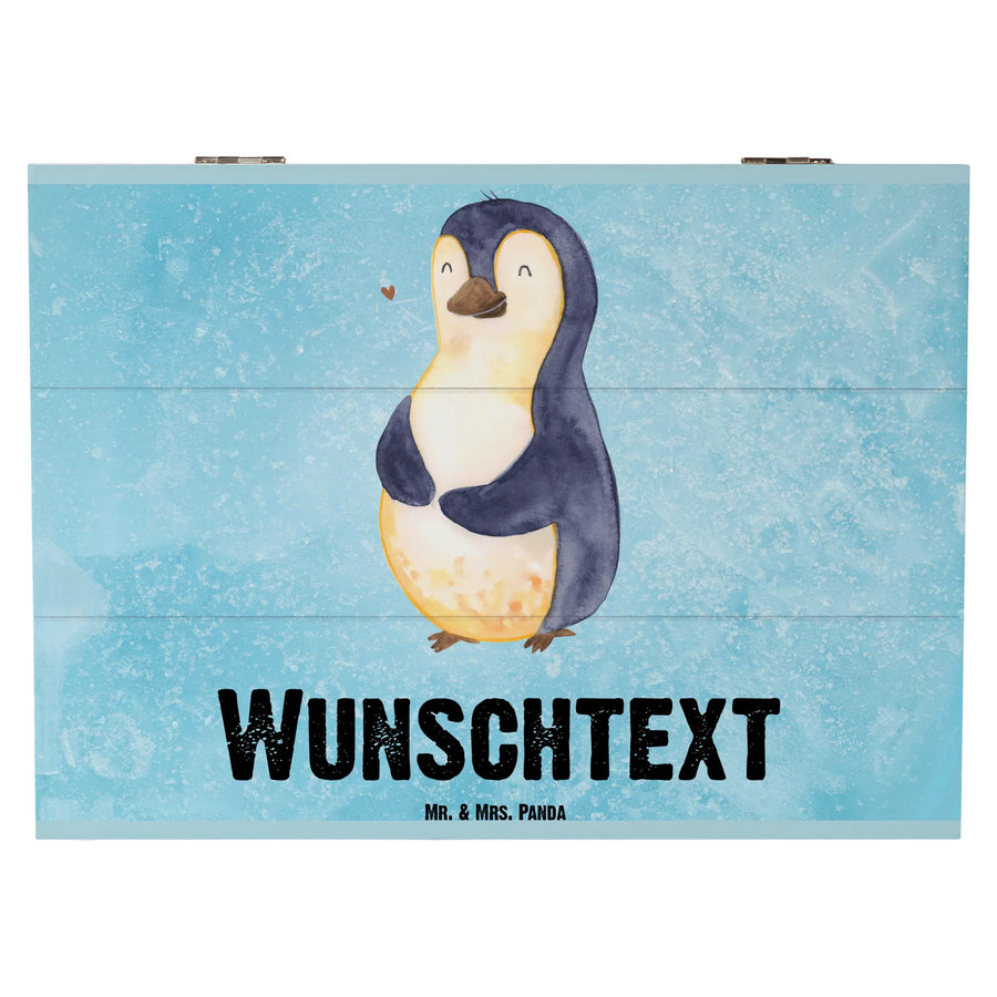 Personalizowane drewniane pudełko Pingwin dieta - 25 x 18 cm - Eisblau