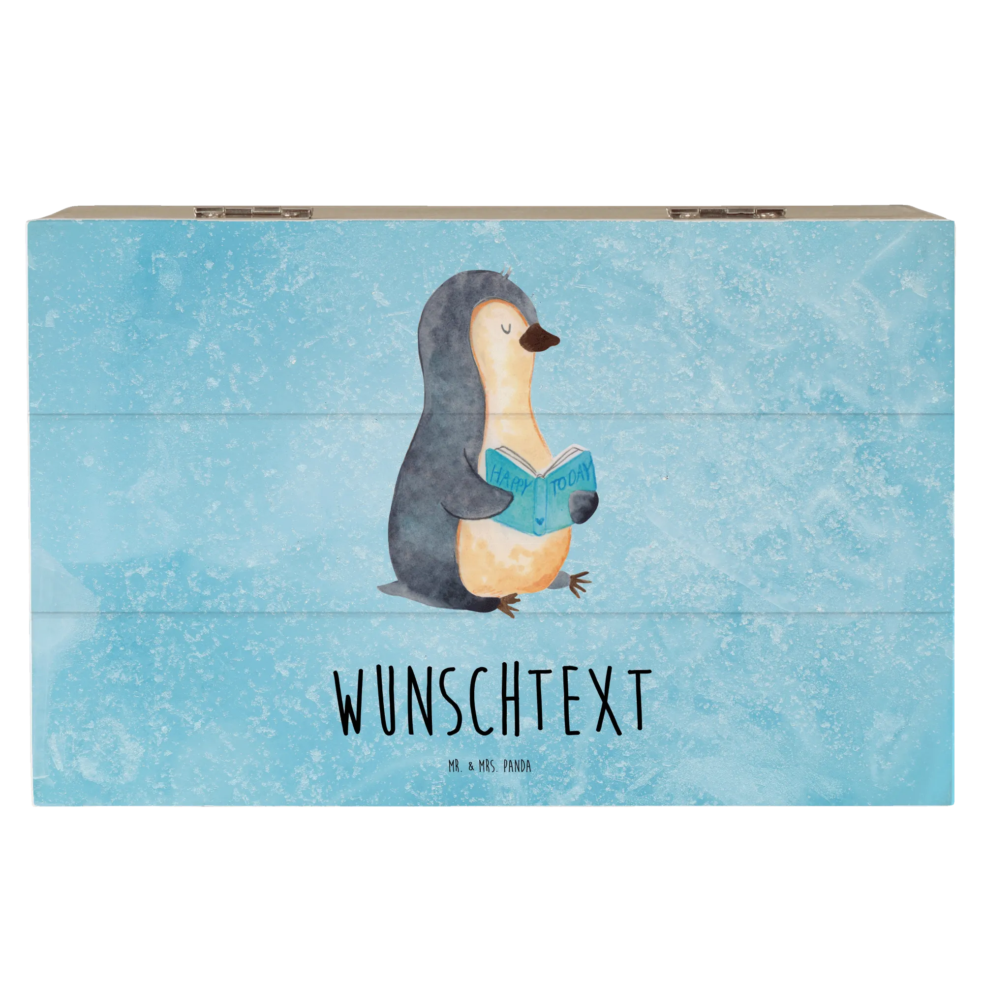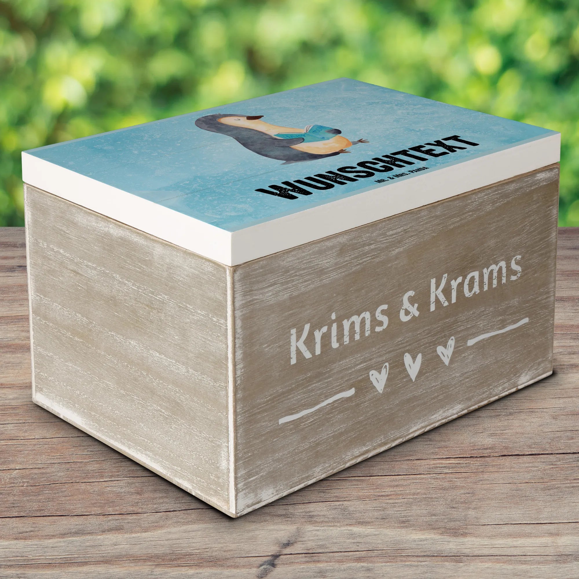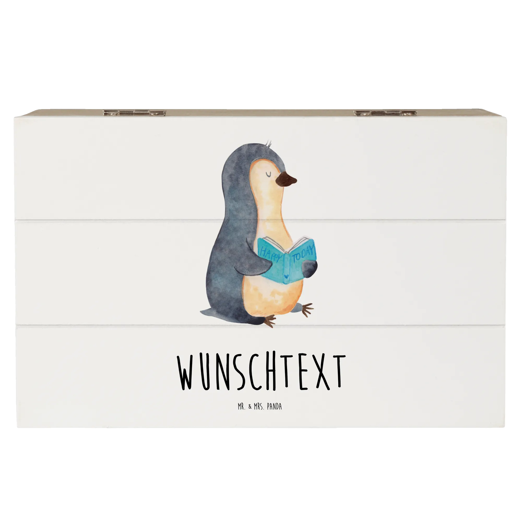 Personalizowane drewniane pudełko pingwin książka - 25 x 18 cm - Biały