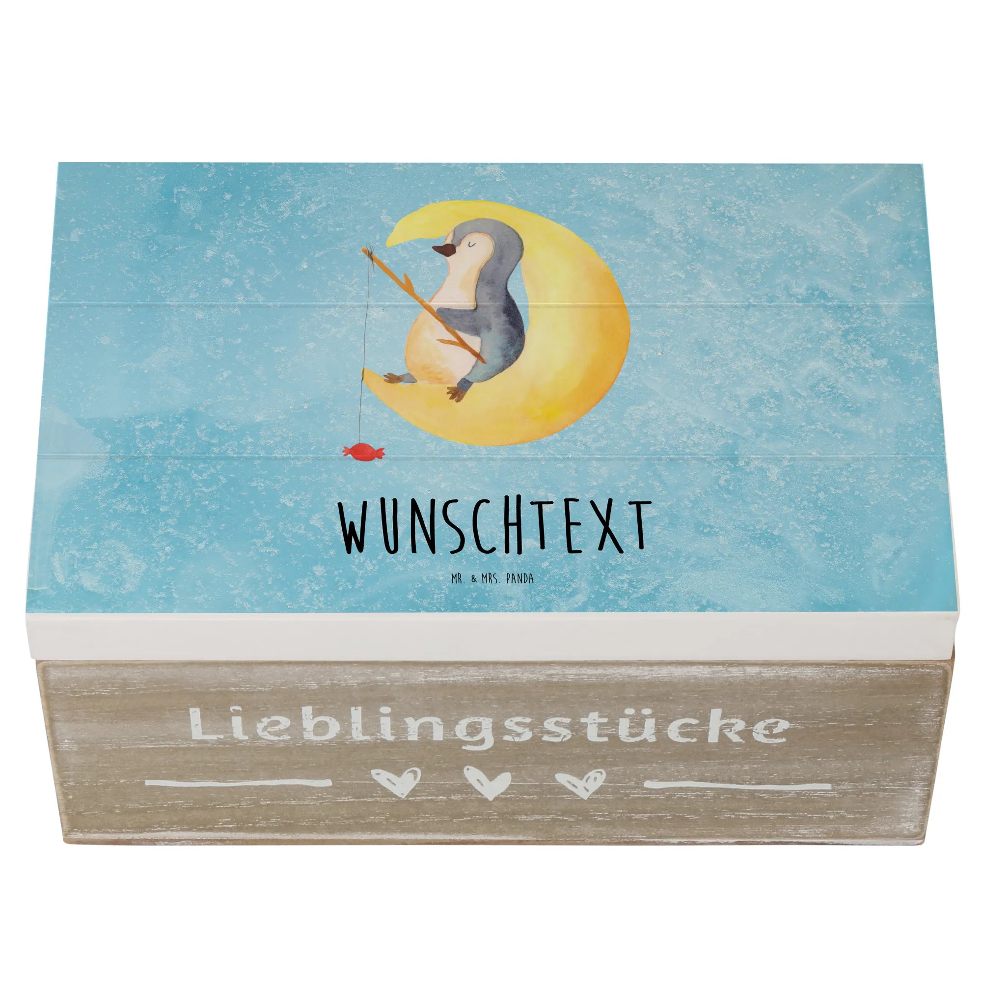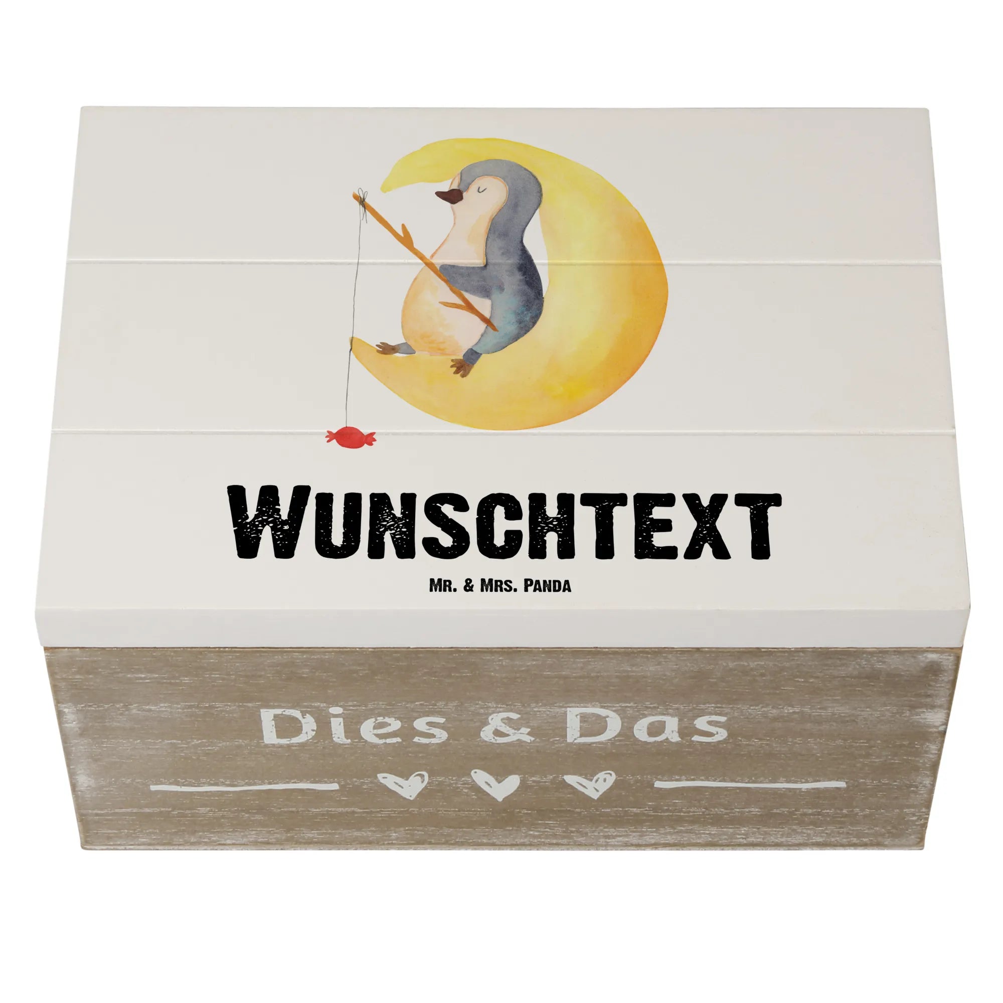 Personalizowane drewniane pudełko pingwin księżyc - 22 x 15 cm - Biały