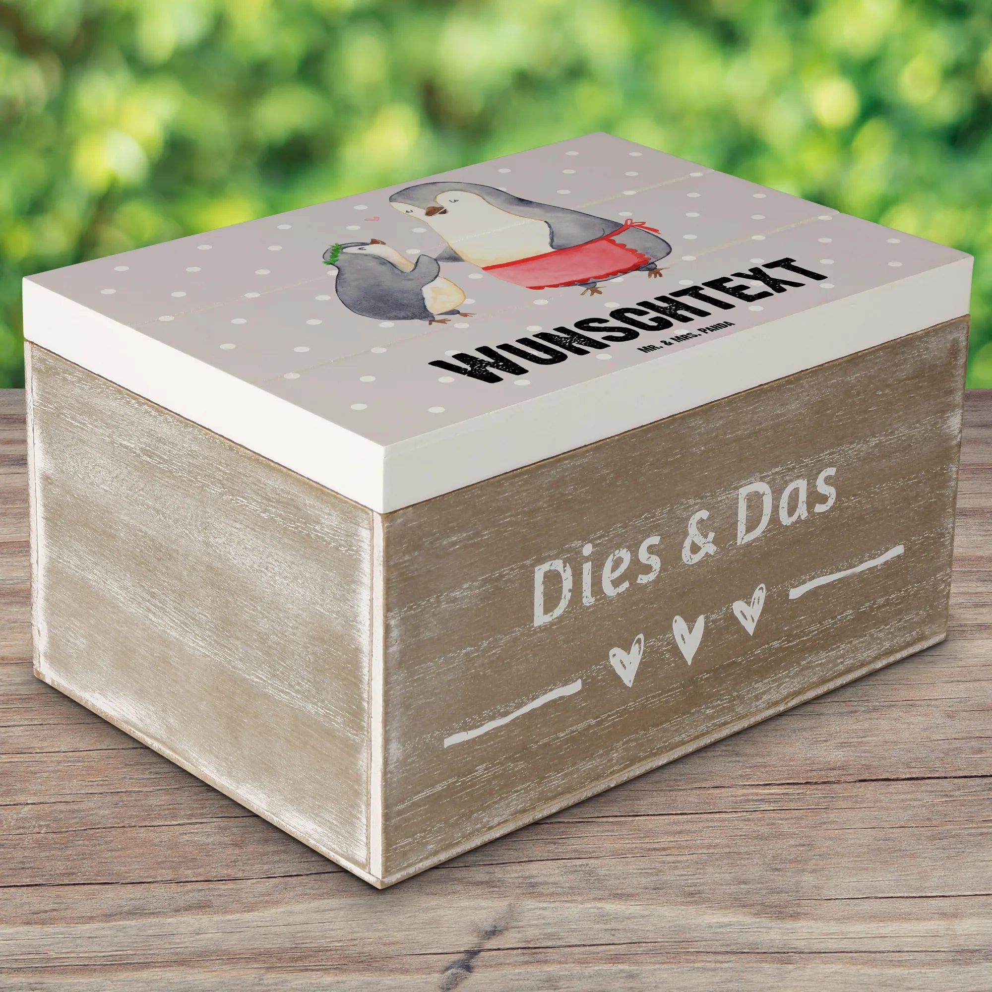 Personalizowane drewniane pudełko pingwin Najlepsza mama na świecie - 22 x 15 cm - biały