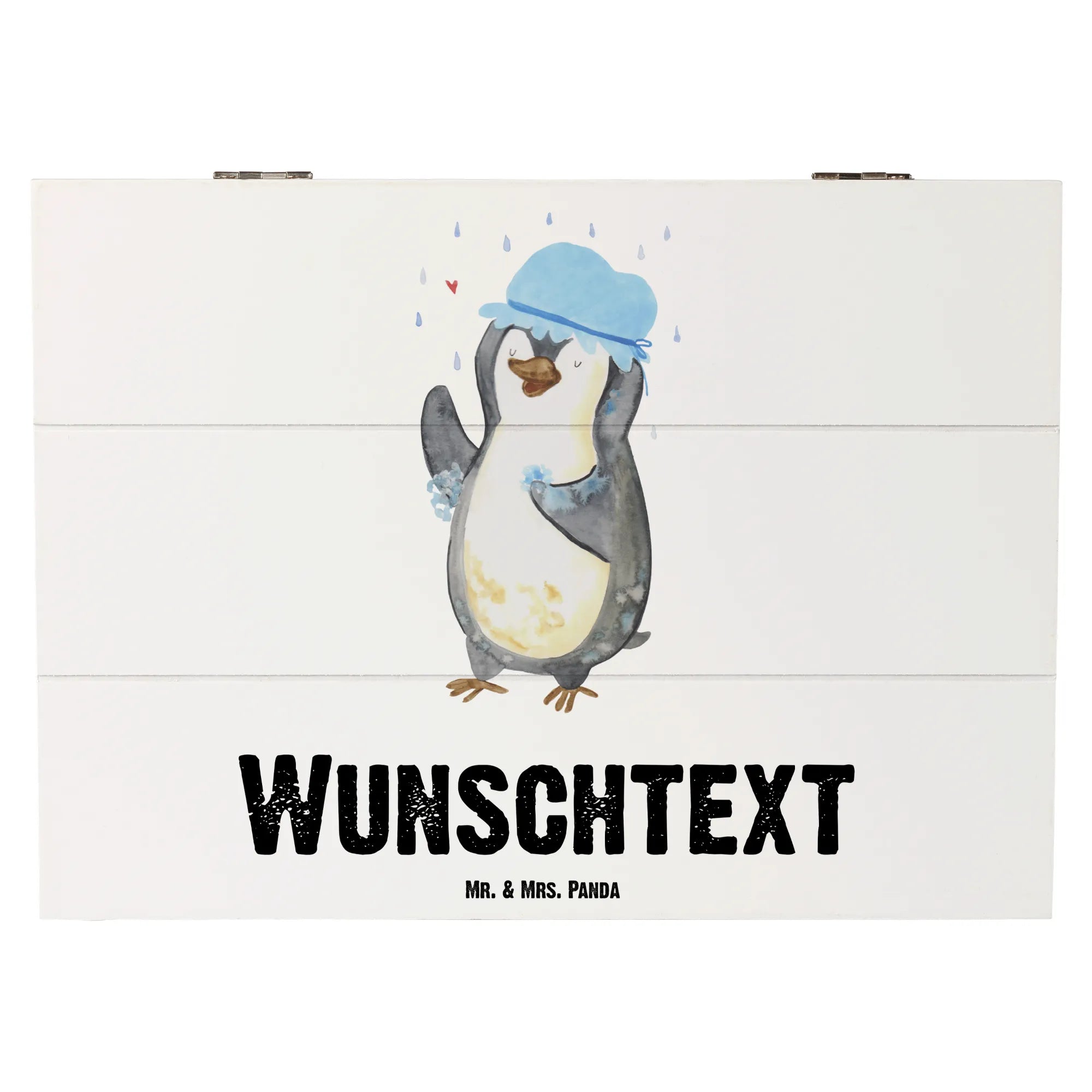Personalizowane drewniane pudełko Pingwin Prysznic - 25 x 18 cm - lodowoniebieski