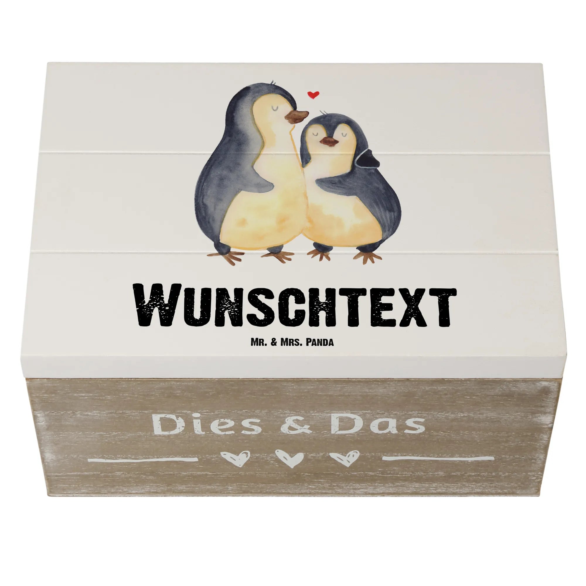 Personalizowane drewniane pudełko Pingwin przytulać - 25 x 18 cm - lodowoniebieski