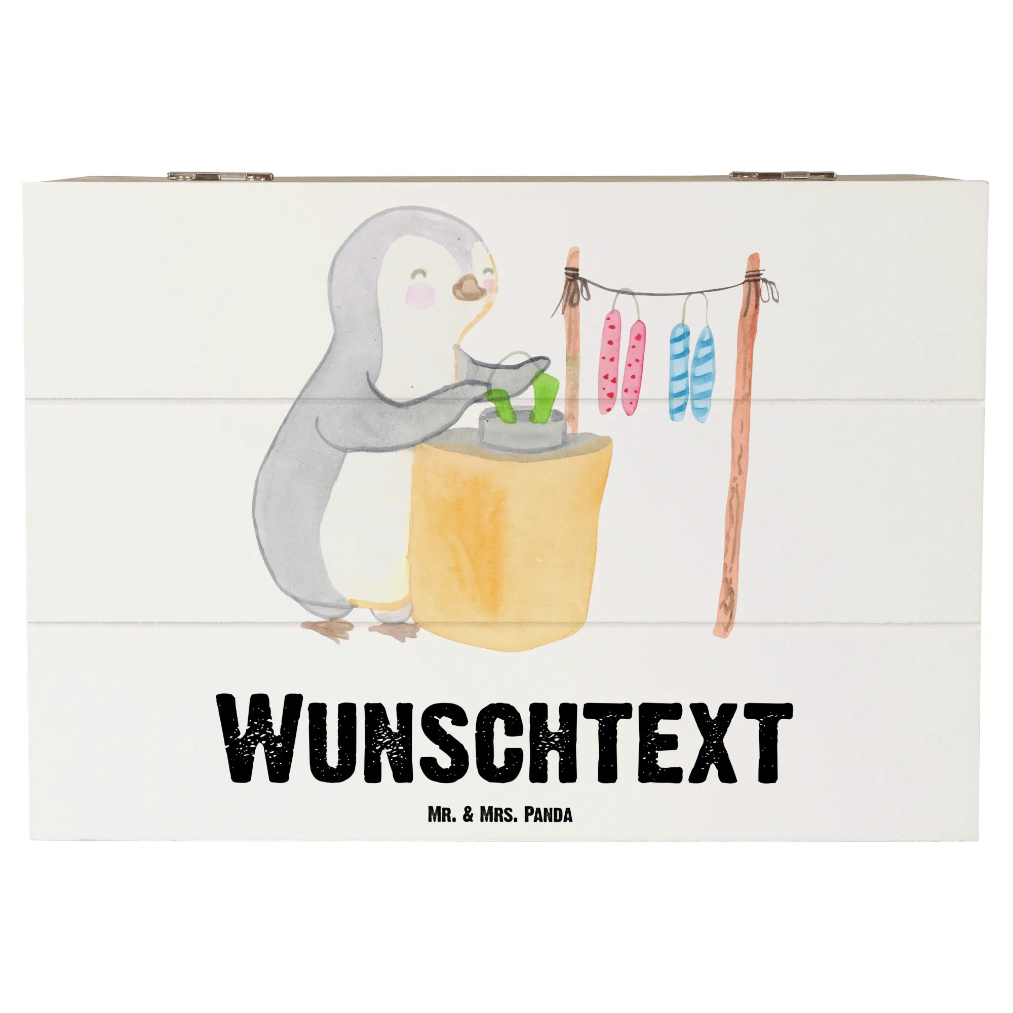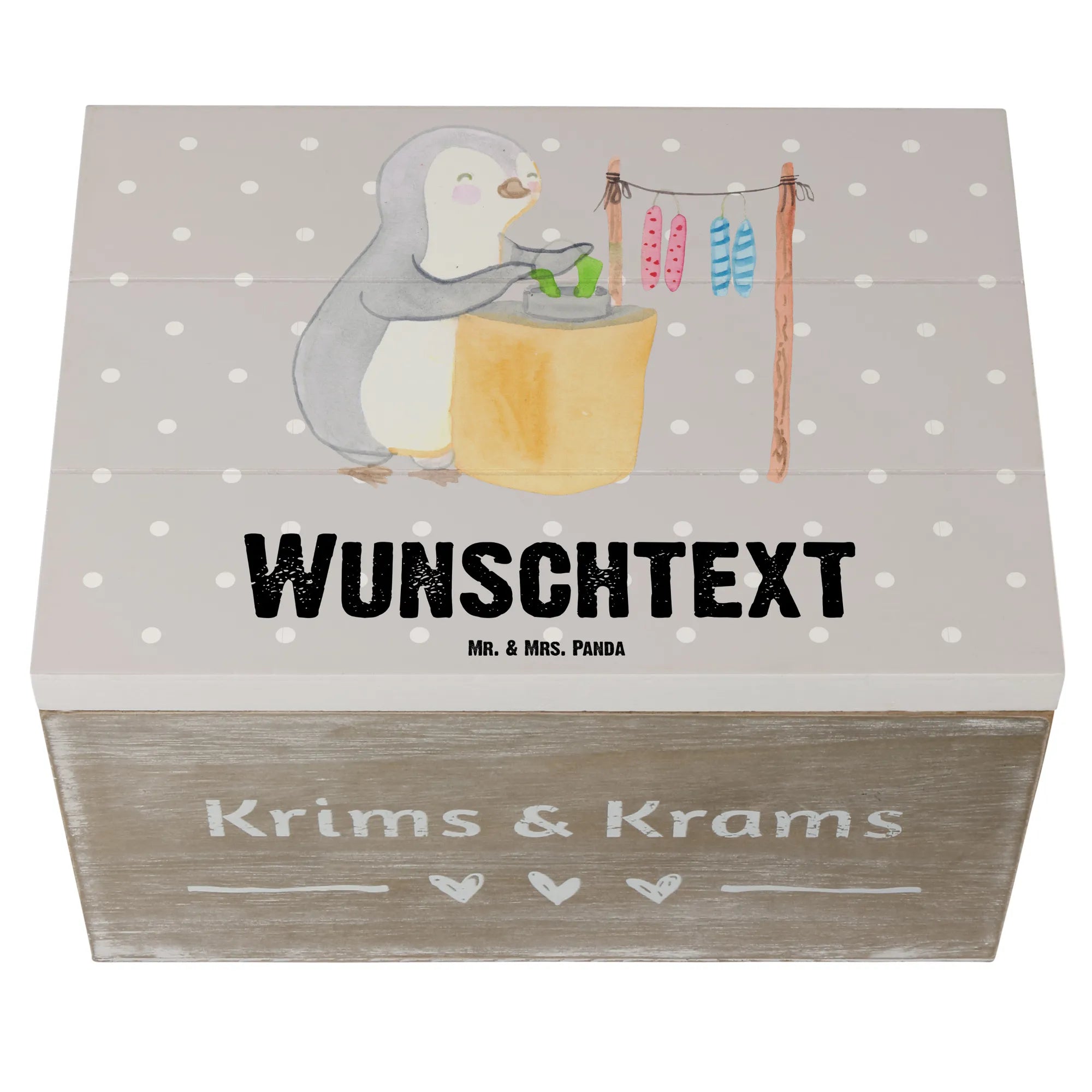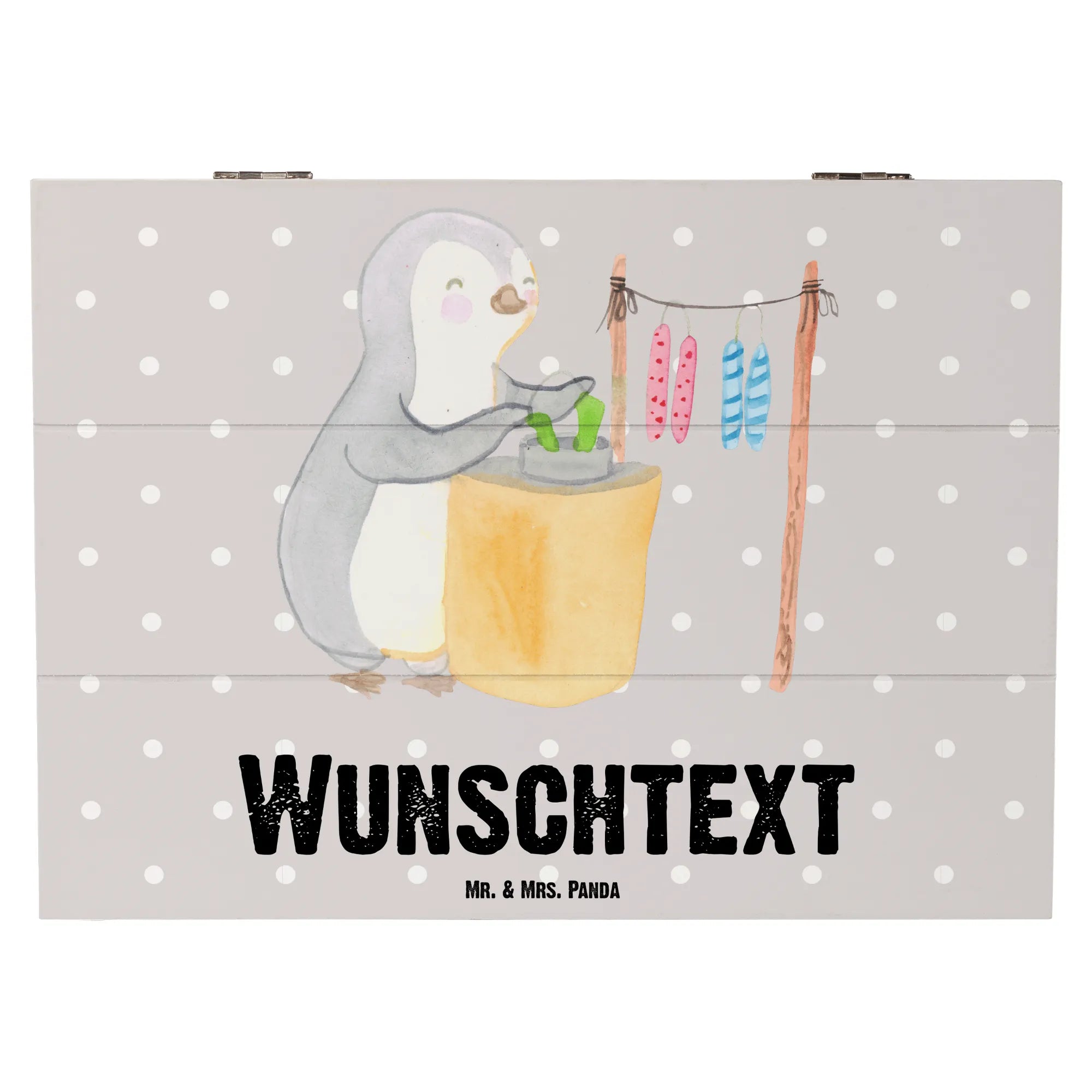 Personalizowane drewniane pudełko Pingwin Robienie świec - 22 x 15 cm - Pastelowy szary