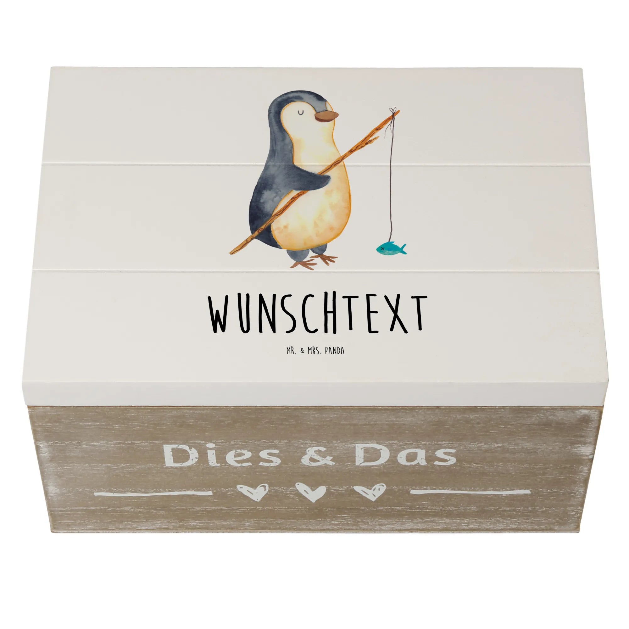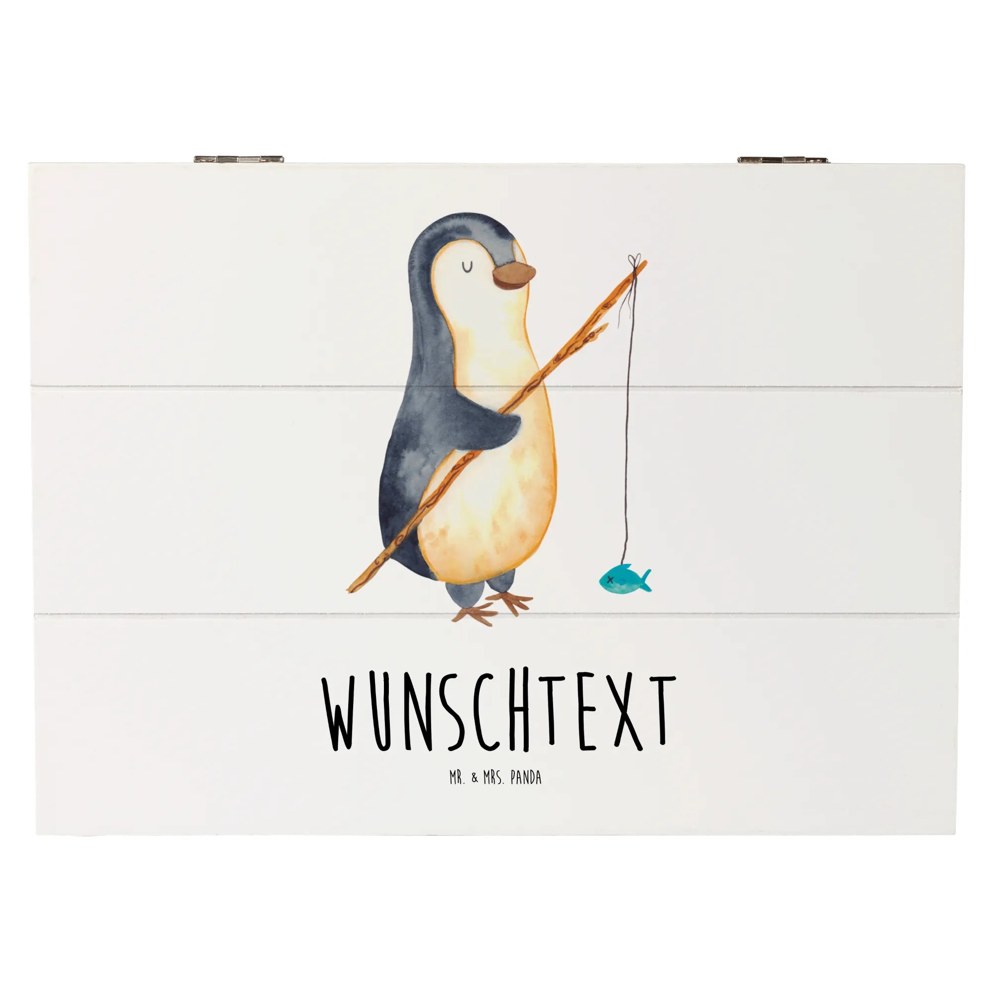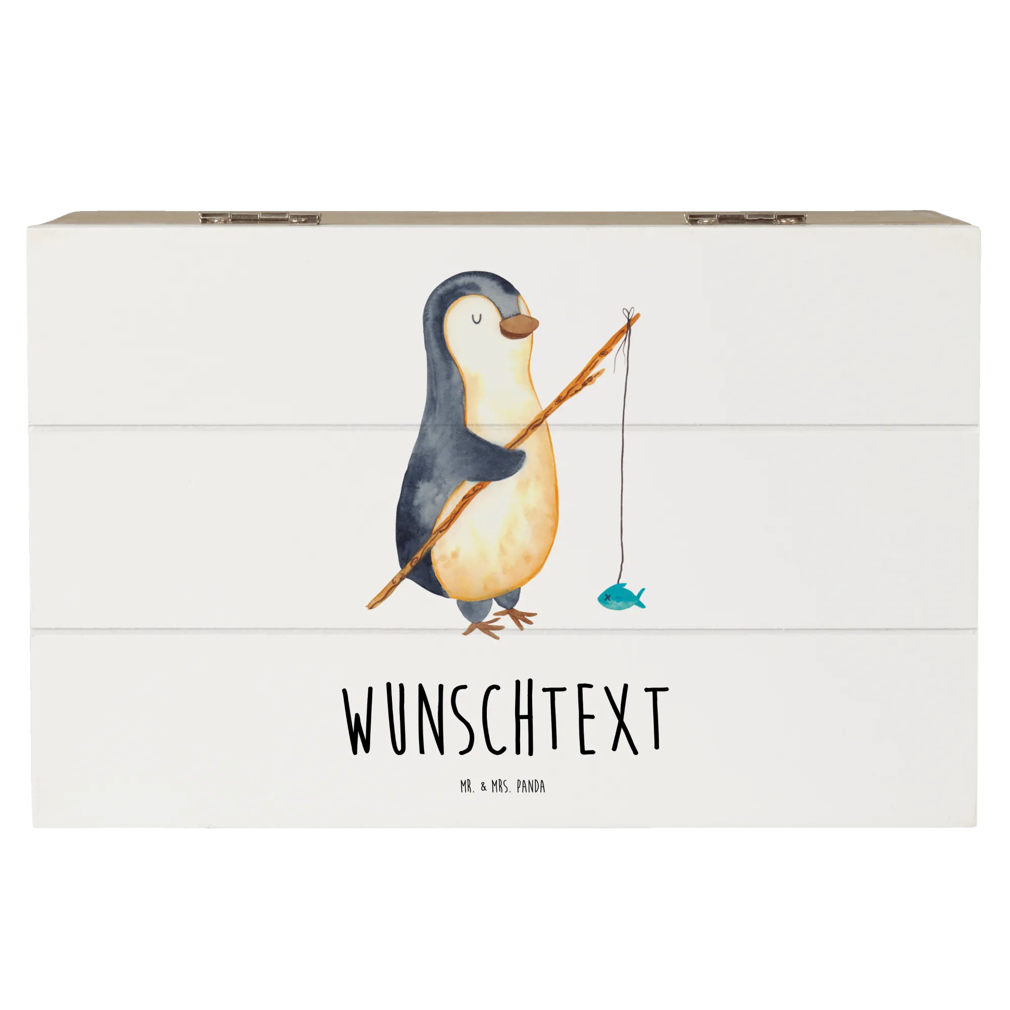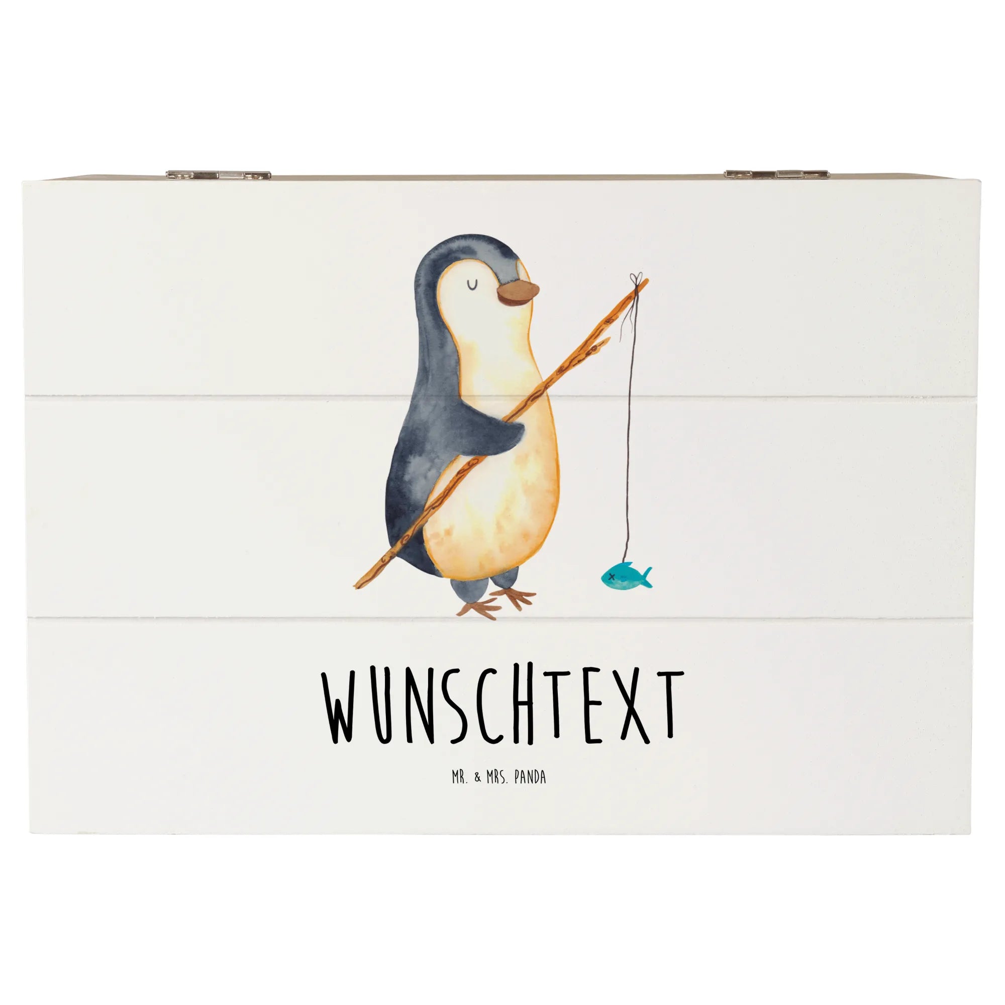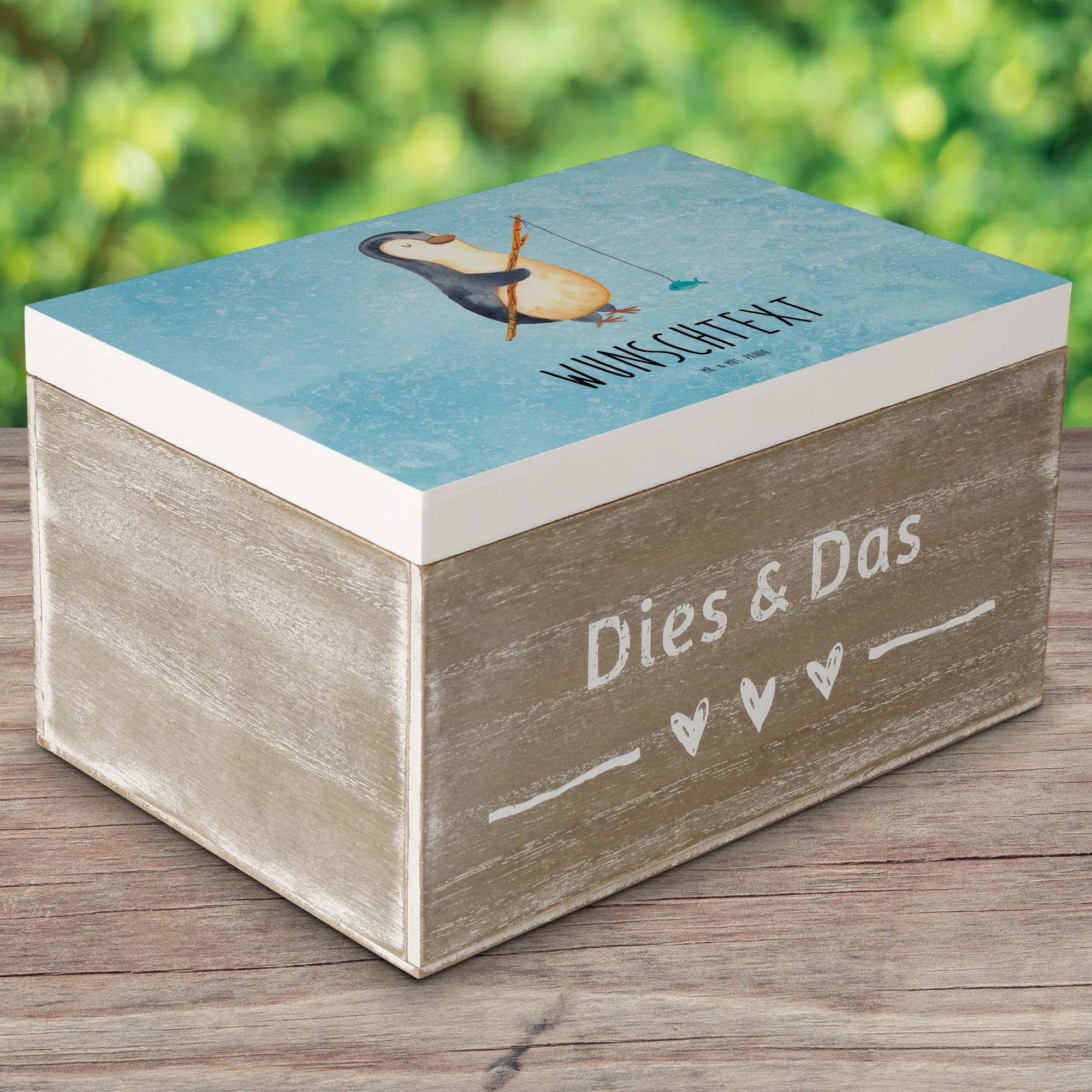 Personalizowane drewniane pudełko Pingwin Wędkarz - 25 x 18 cm - lodowoniebieski