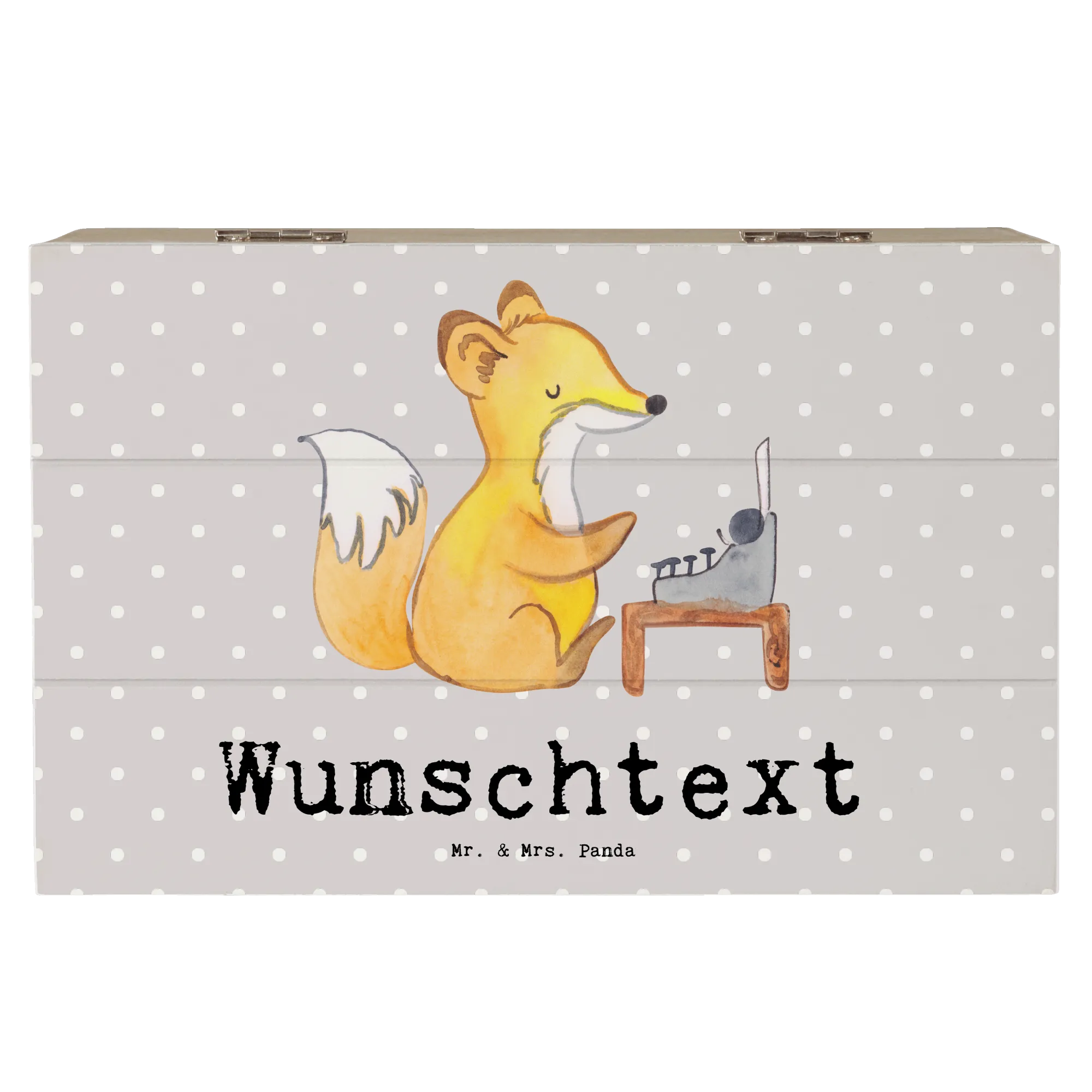 Personalizowane drewniane pudełko pisarz serce - 22 x 15 cm - Pastelowy szary