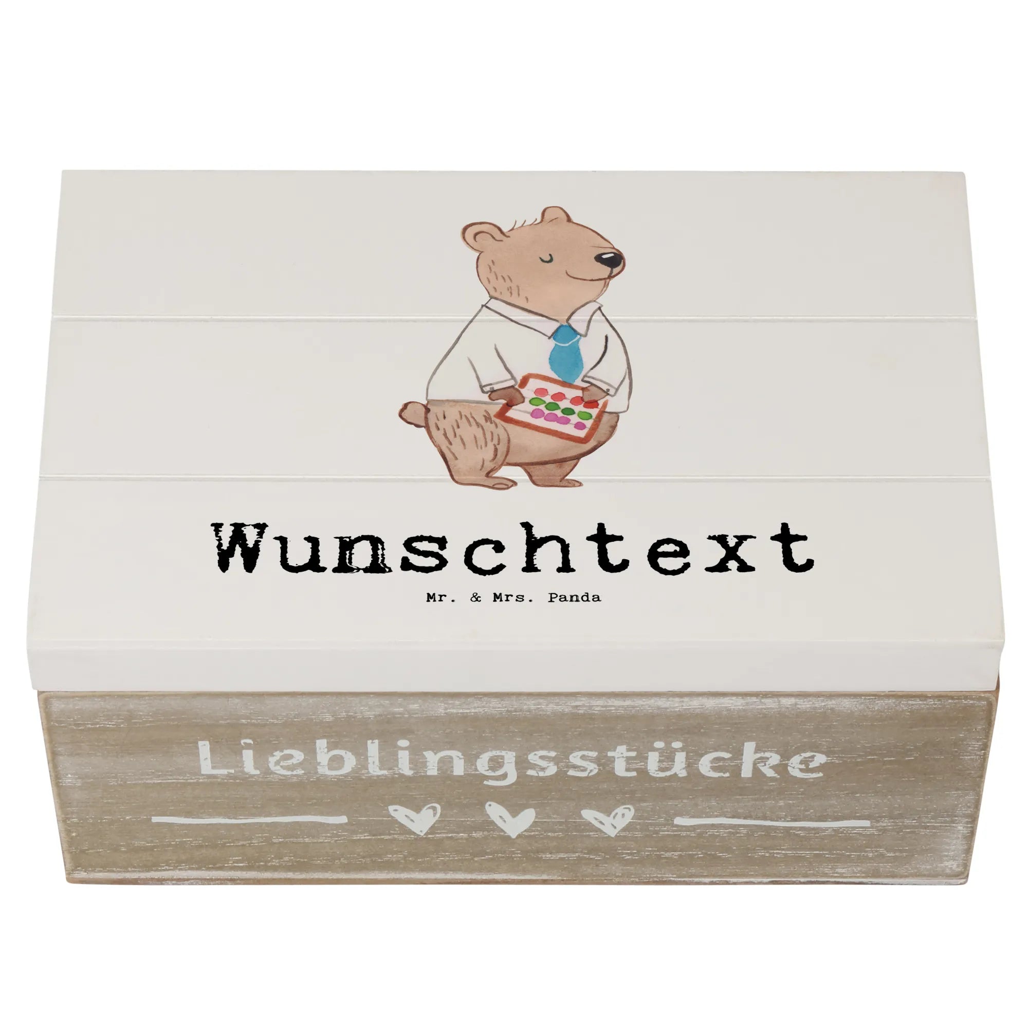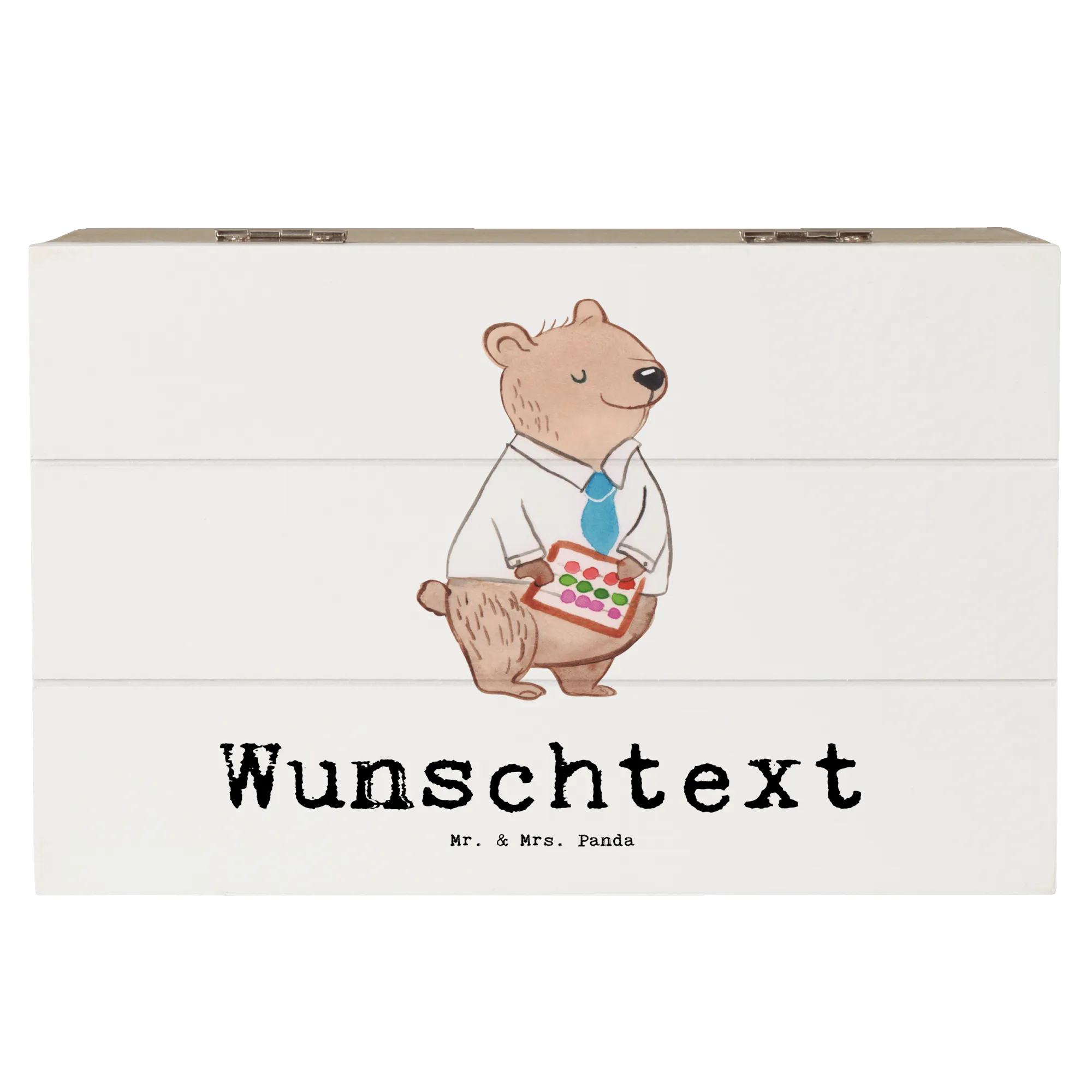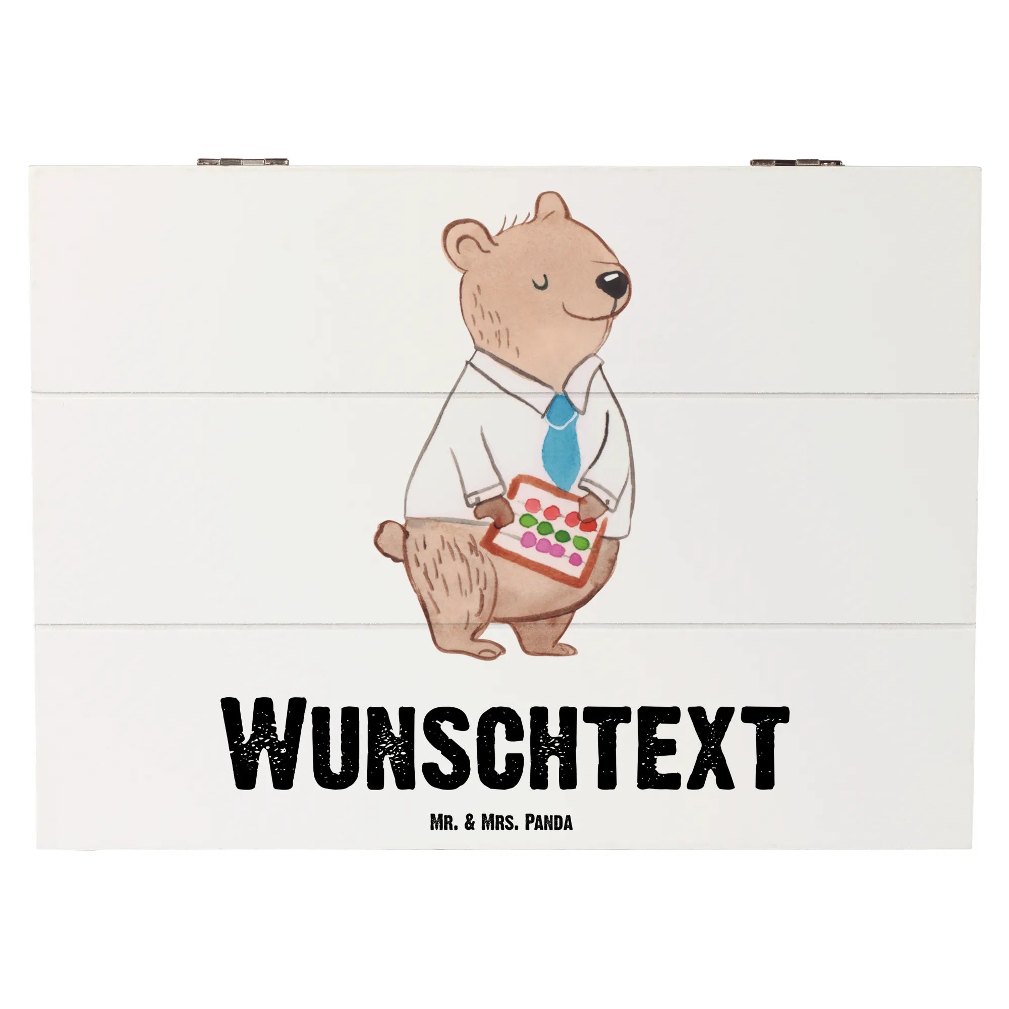 Personalizowane drewniane pudełko Pracownik banku serce - 25 x 18 cm - biały