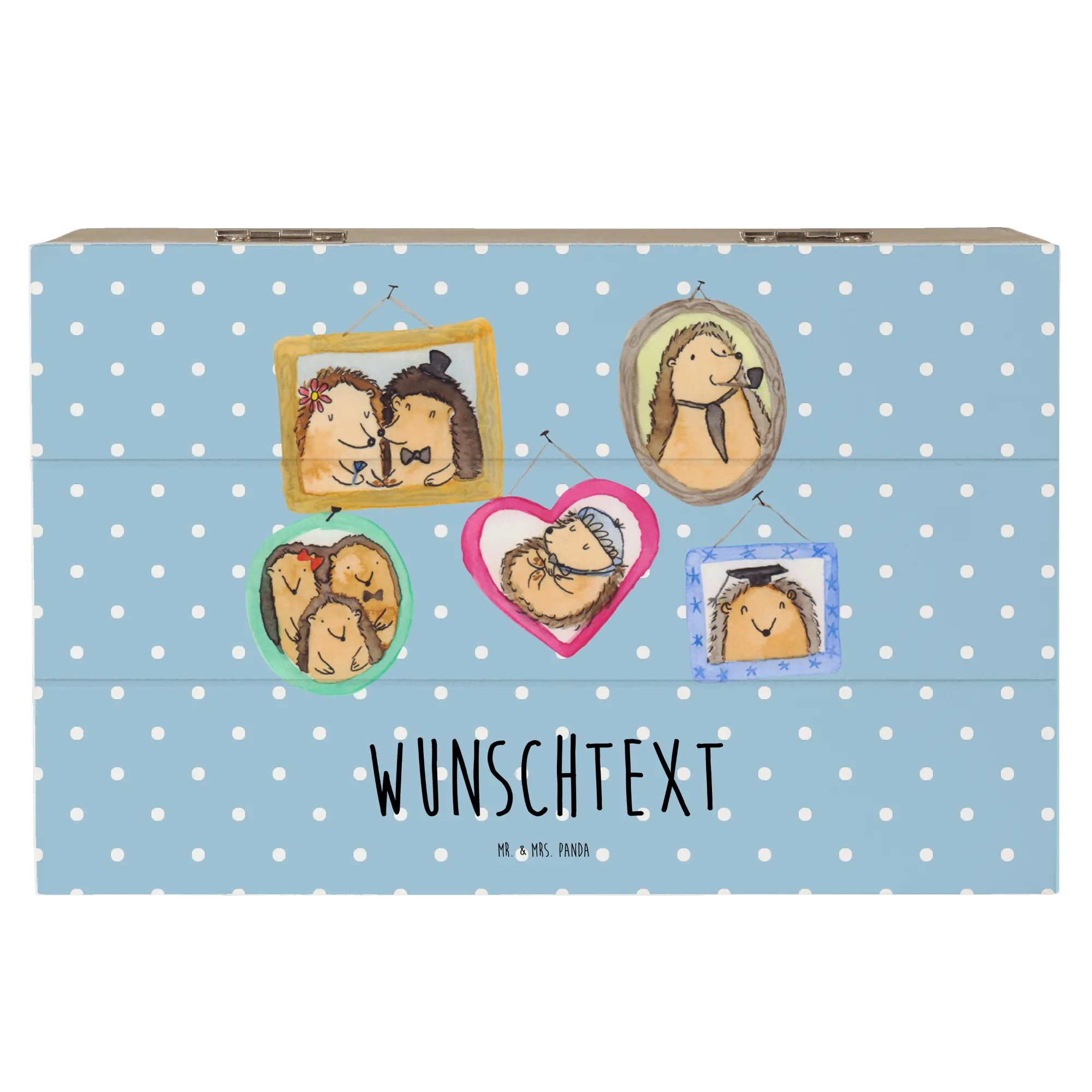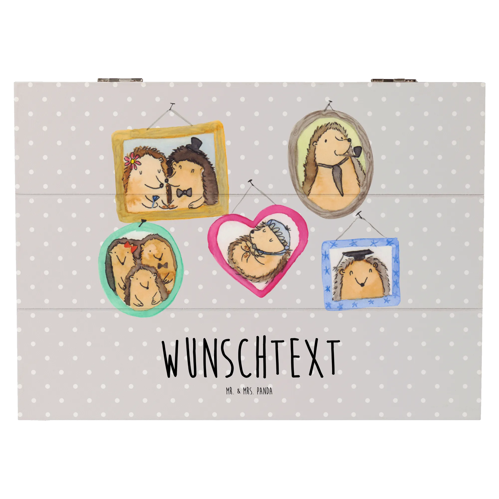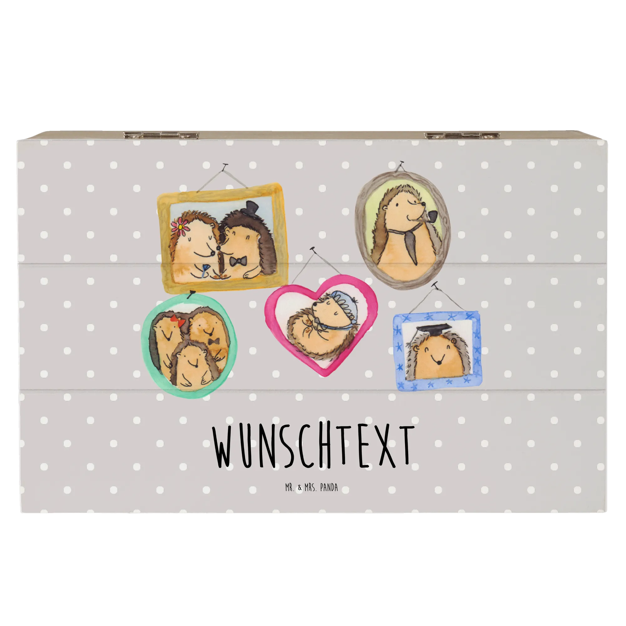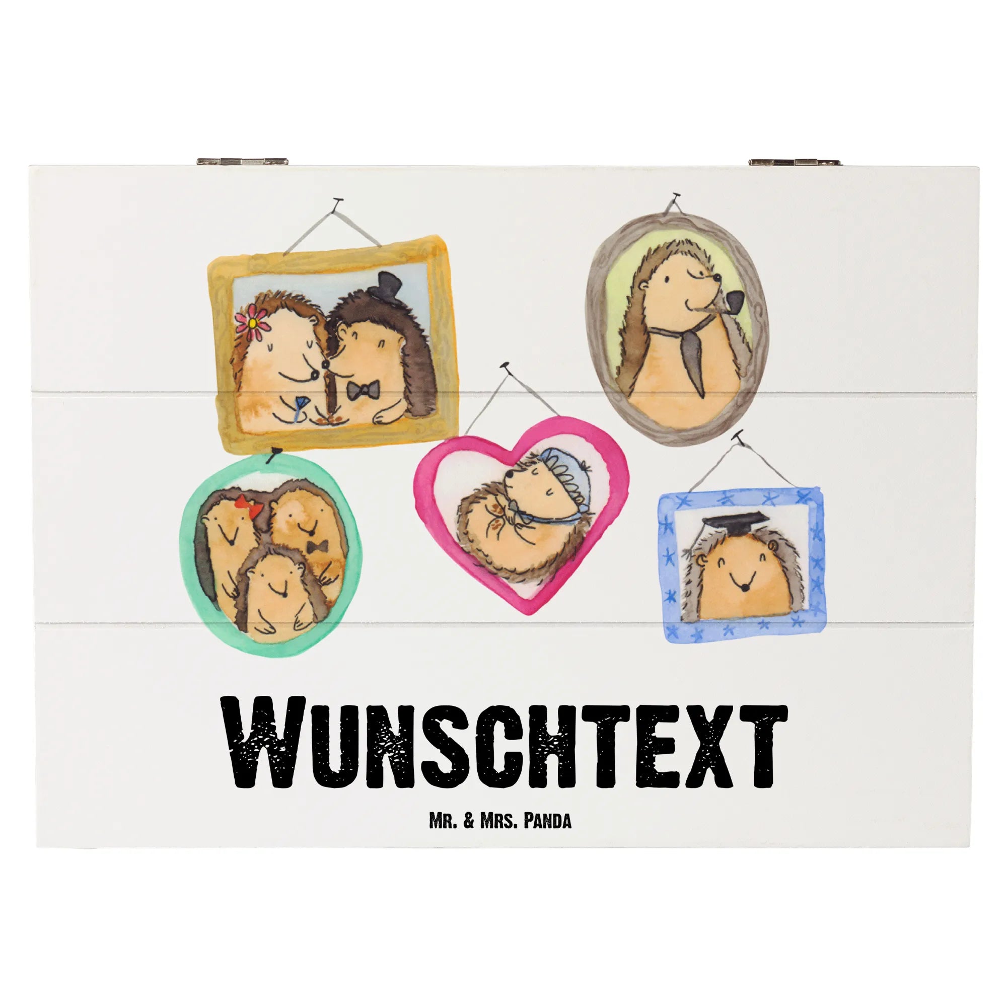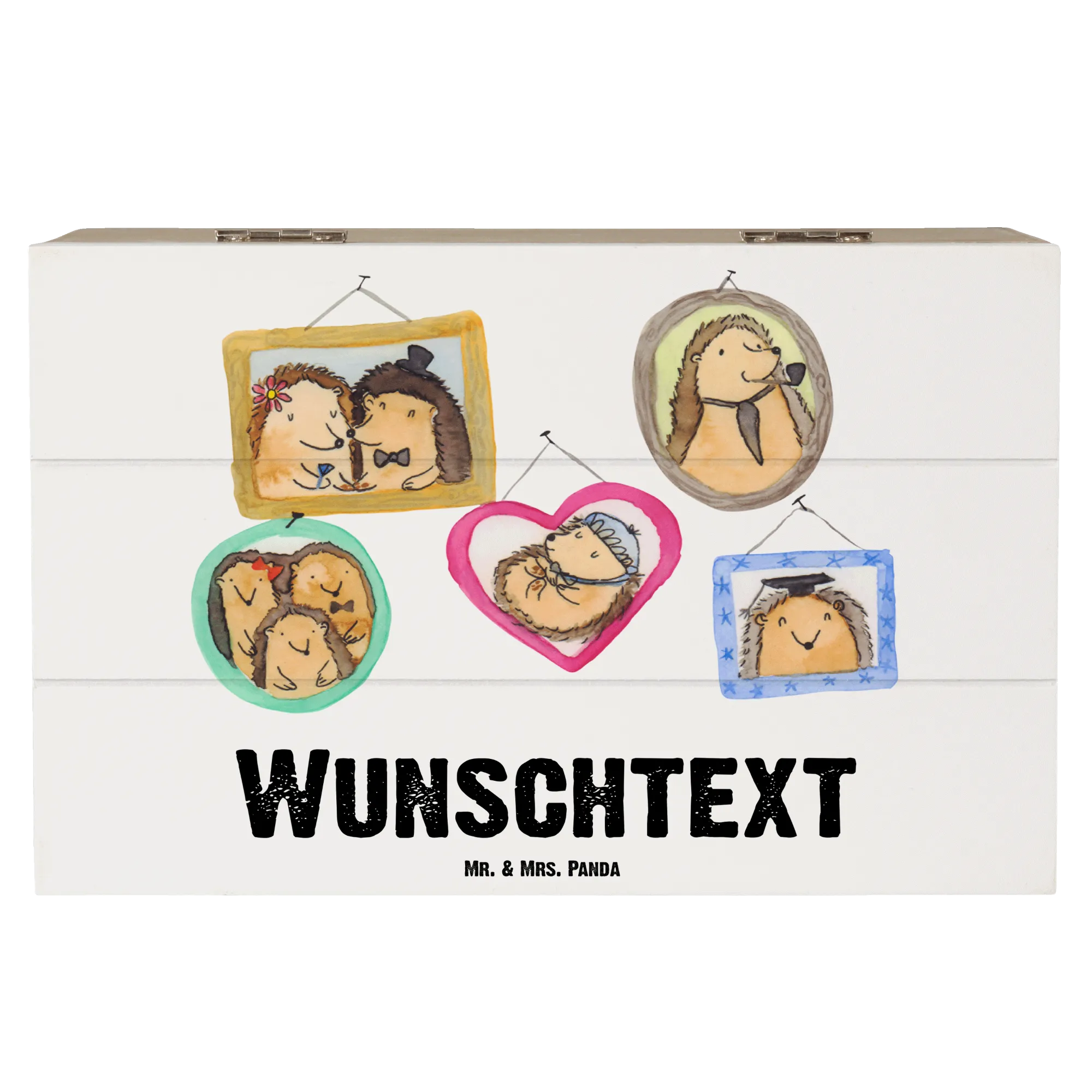 Personalizowane drewniane pudełko Rodzina jeży - 22 x 15 cm - Biały