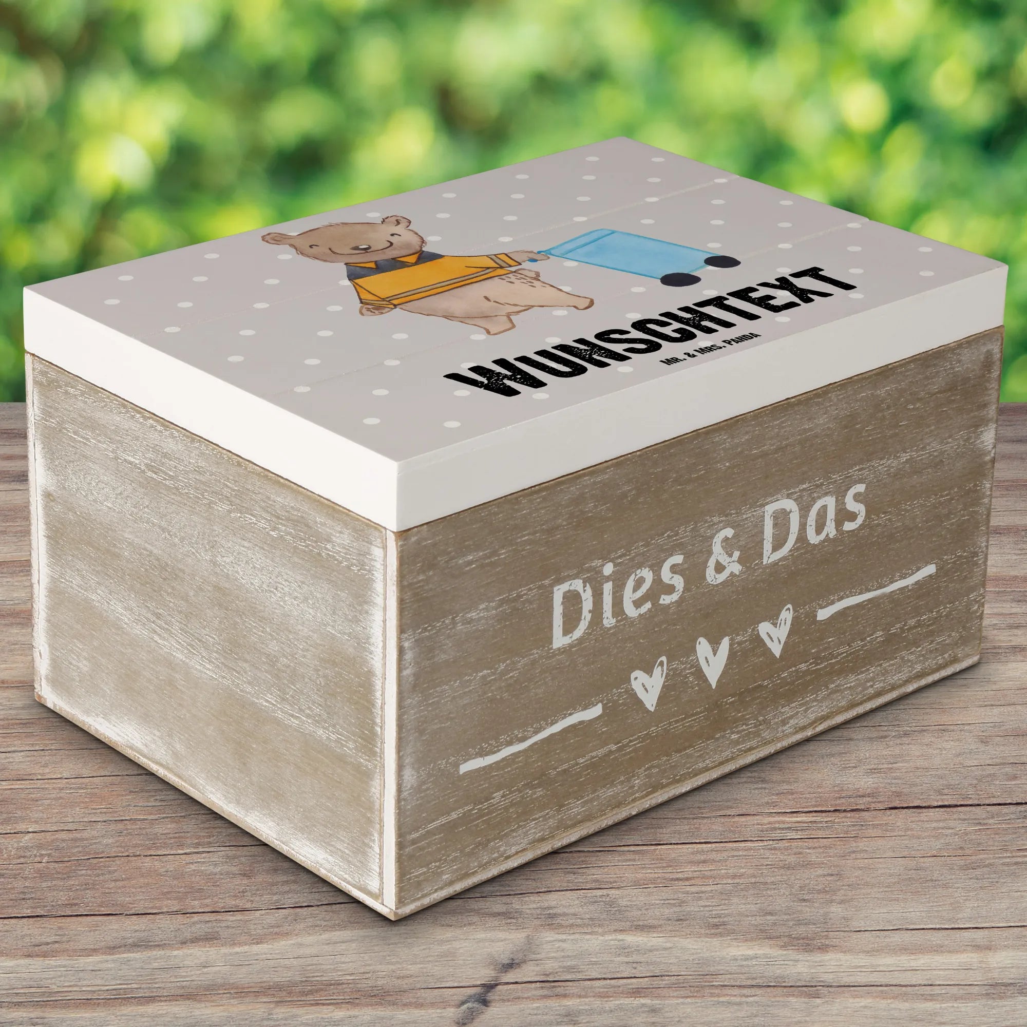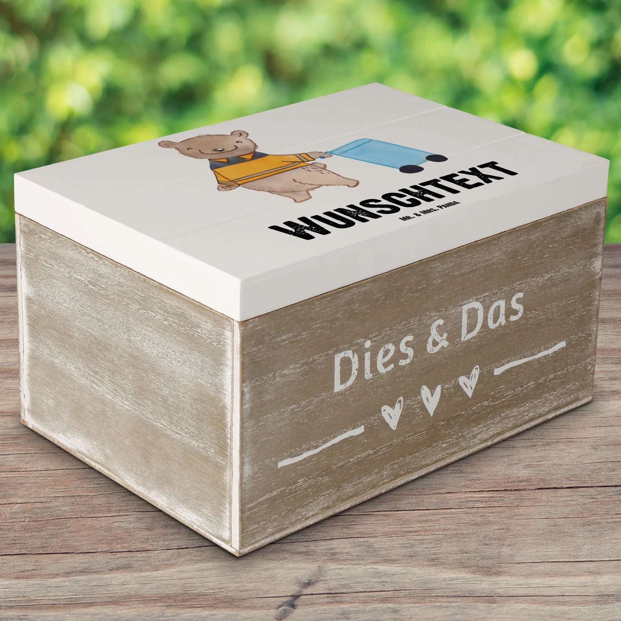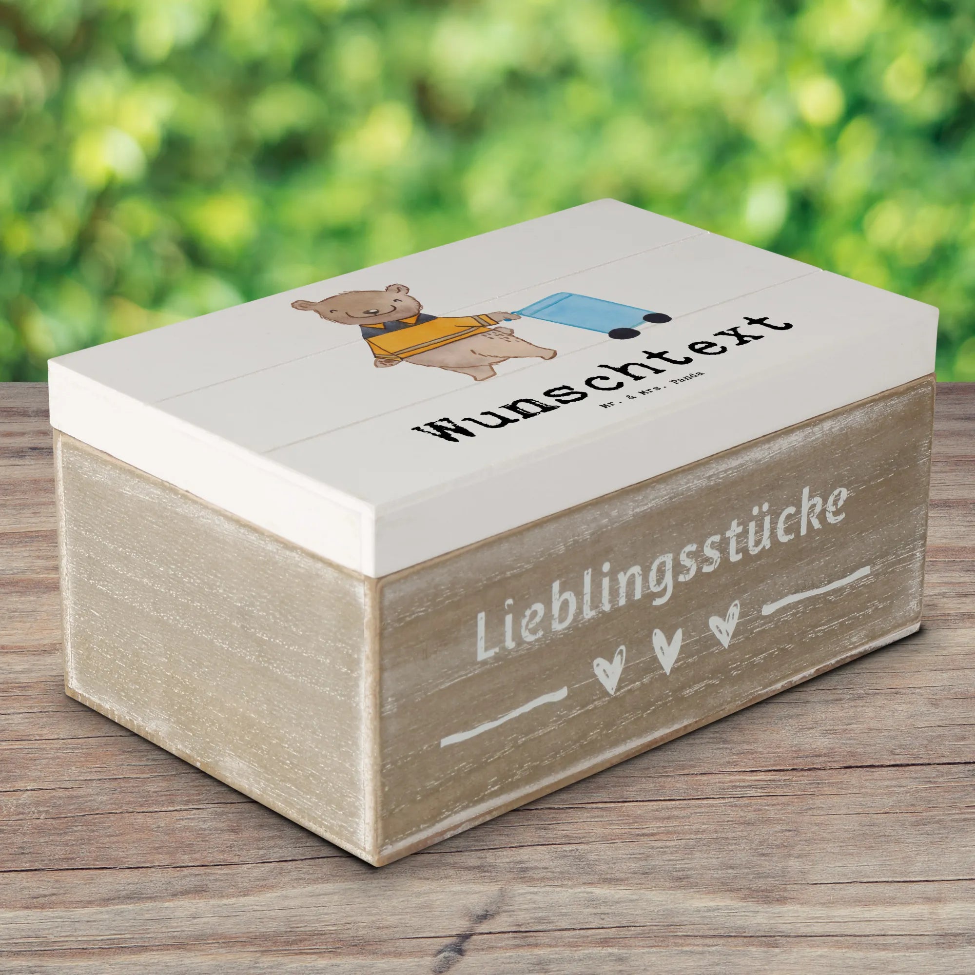 Personalizowane drewniane pudełko Śmieciarz Serce - 22 x 15 cm - biały