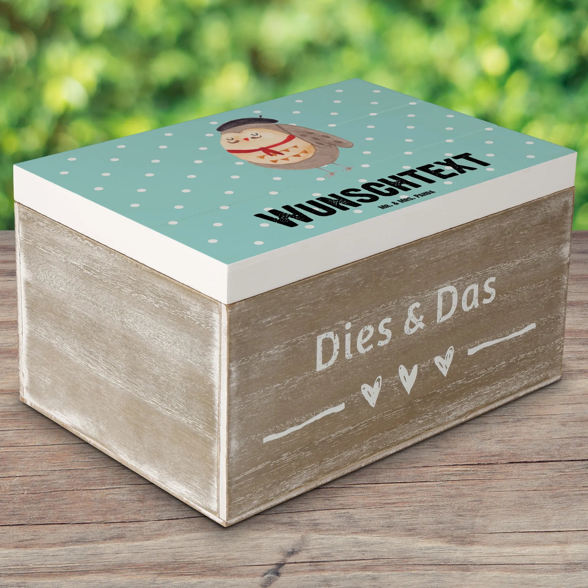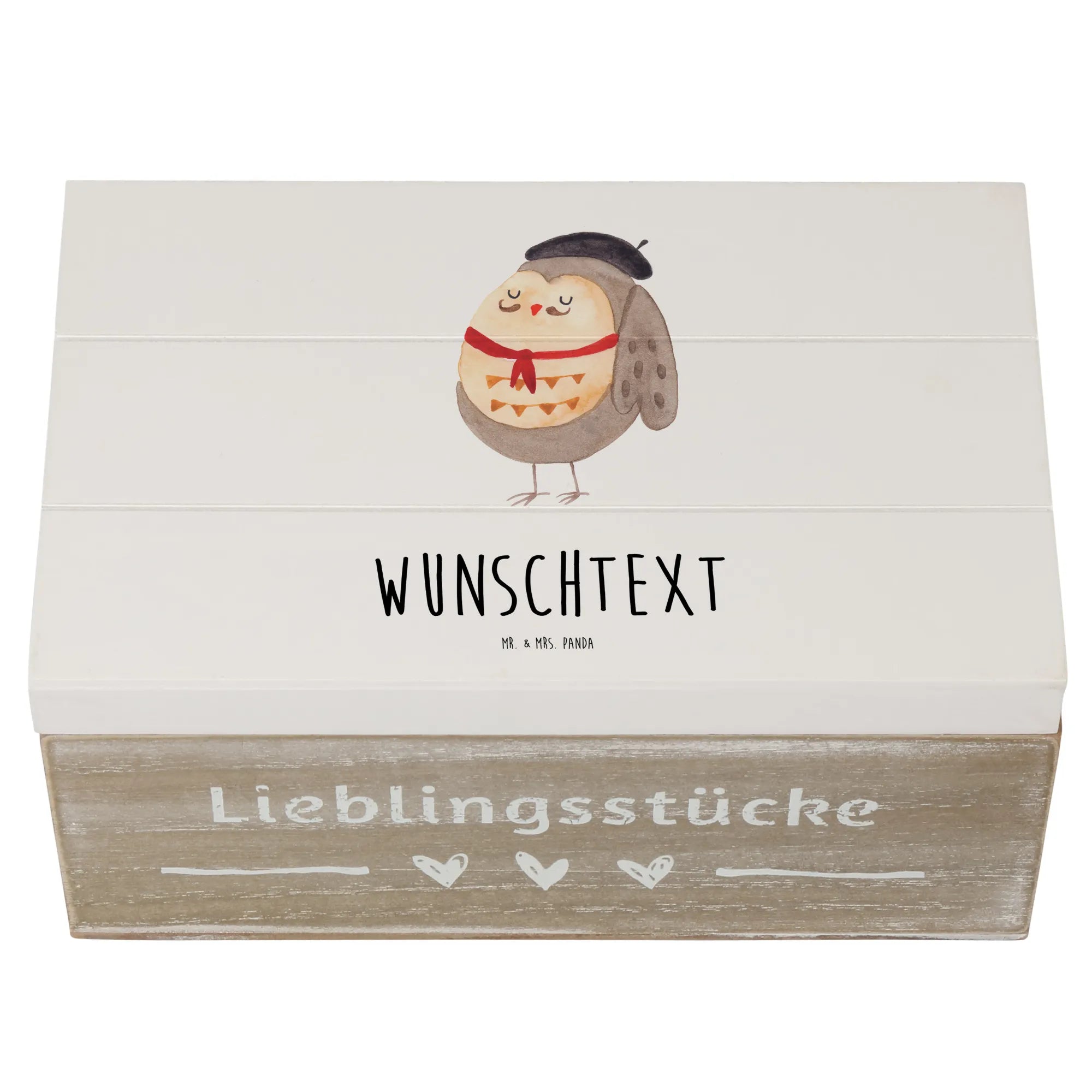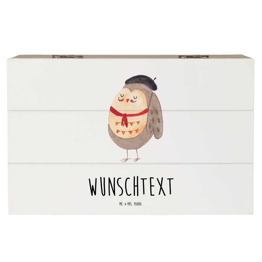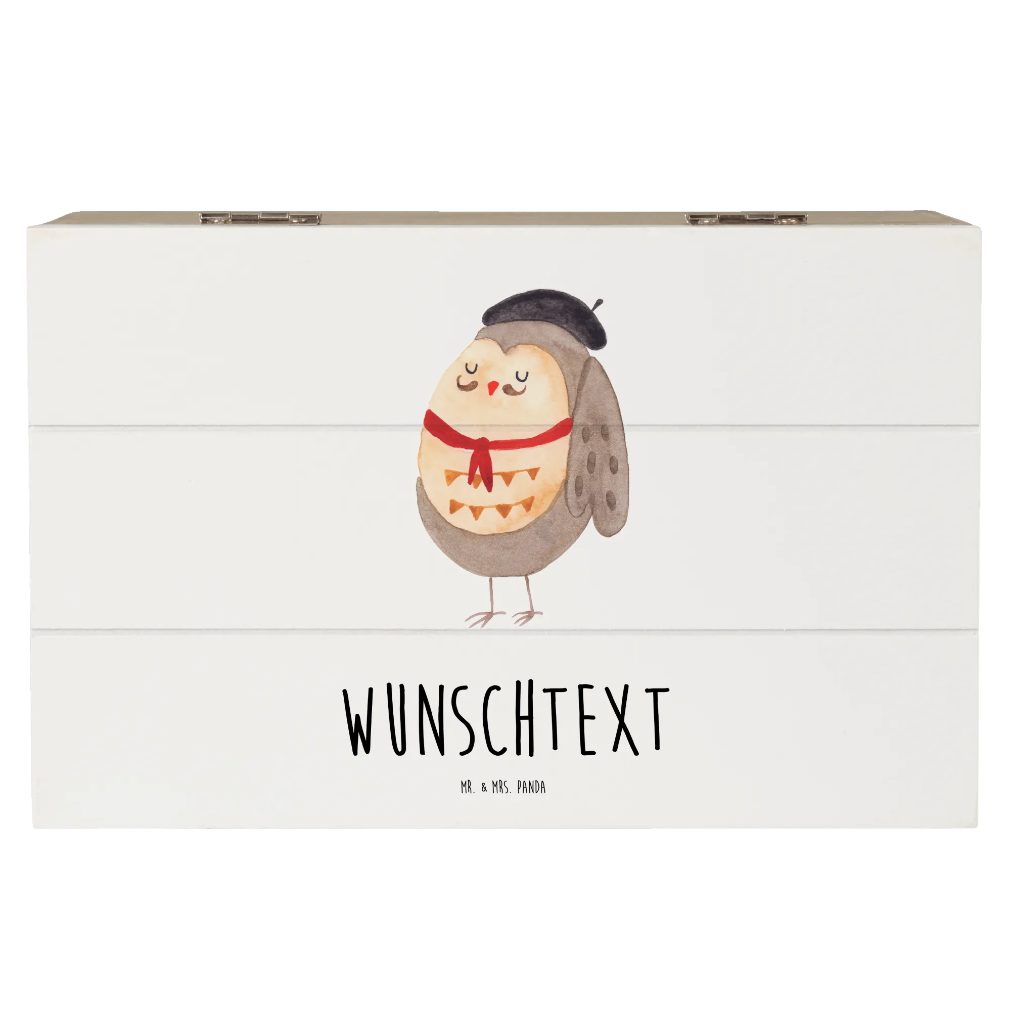 Personalizowane drewniane pudełko sowa Francja - 19 x 12 cm - biały