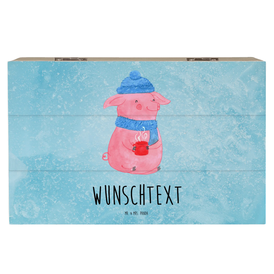 Personalizowane drewniane pudełko świnia grzane wino - 19 x 12 cm - lodowoniebieski