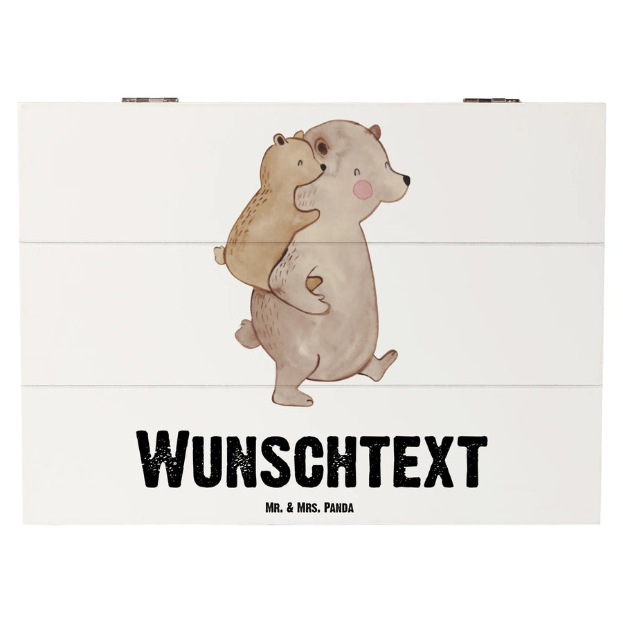 Personalizowane drewniane pudełko Tata Niedźwiedź - 25 x 18 cm - biały