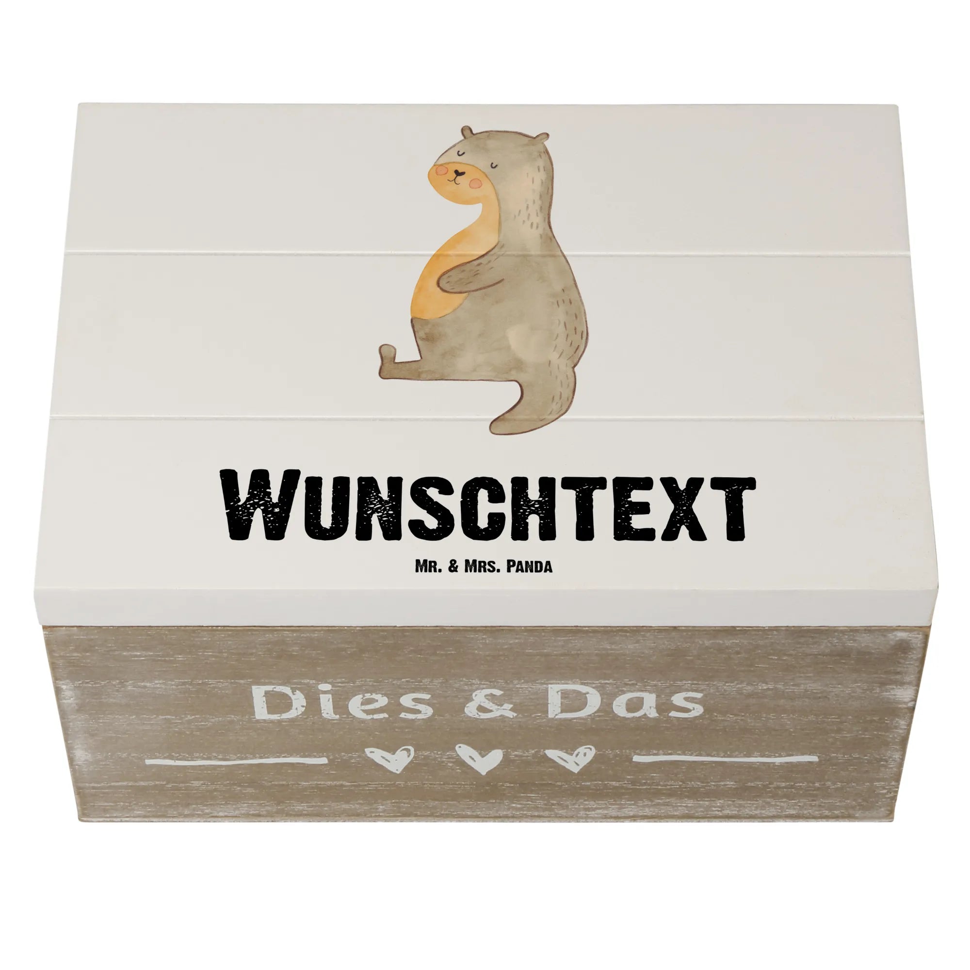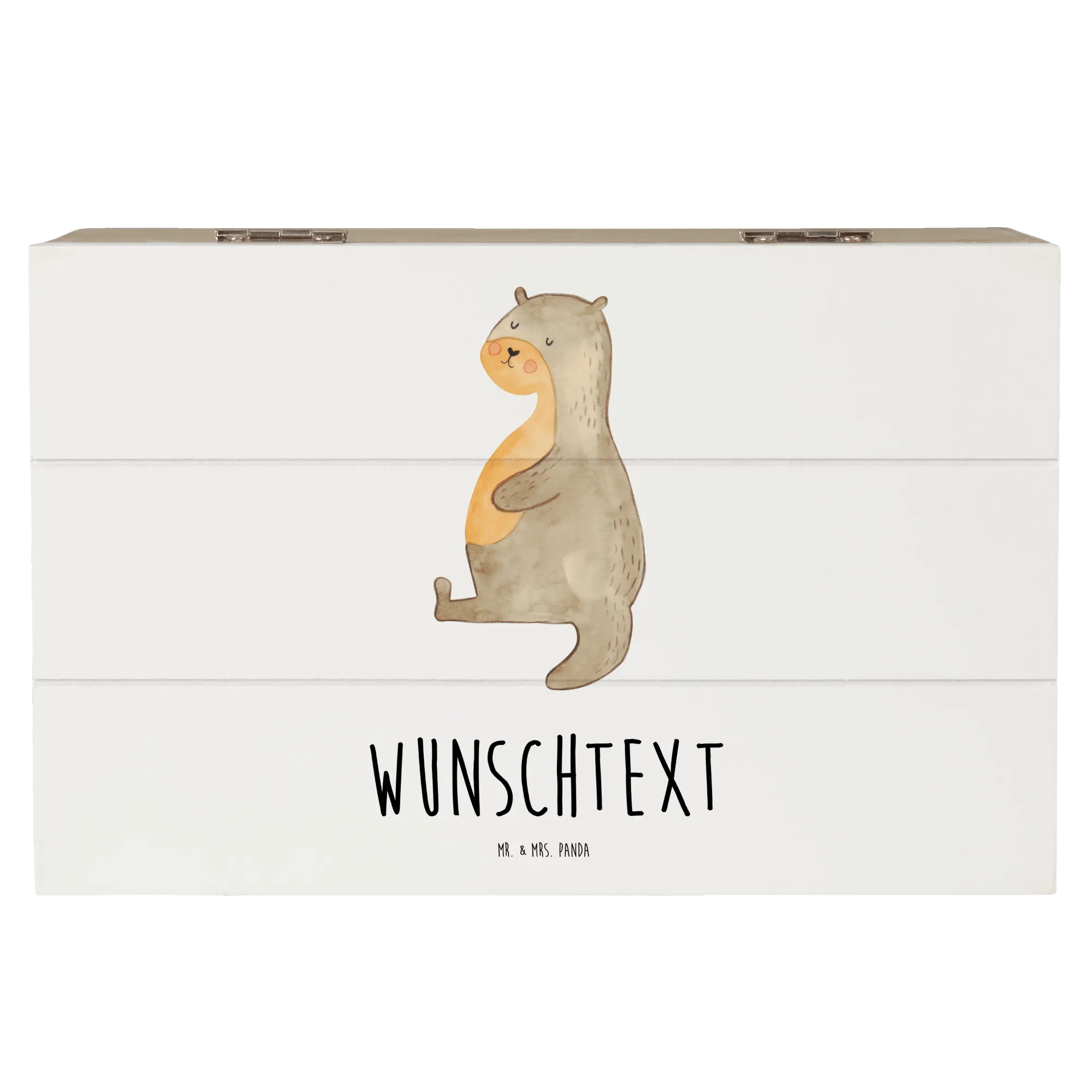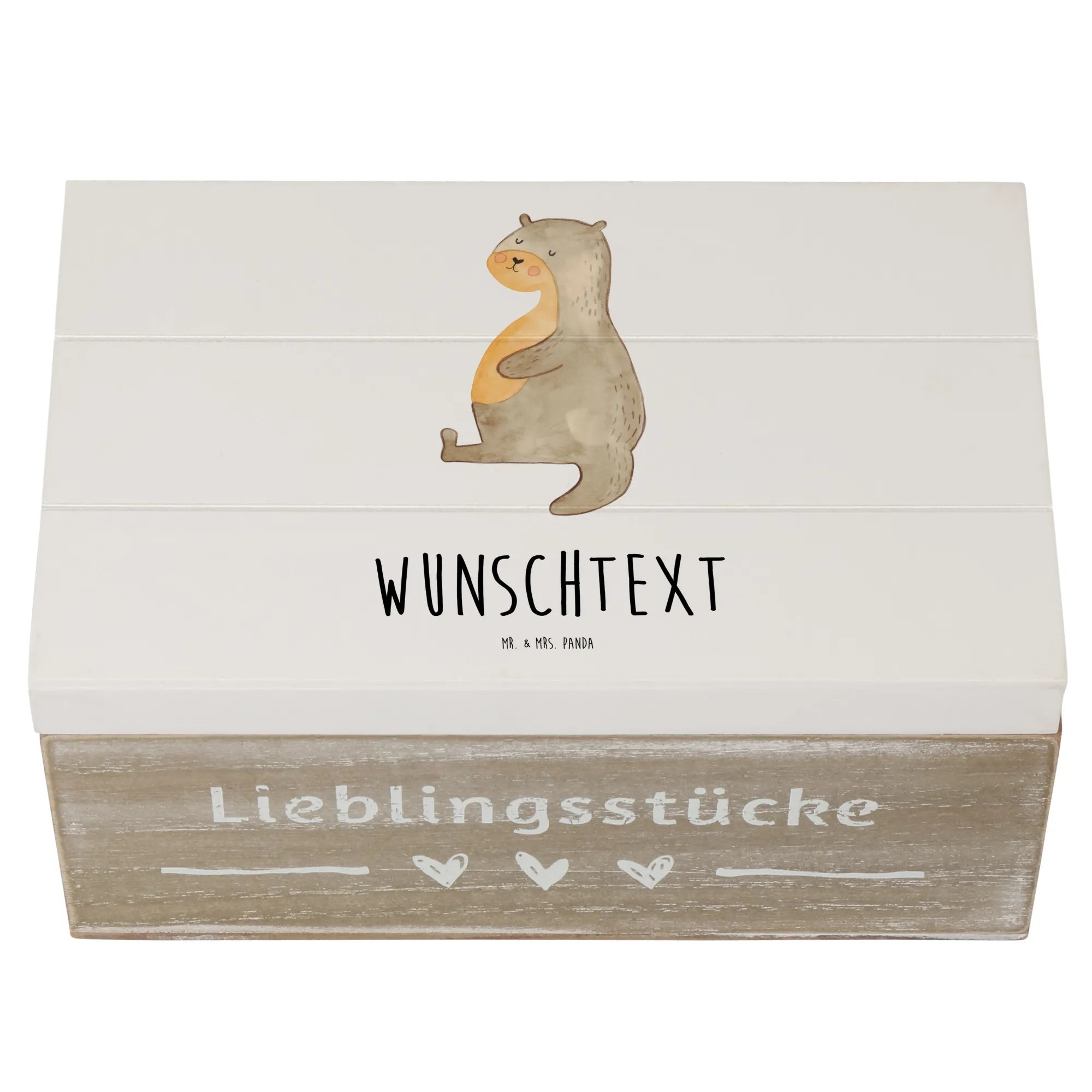 Personalizowane drewniane pudełko wydra brzuch - 22 x 15 cm - Biały