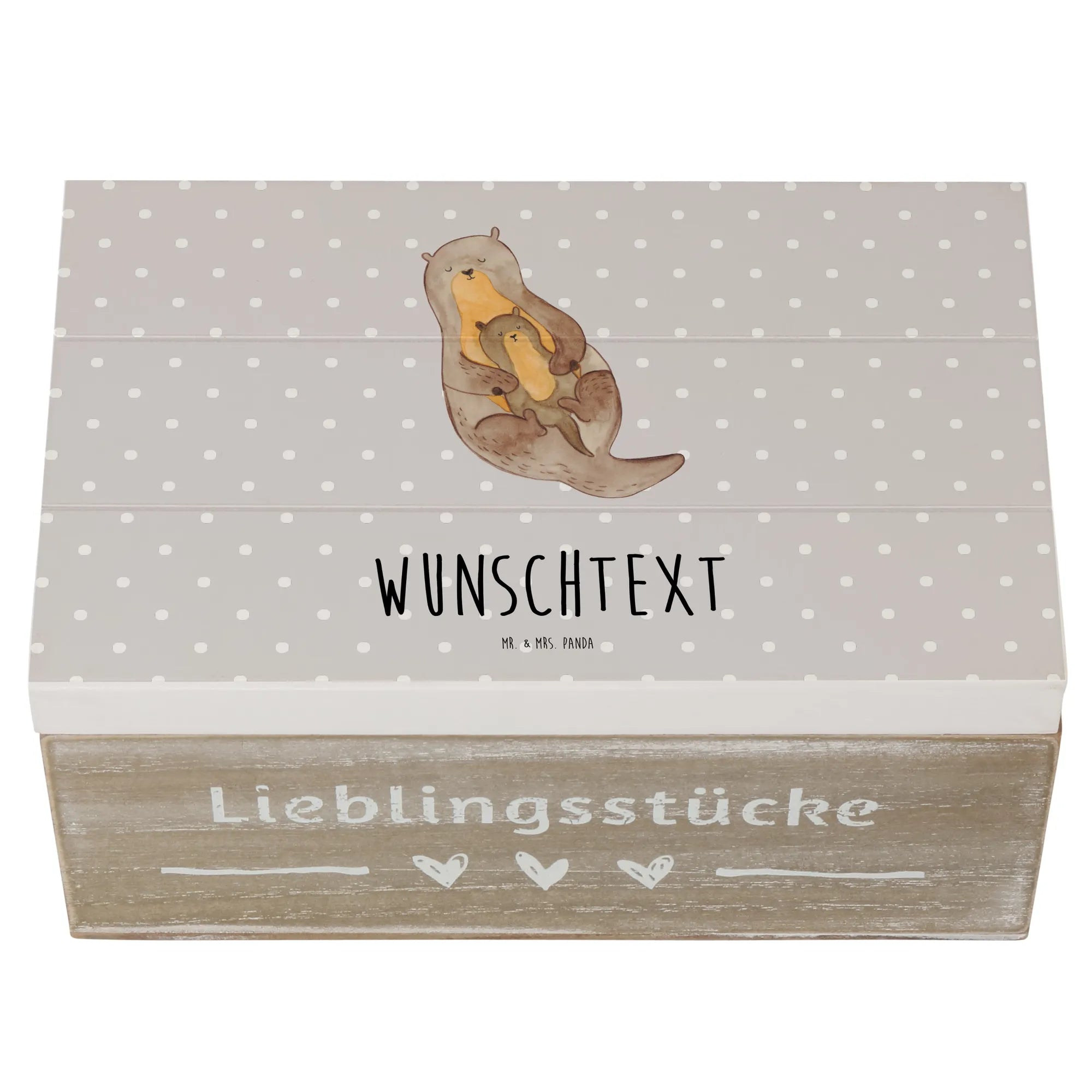Personalizowane drewniane pudełko wydra dziecko - 22 x 15 cm - Szary Pastel