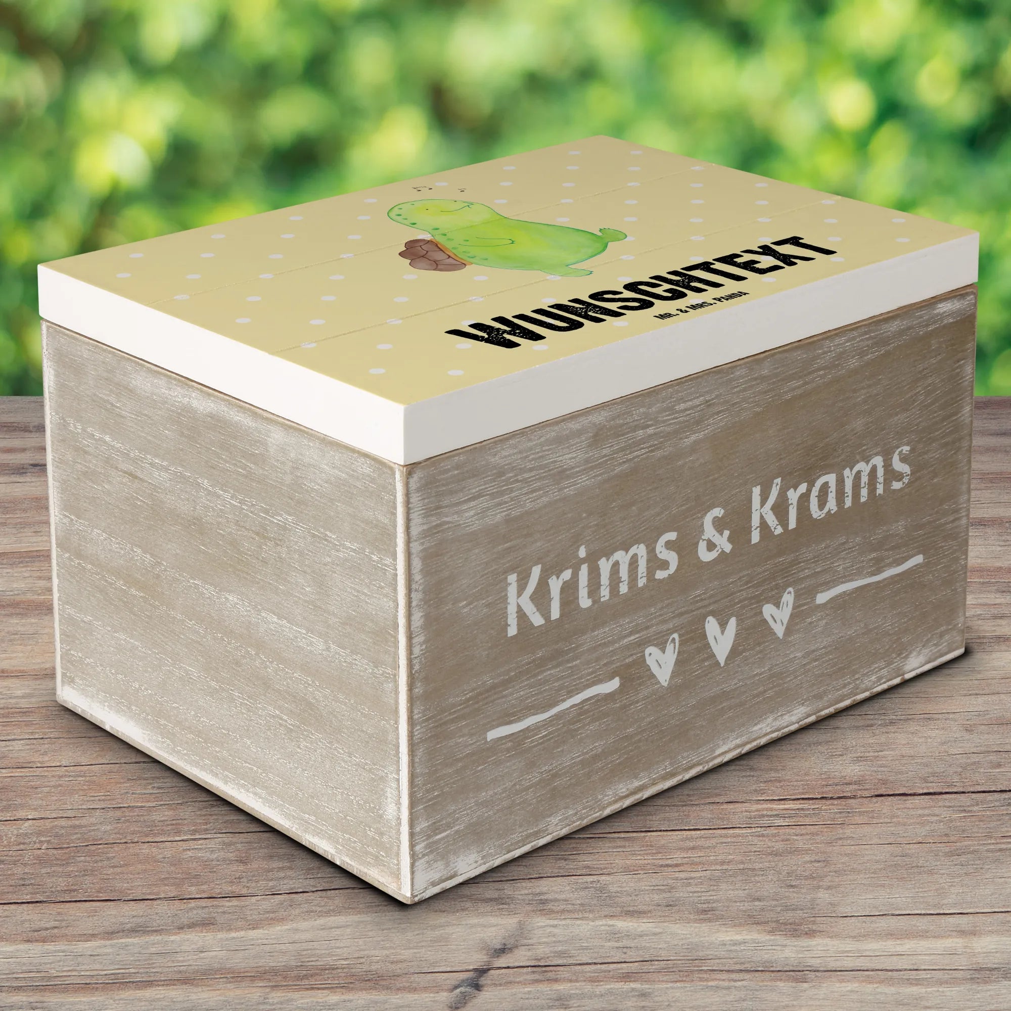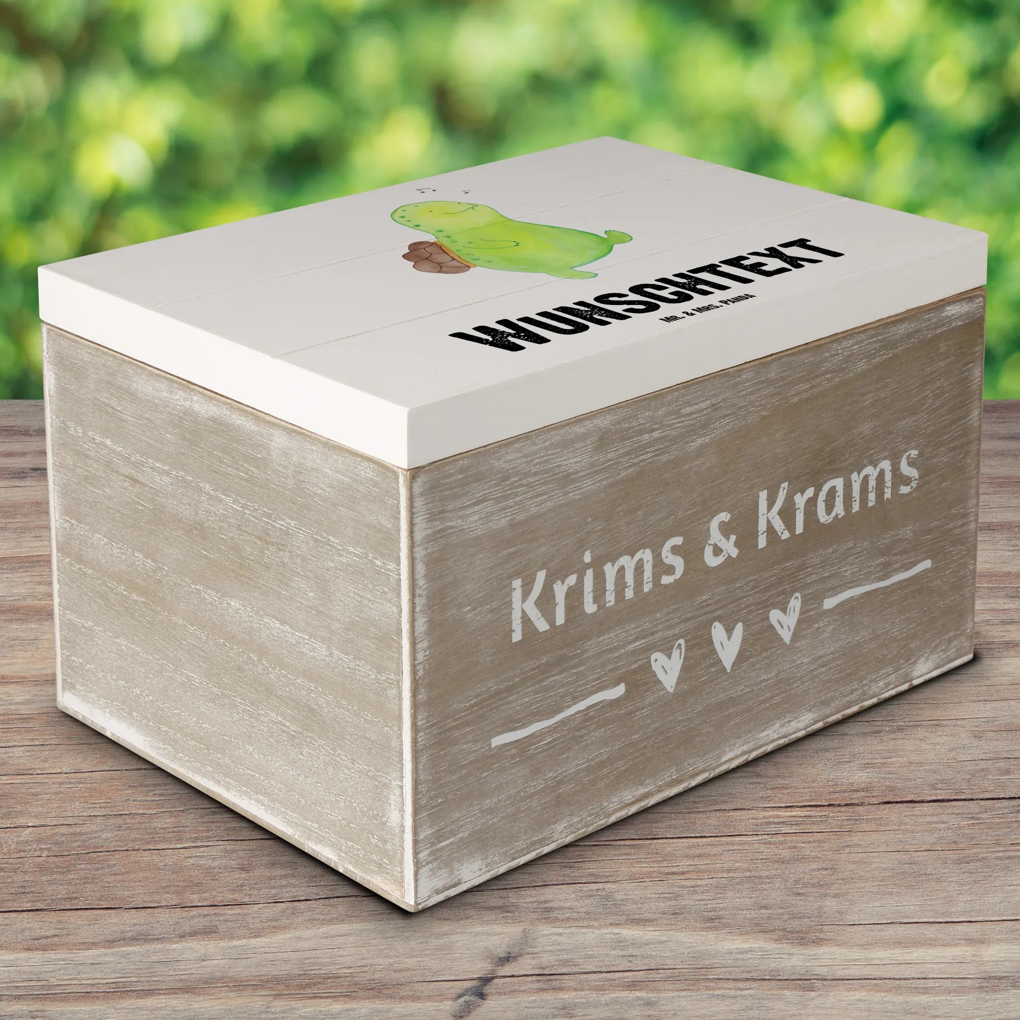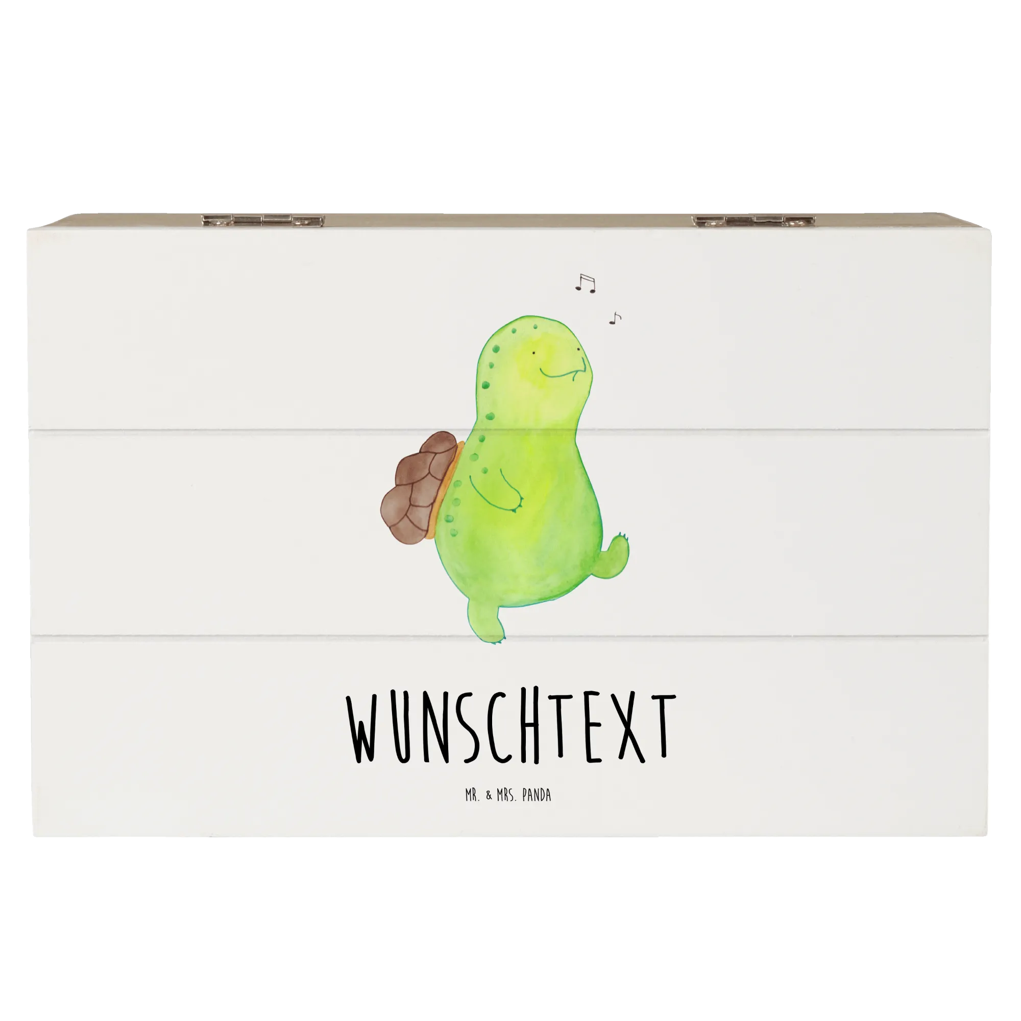 Personalizowane drewniane pudełko żółw gwizdać - 22 x 15 cm - biały