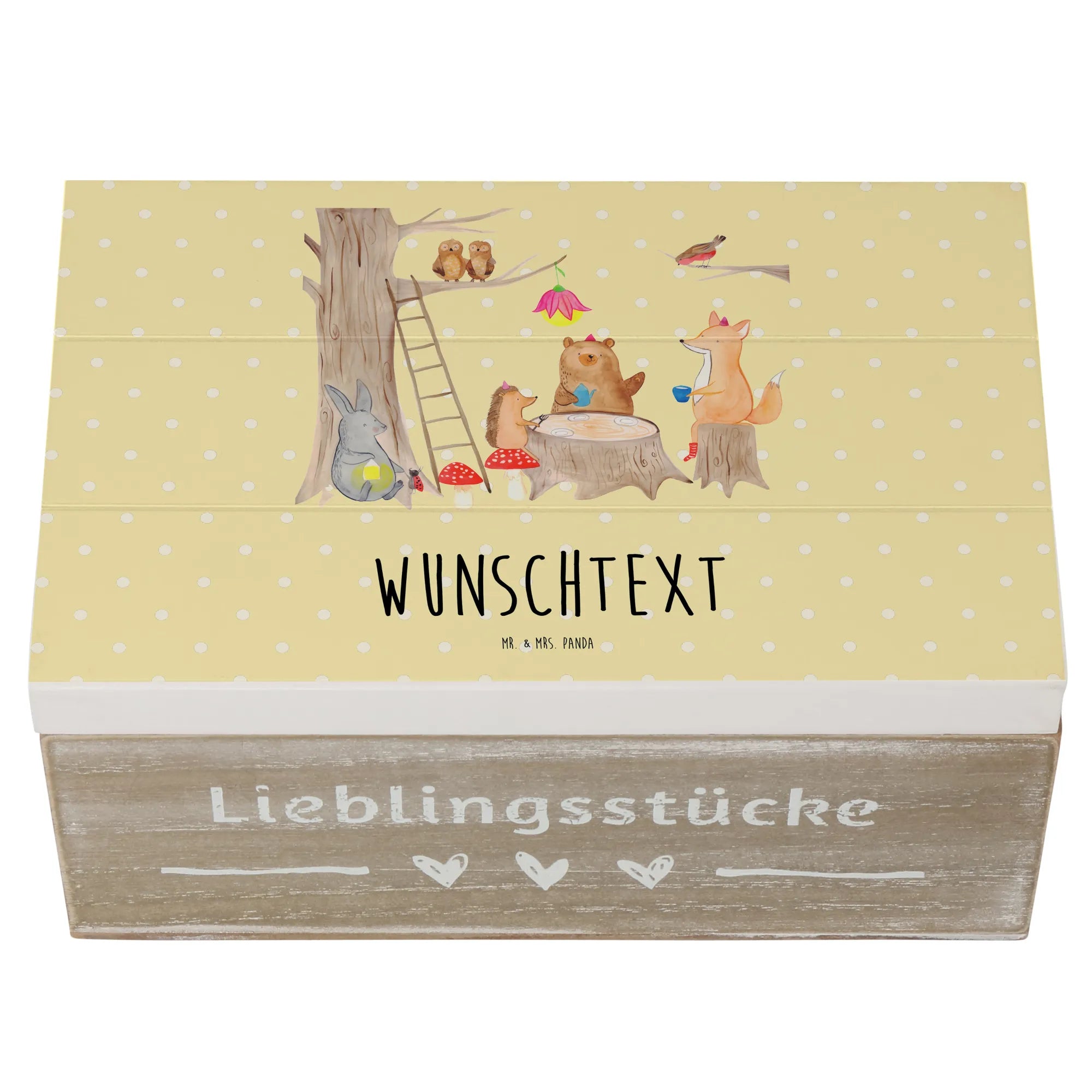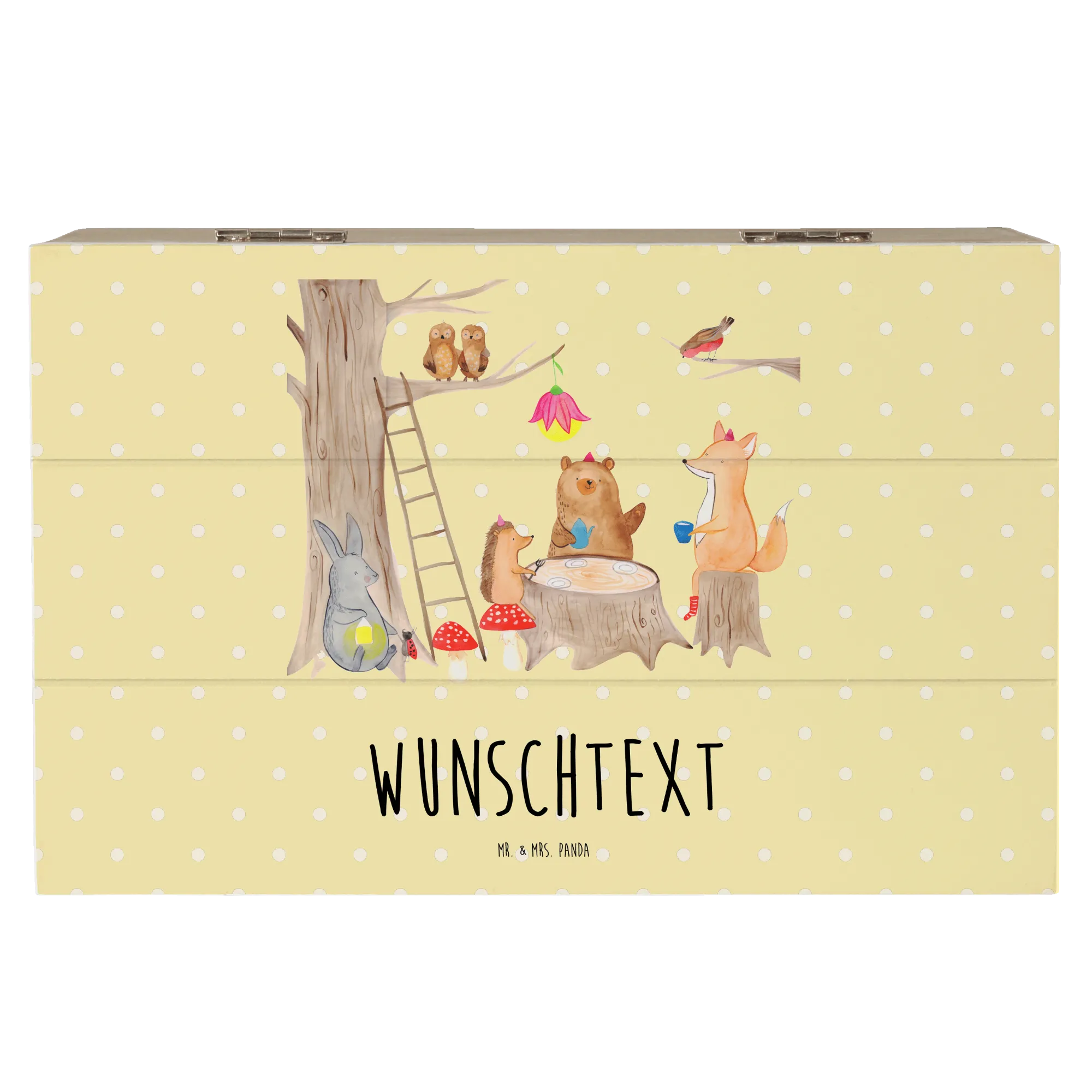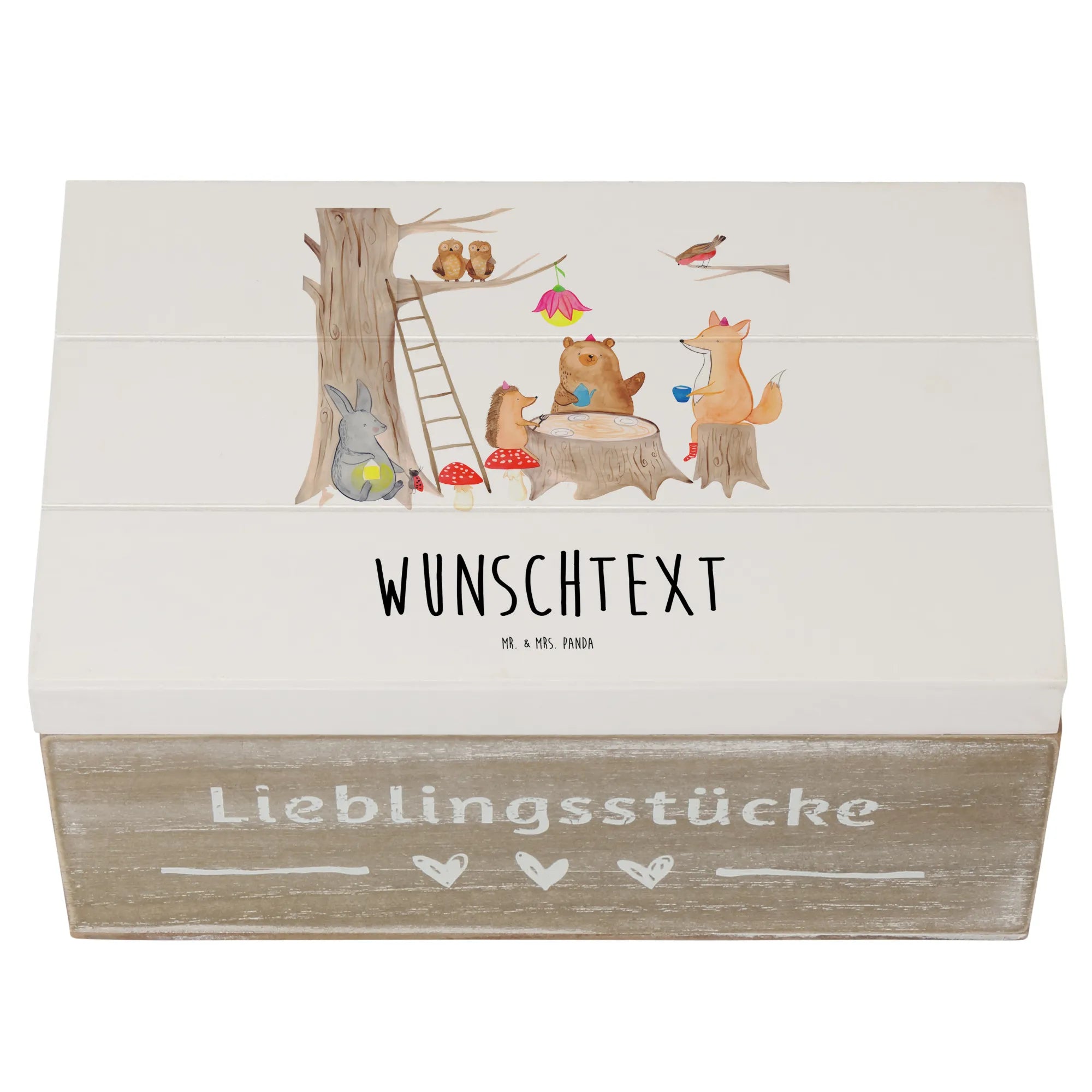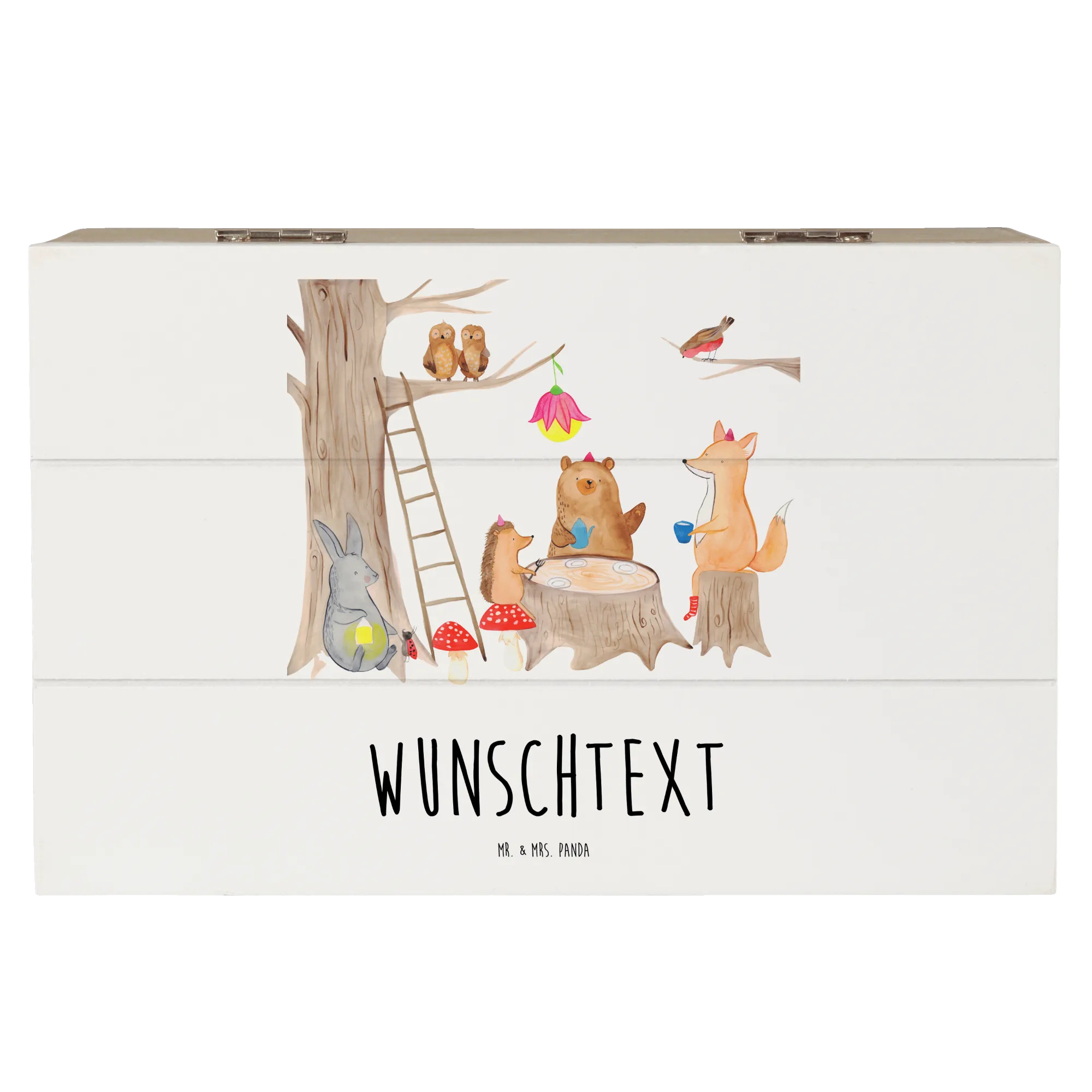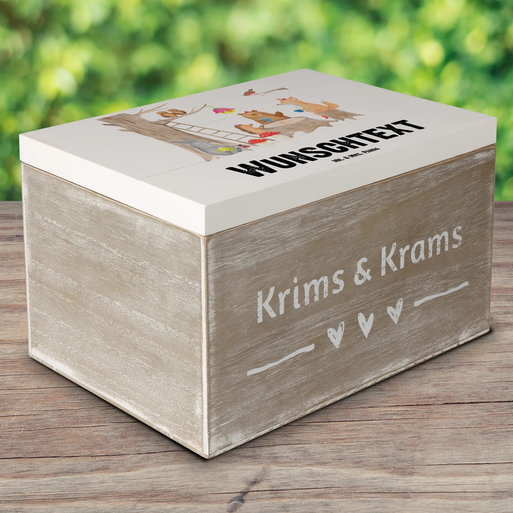 Personalizowane drewniane pudełko zwierzęta leśne piknik - 22 x 15 cm - Biały