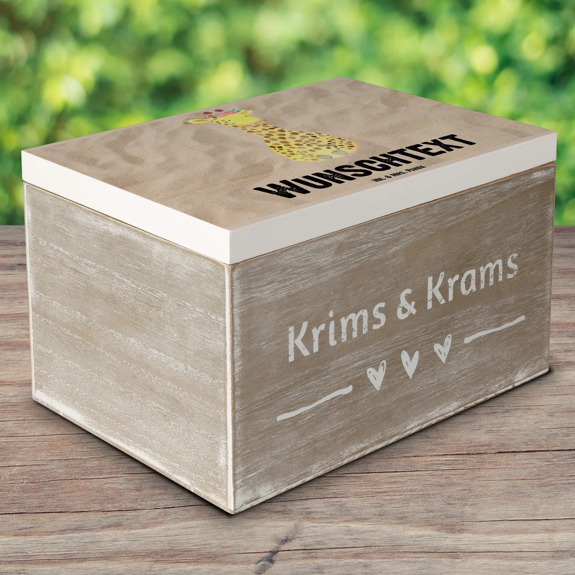 Personalizowane drewniane pudełko żyrafa Wieniec kwiatów - 25 x 18 cm - Sandy