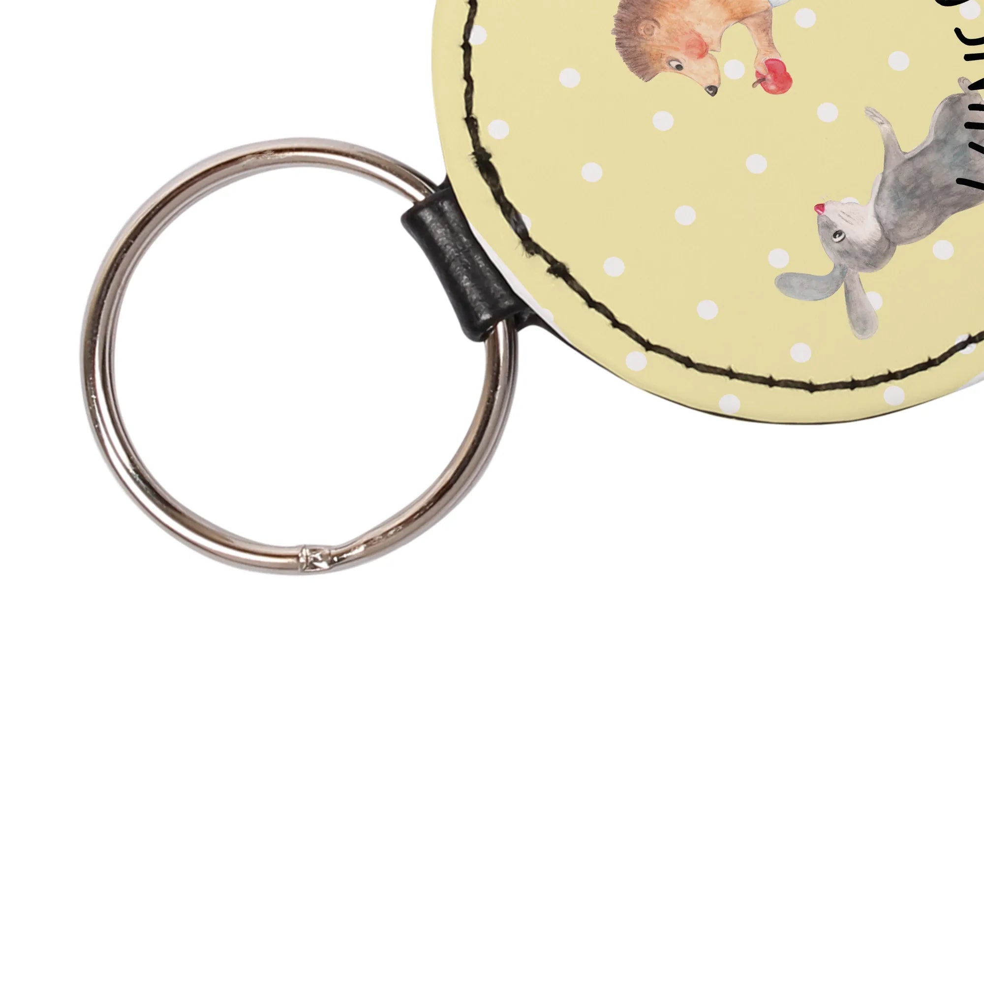 Der personalisierte Schlüsselanhänger "Liebe ist nie ohne Schmerz" von Mr. & Mrs. Panda ist mehr als nur ein praktisches Accessoire. Mit seinem charmanten Motiv eines verliebten Hasen und Igel verkörpert er die zarte Botschaft, dass die Liebe nicht immer einfach ist, aber dennoch wunderschön.