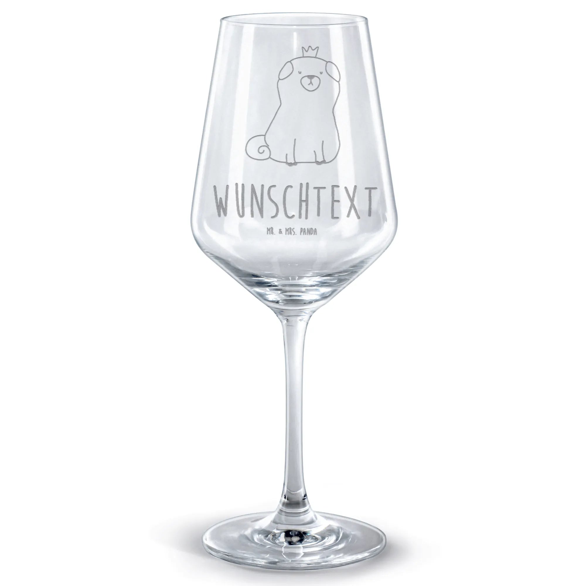 Personalizowany kieliszek do czerwonego wina mops korona