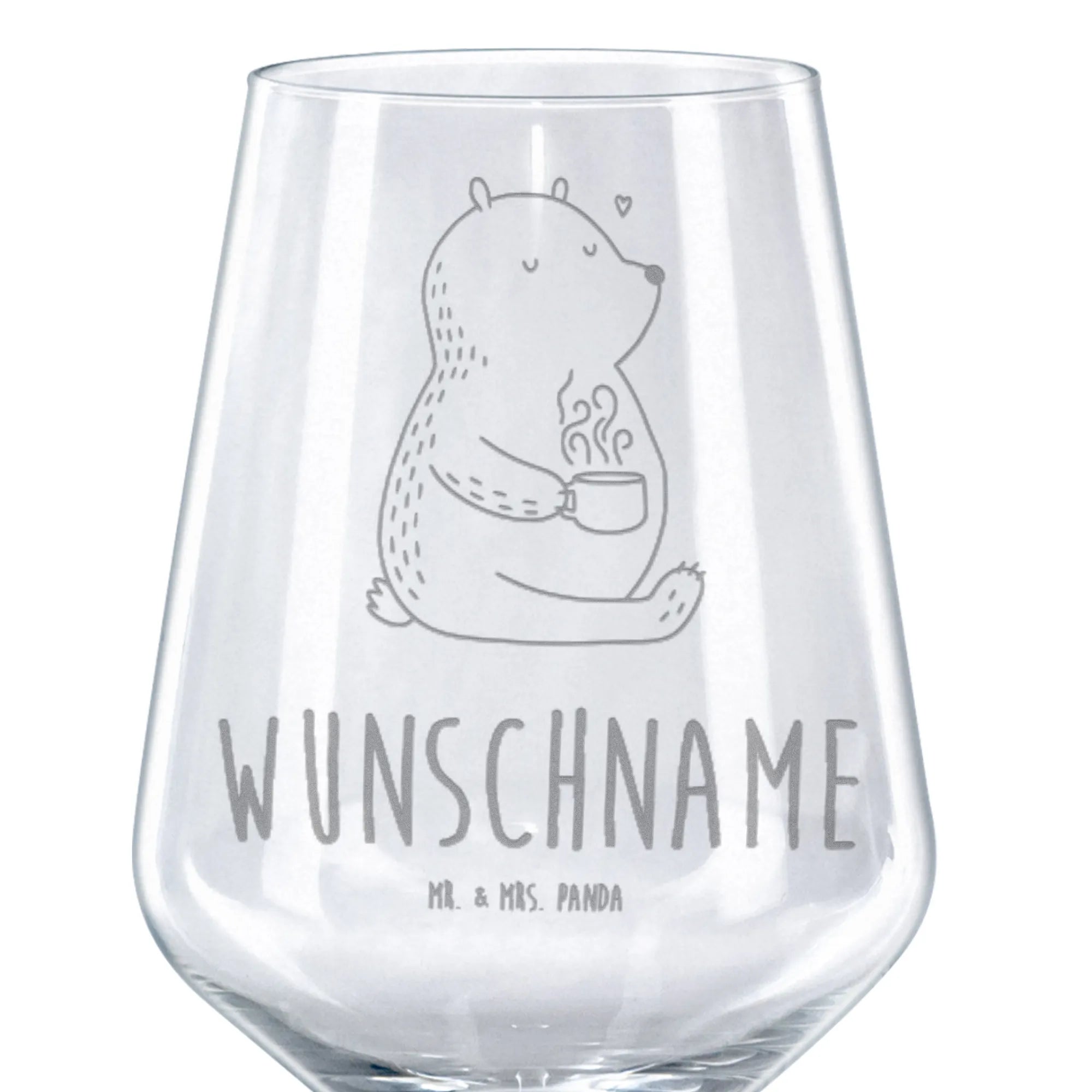 Personalizowany kieliszek do czerwonego wina Niedźwiedź Poranna kawa – Mr. & Mrs. Panda