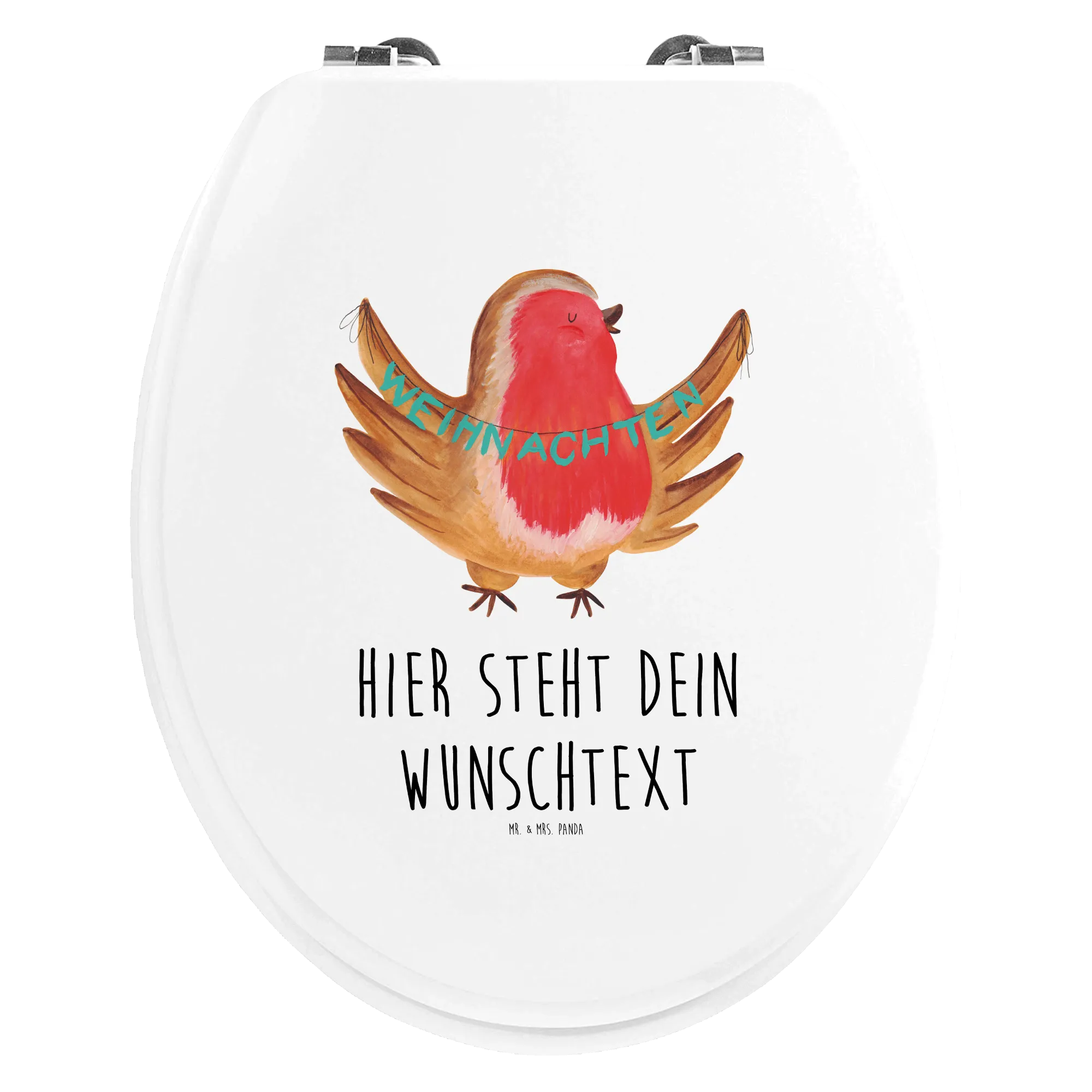 Entdecke die magische Winterwelt mit unserem personalisierten WC Sitz "Rotkehlchen Weihnachten" aus der Winter Kollektion von Mr. & Mrs. Panda! Du suchst nach dem perfekten Geschenk für die Weihnachtszeit oder möchtest deinem Badezimmer eine festliche Note verleihen? Dann ist dieser hochwertige WC Sitz genau das Richtige für dich! Das niedliche Rotkehlchen auf der Klobrille zaubert ein Lächeln in dein Gesicht und bringt den Charme der Winterzeit direkt in dein Zuhause.