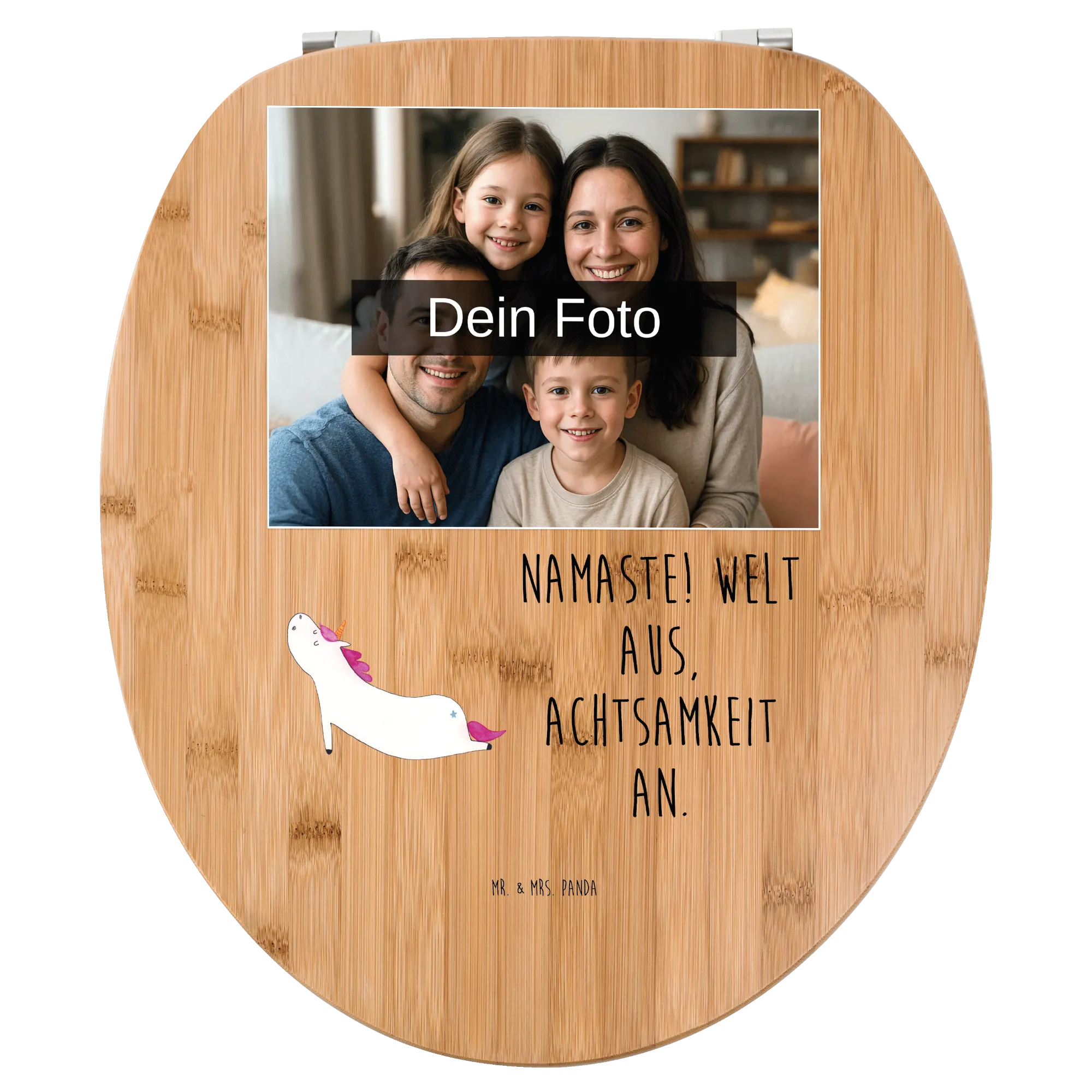 Personalisierter Foto WC Sitz Motiv Einhorn Yoga - Bambus