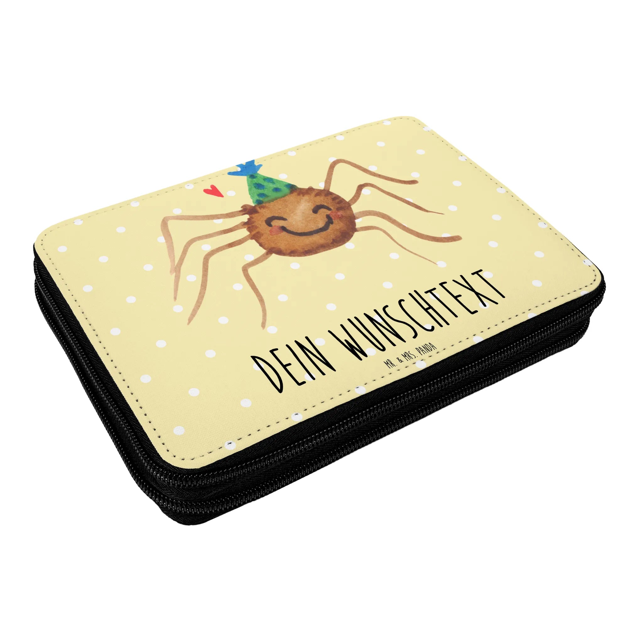 Die personalisierte Federmappe Spinne Agathe Party von Mr. & Mrs. Panda ist das perfekte Geschenk für Schulkinder! Jeder Schüler und jede Schülerin wird diese wunderschöne und praktische Federmappe lieben. Egal ob zur Einschulung oder als Geschenk zum Geburtstag, diese Federmappe bringt Freude und Motivation in den Schulalltag.