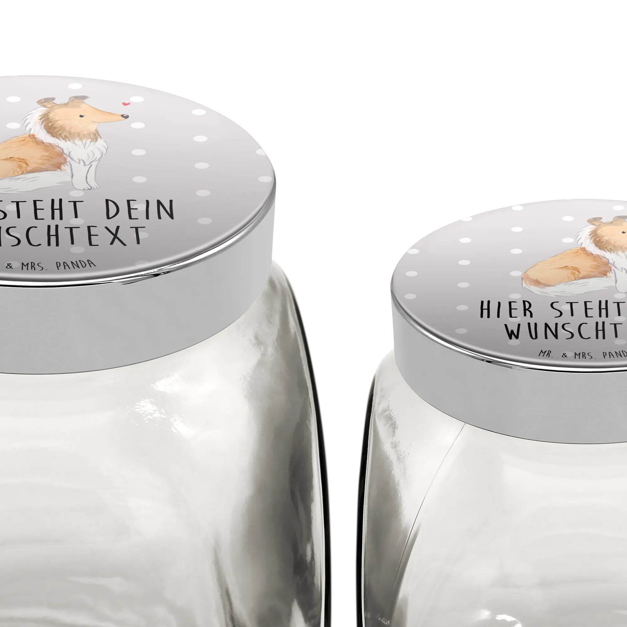 Personalizowany Słoik na Smakołyki długowłosy collie Chwila - L 870ml - biały