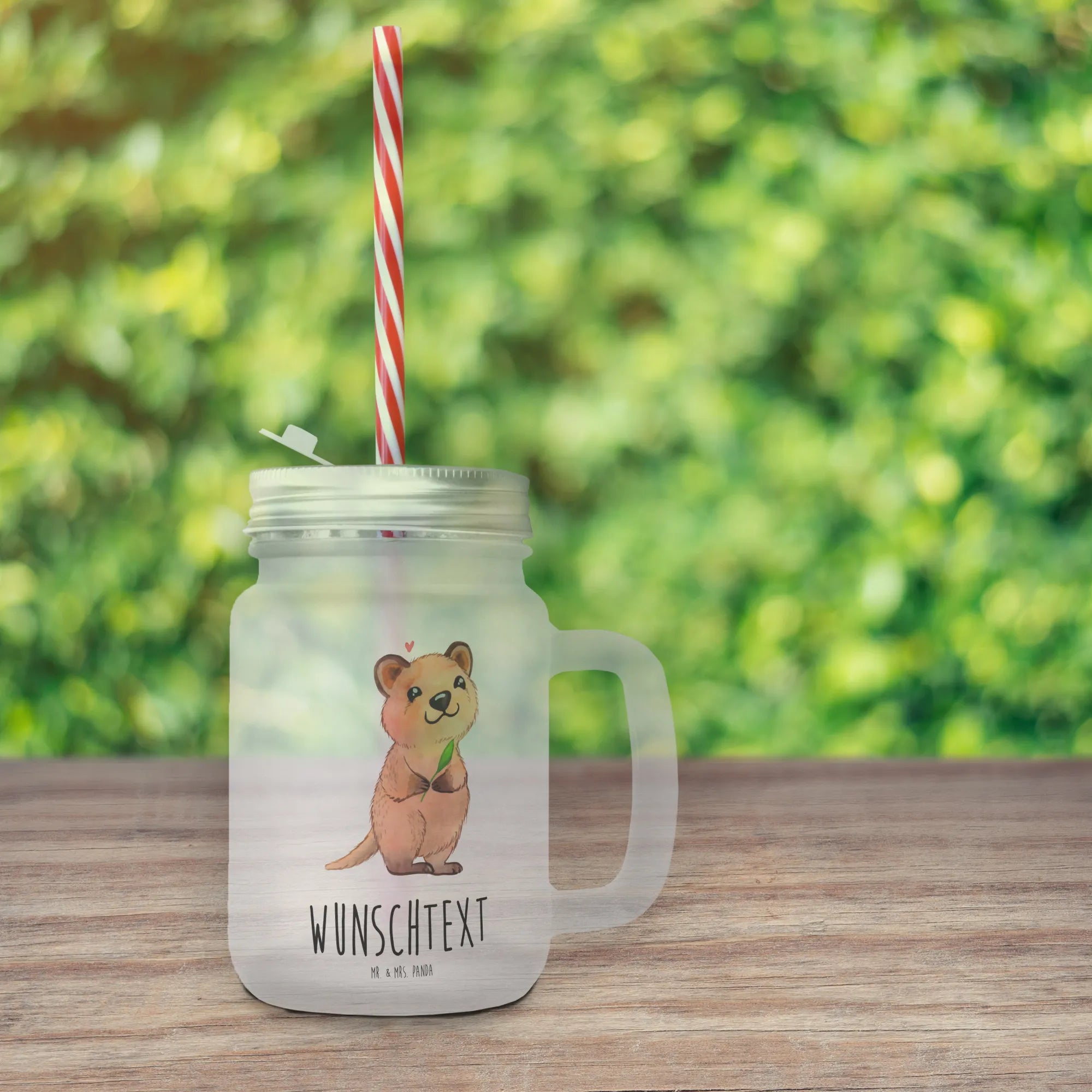 Personalisiertes Trinkglas Mason Jar Quokka Happy – Mr. & Mrs. Panda