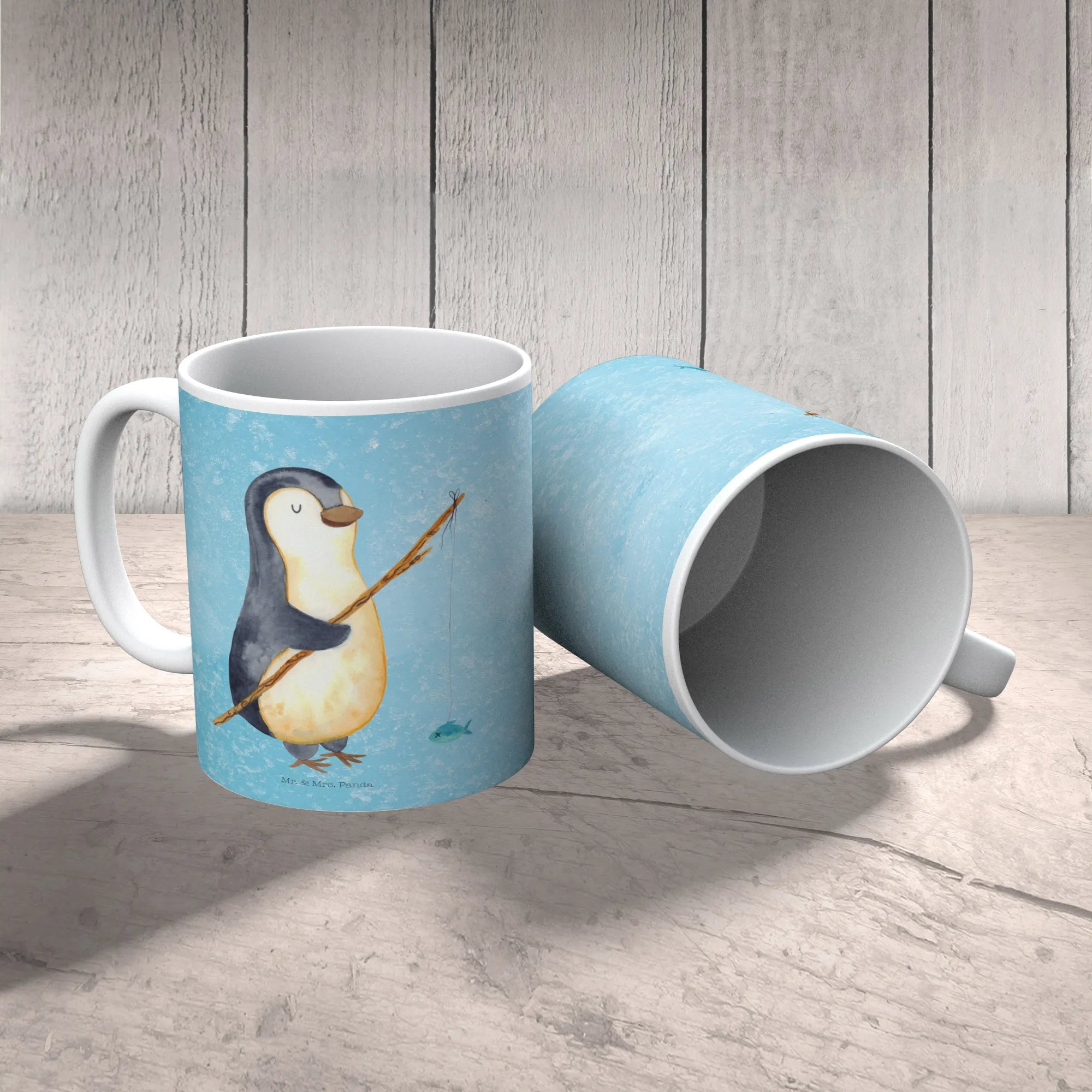 Kubek Pingwin Wędkarz - z napisem - Ceramika - biały