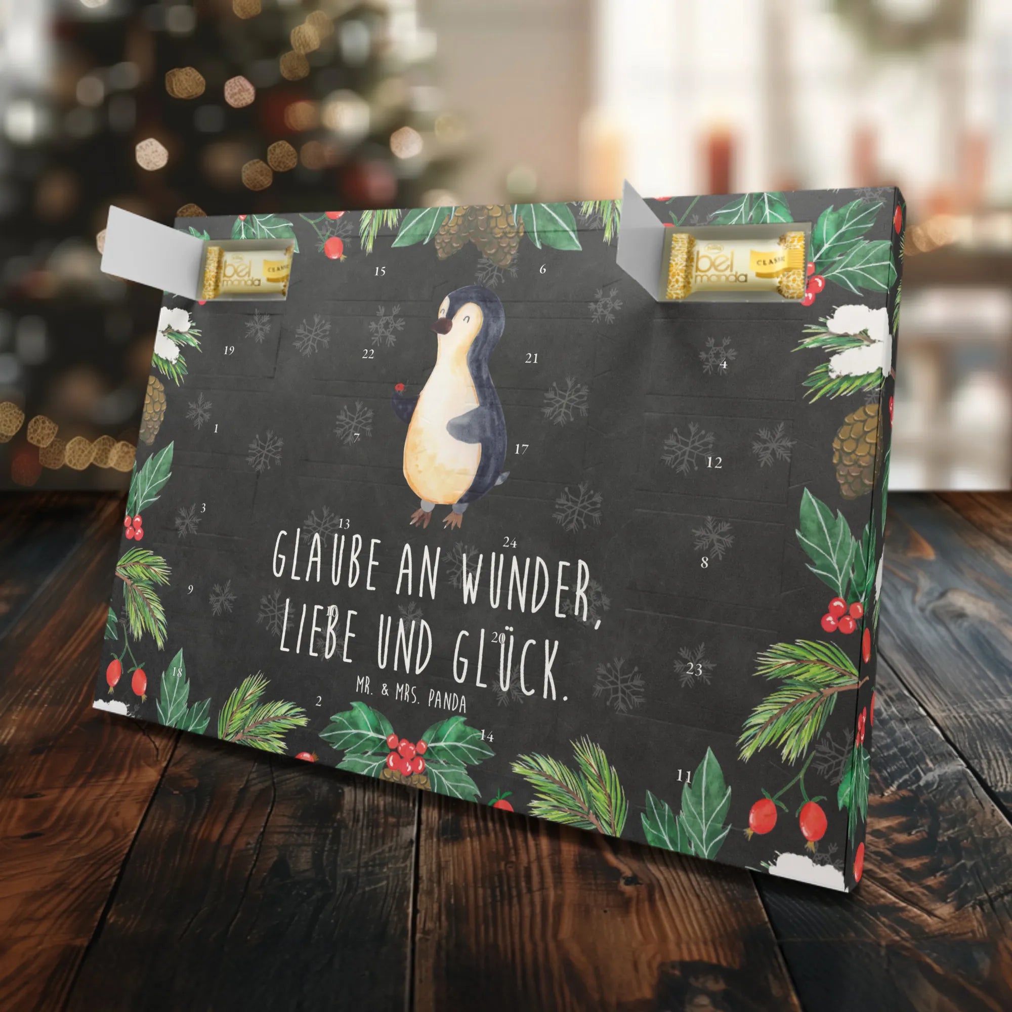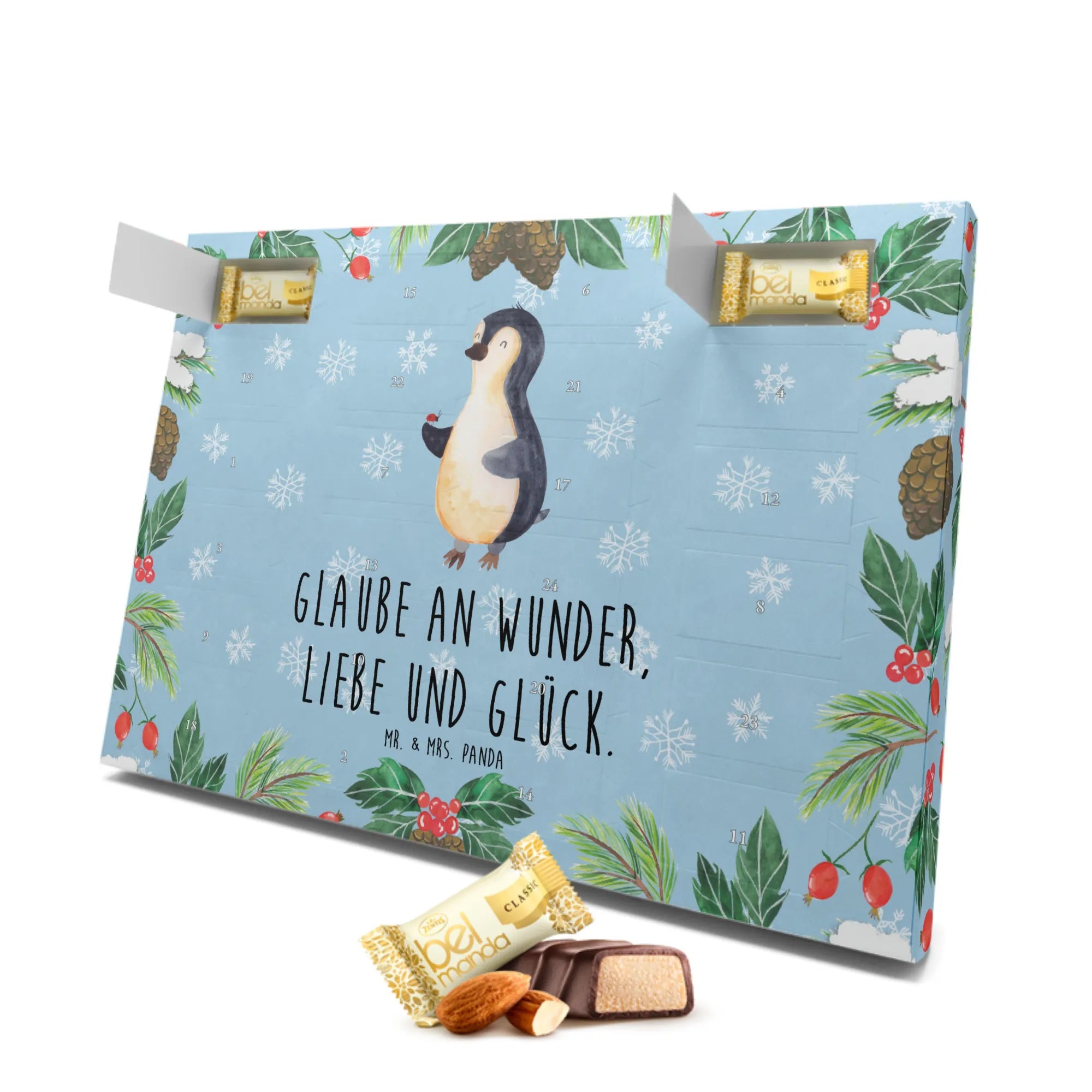Der Marzipan Adventskalender aus der Pinguin-Kollektion von Mr. & Mrs. Panda ist das perfekte Geschenk für die Vorweihnachtszeit! Mit wunderschönem Pinguin- und Marienkäfer-Motiv bringt er nicht nur Freude, sondern auch eine große Portion Lebensfreude in jedes Zuhause.