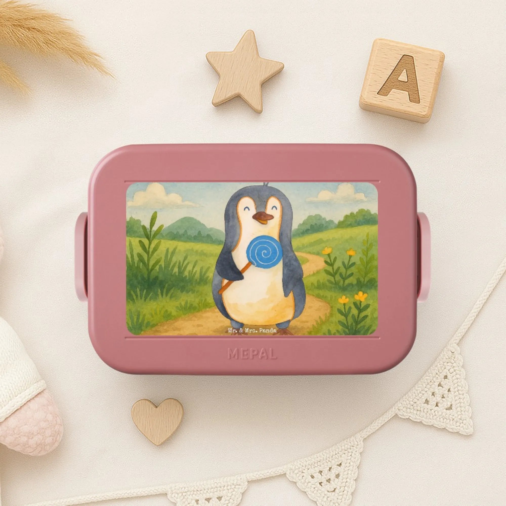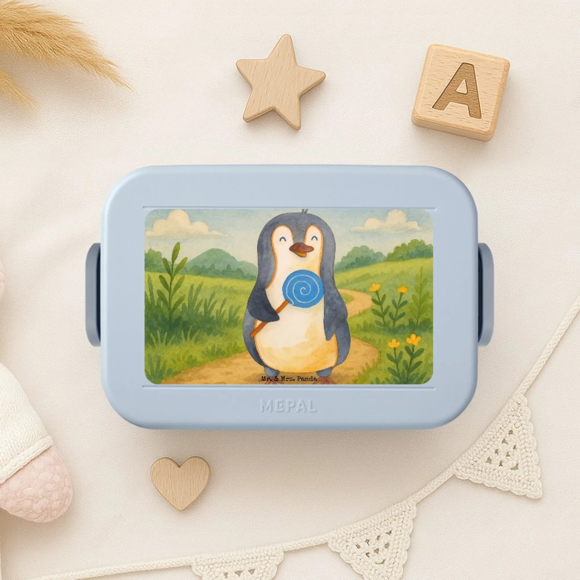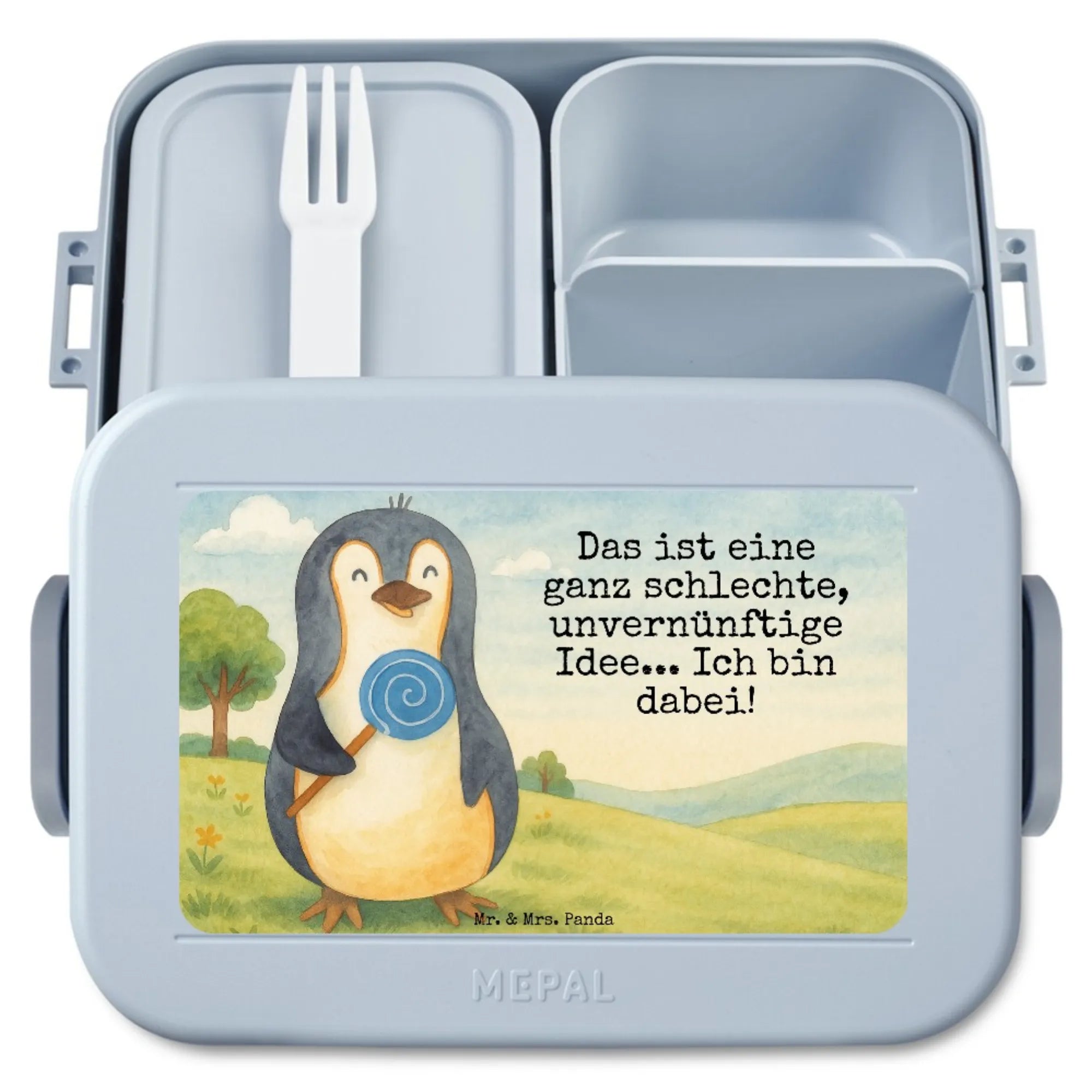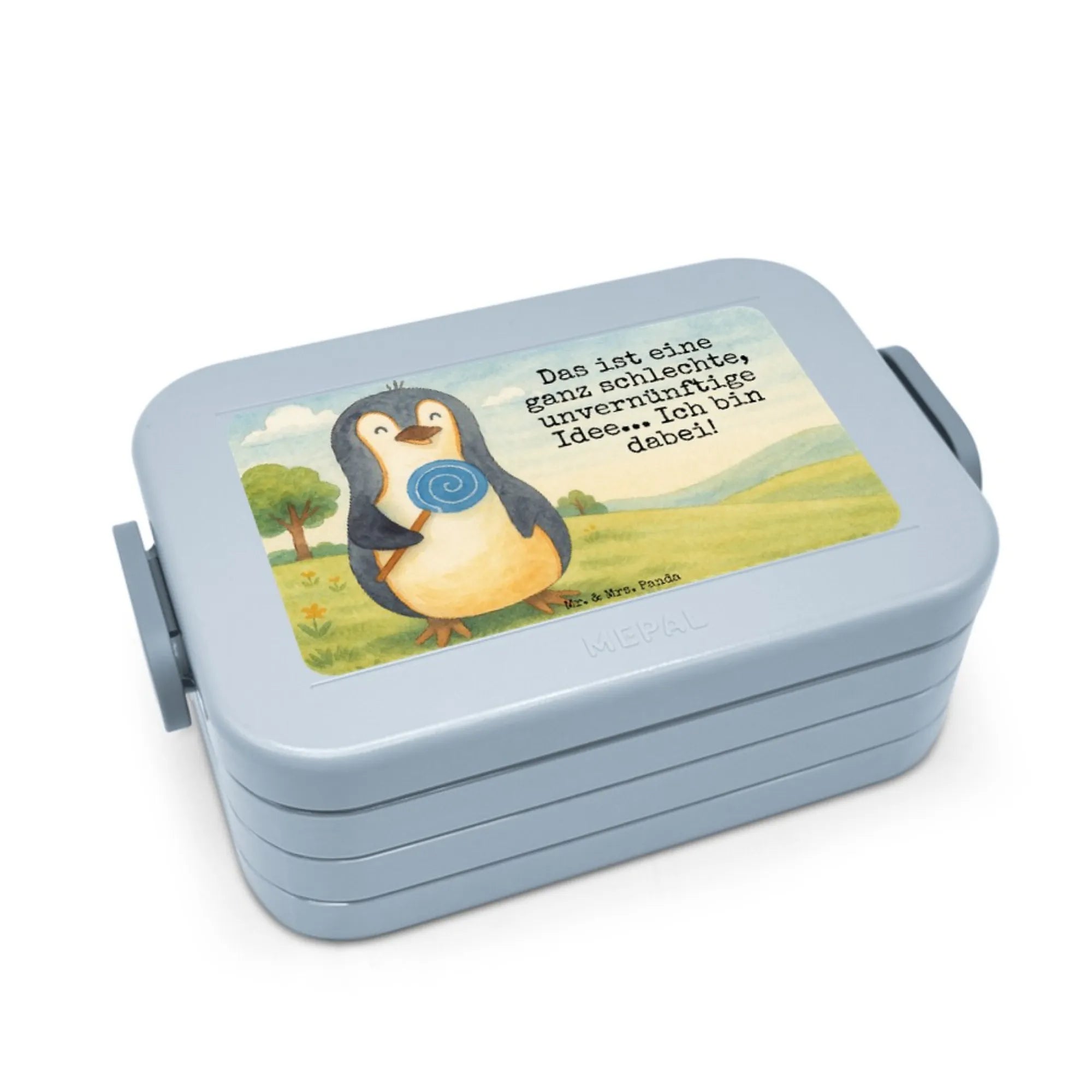 MEPAL Bentobox Pinguin Lolli Design - mit Spruch - Blau Pastell