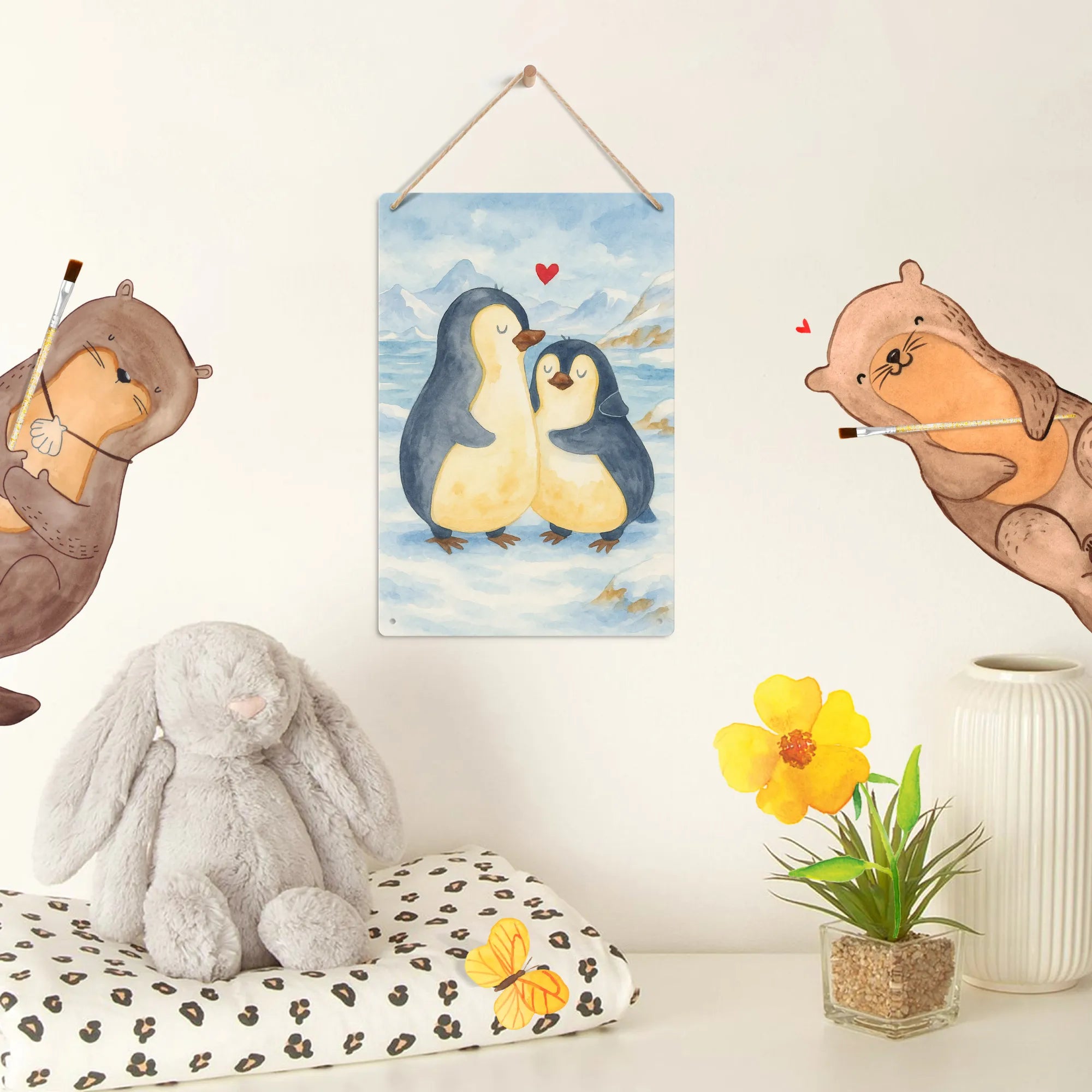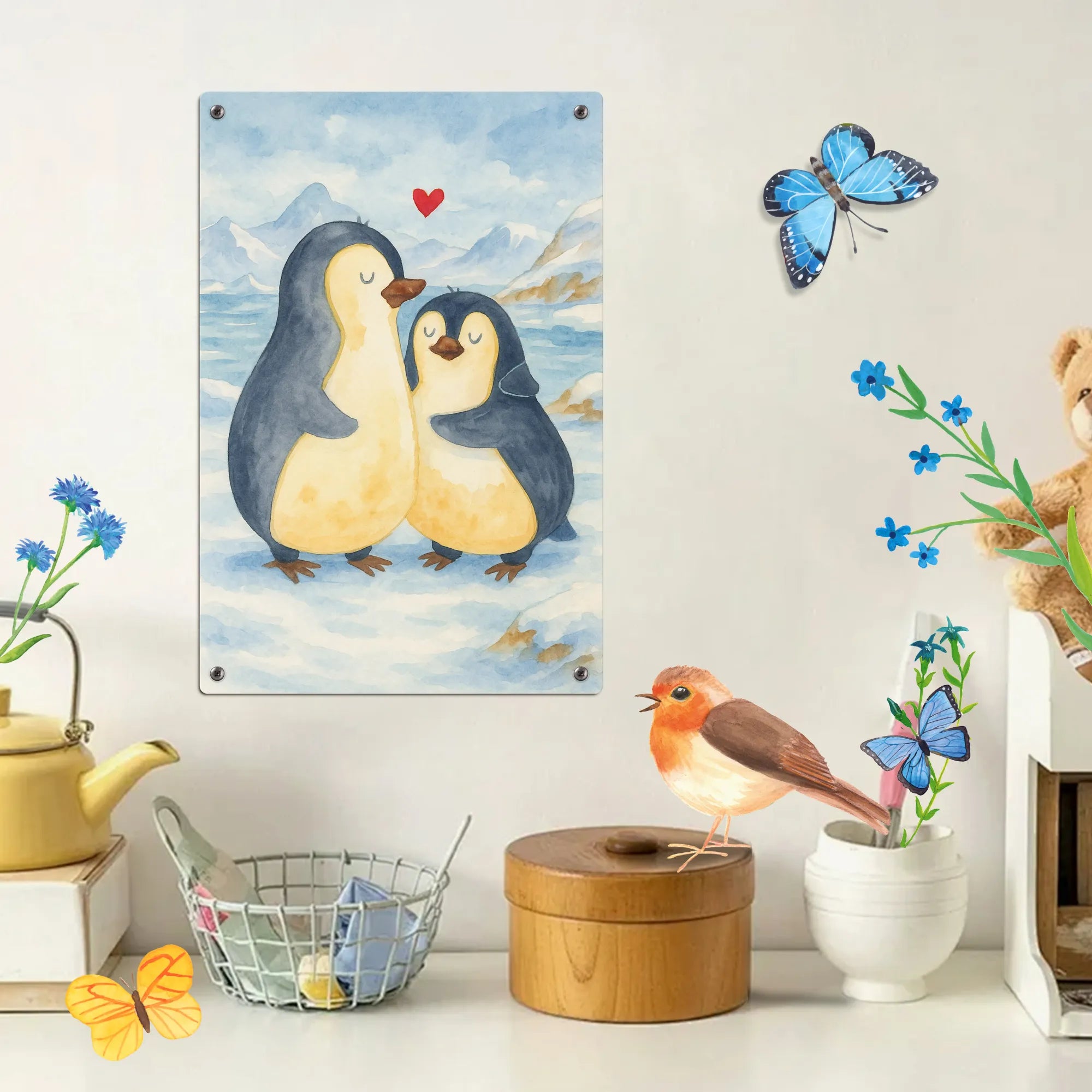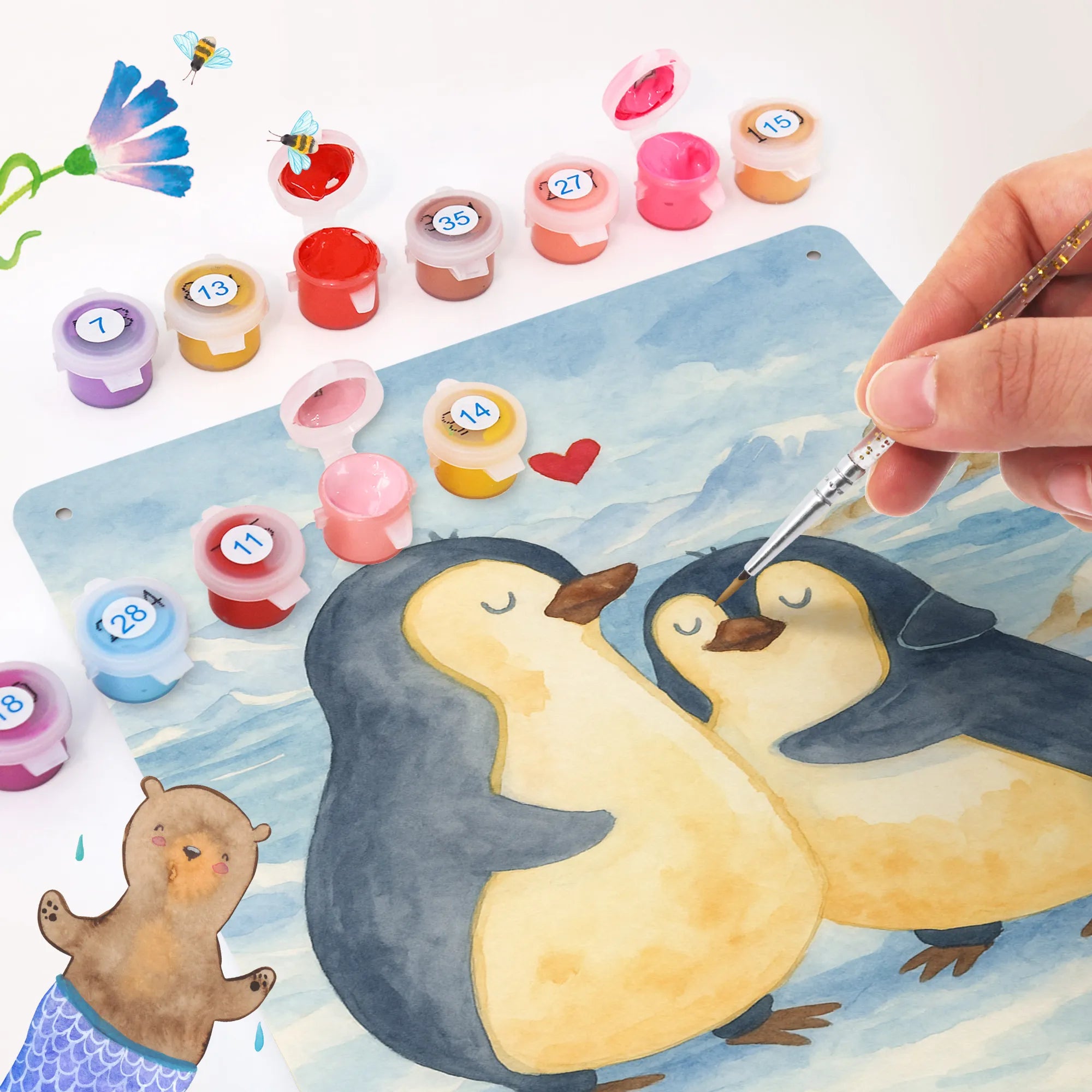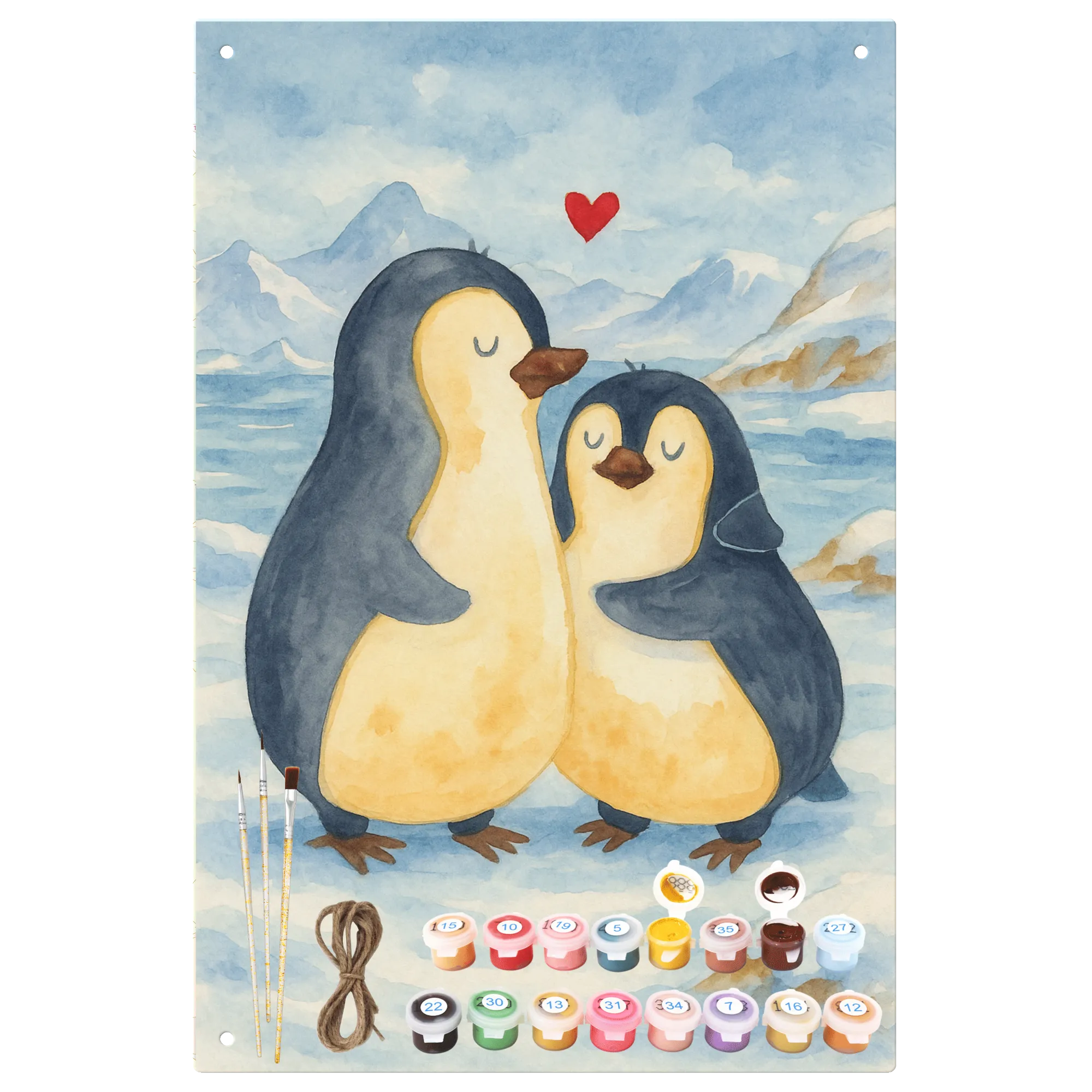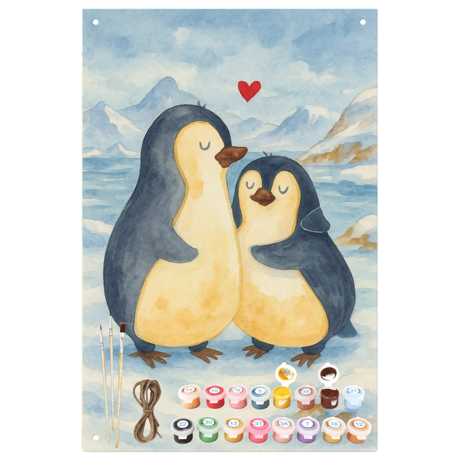 Metalowy szyld do malowania po numerach Pingwin przytulać Design