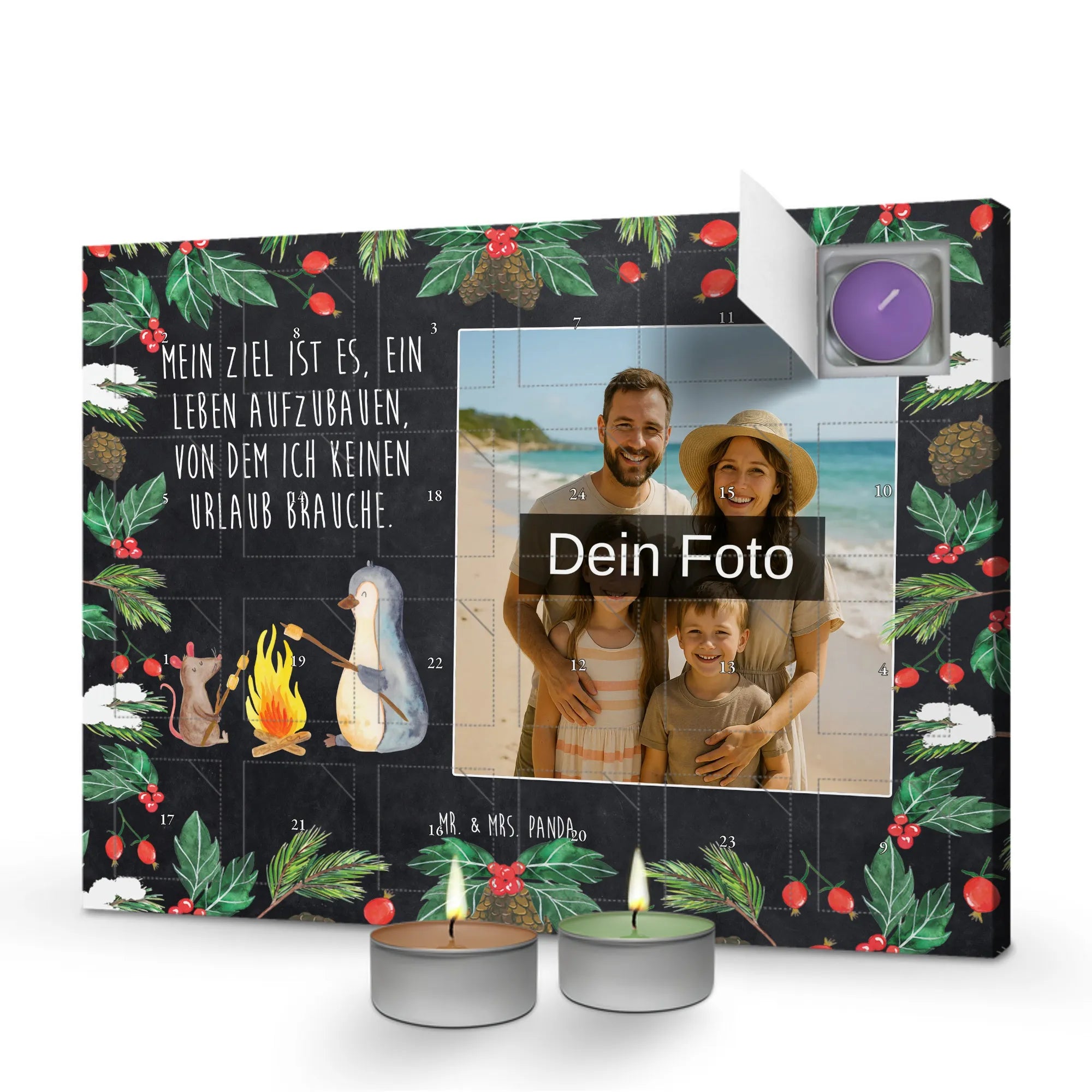 Personalisierter Duftkerzen Foto Adventskalender Pinguin Lagerfeuer