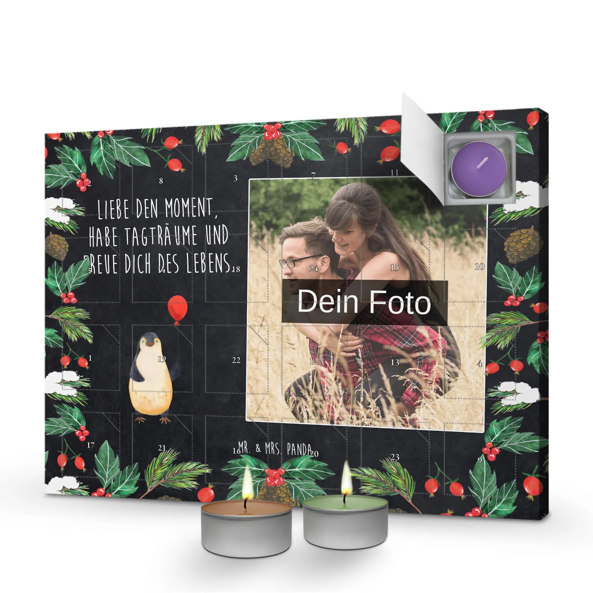 Personalisierter Duftkerzen Foto Adventskalender Pinguin Luftballon – Mr. & Mrs. Panda