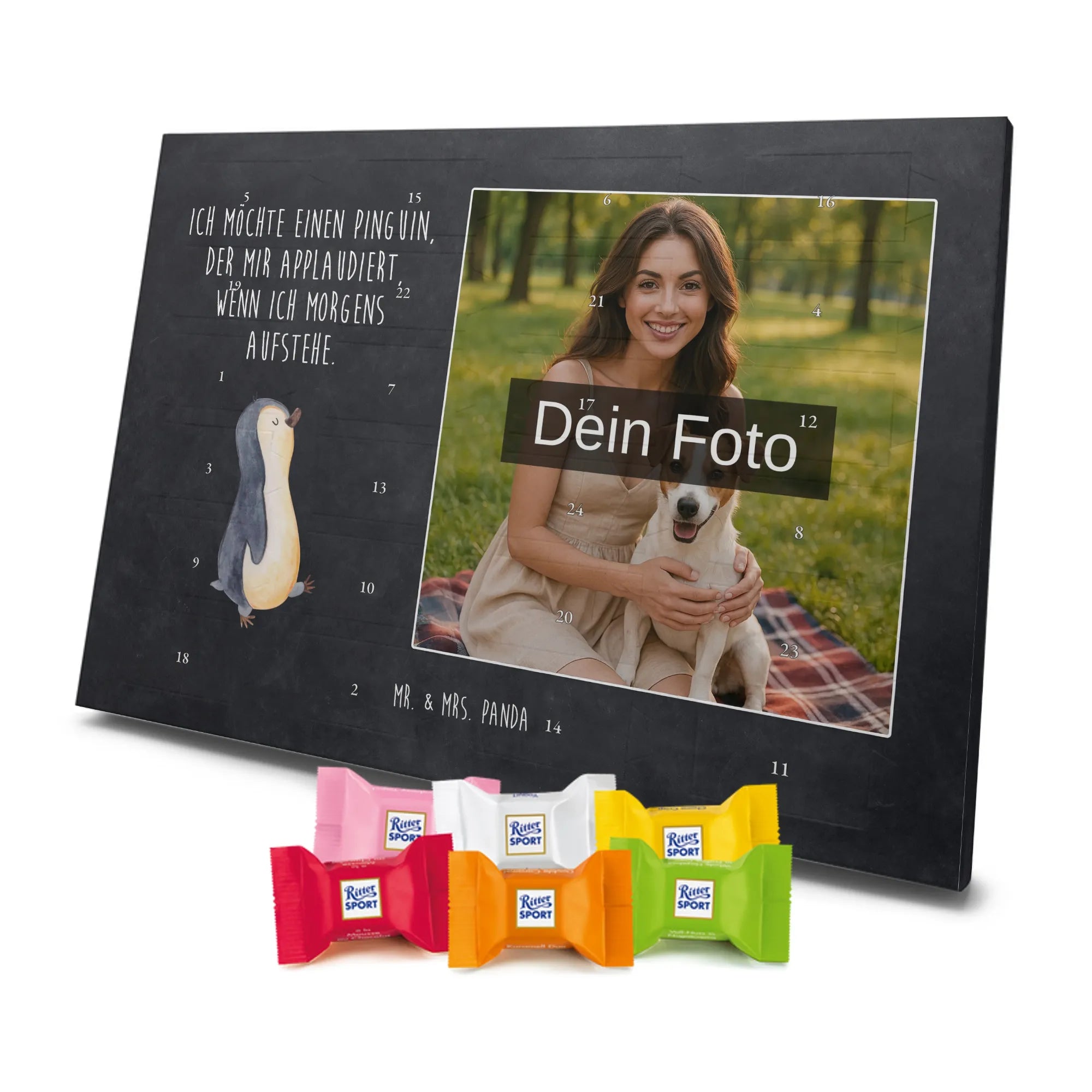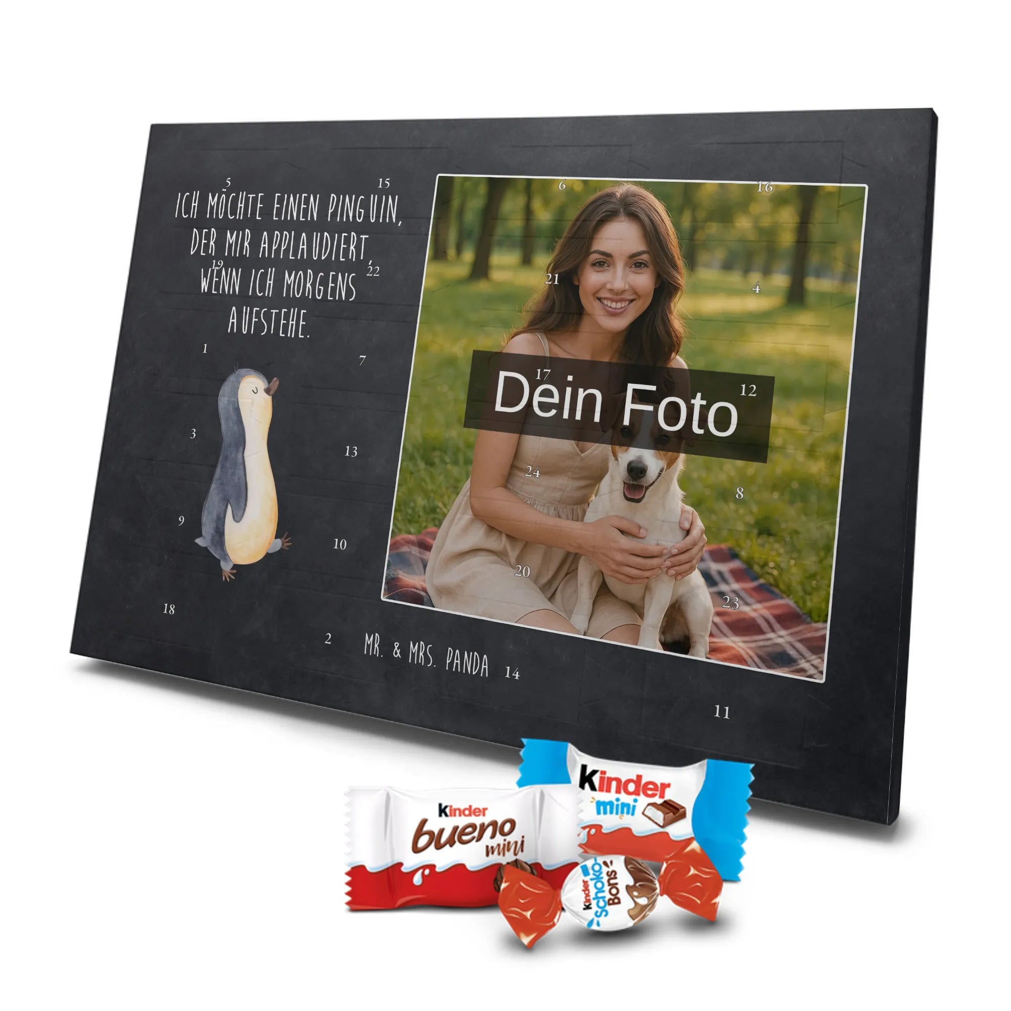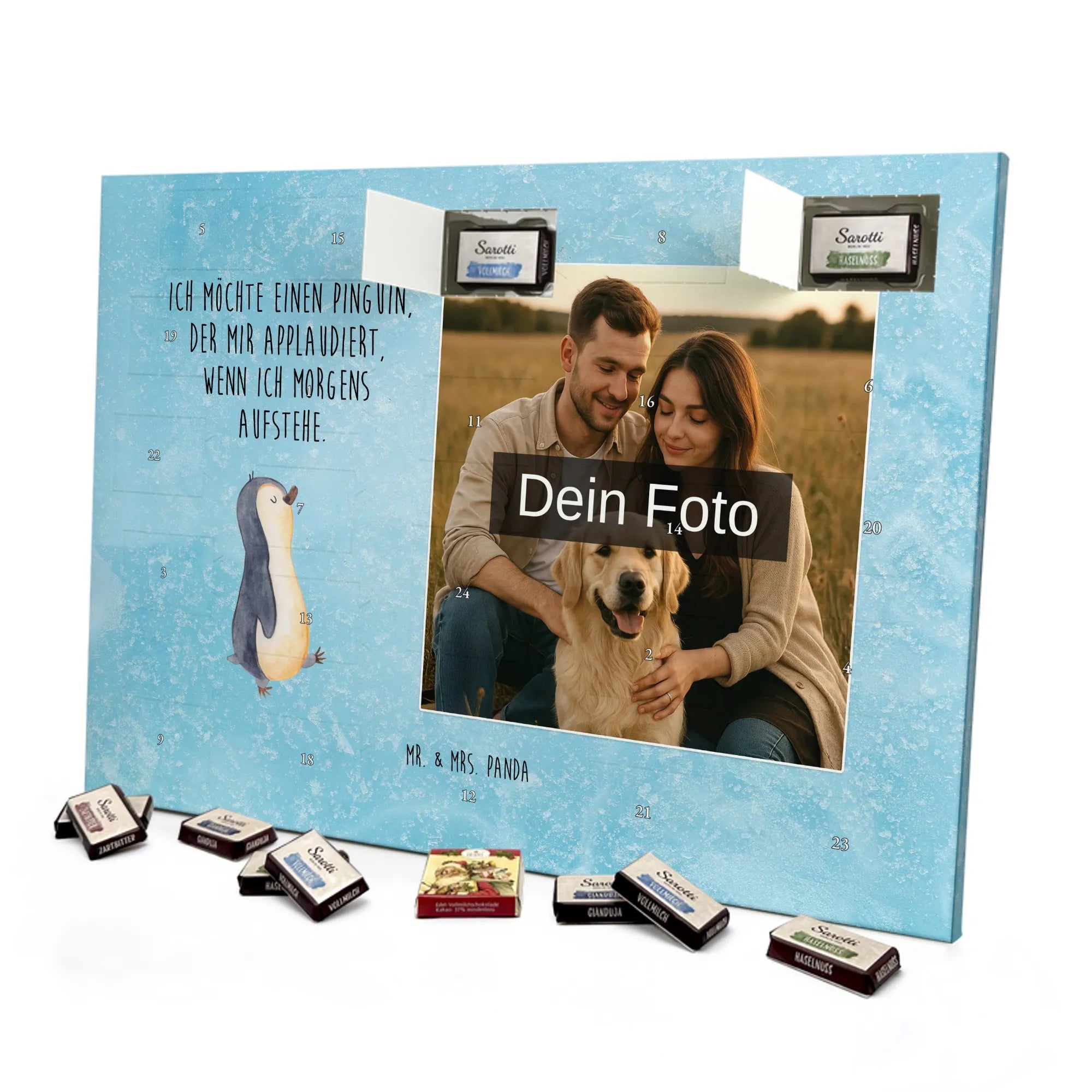 Dieser Adventskalender ist die perfekte Geschenkidee für Familien, Geschwister, Freundinnen und Freunde sowie alle Pinguin-Fans. Du personalisierst ihn mit deinem Lieblingsfoto – so entsteht ein einzigartiges Geschenk, das Herz und Gaumen zugleich anspricht. Ein tolles Präsent für die Schwester, den Bruder, Eltern, Partner oder als liebevolle Aufmerksamkeit für Frühaufsteher und Langschläfer.