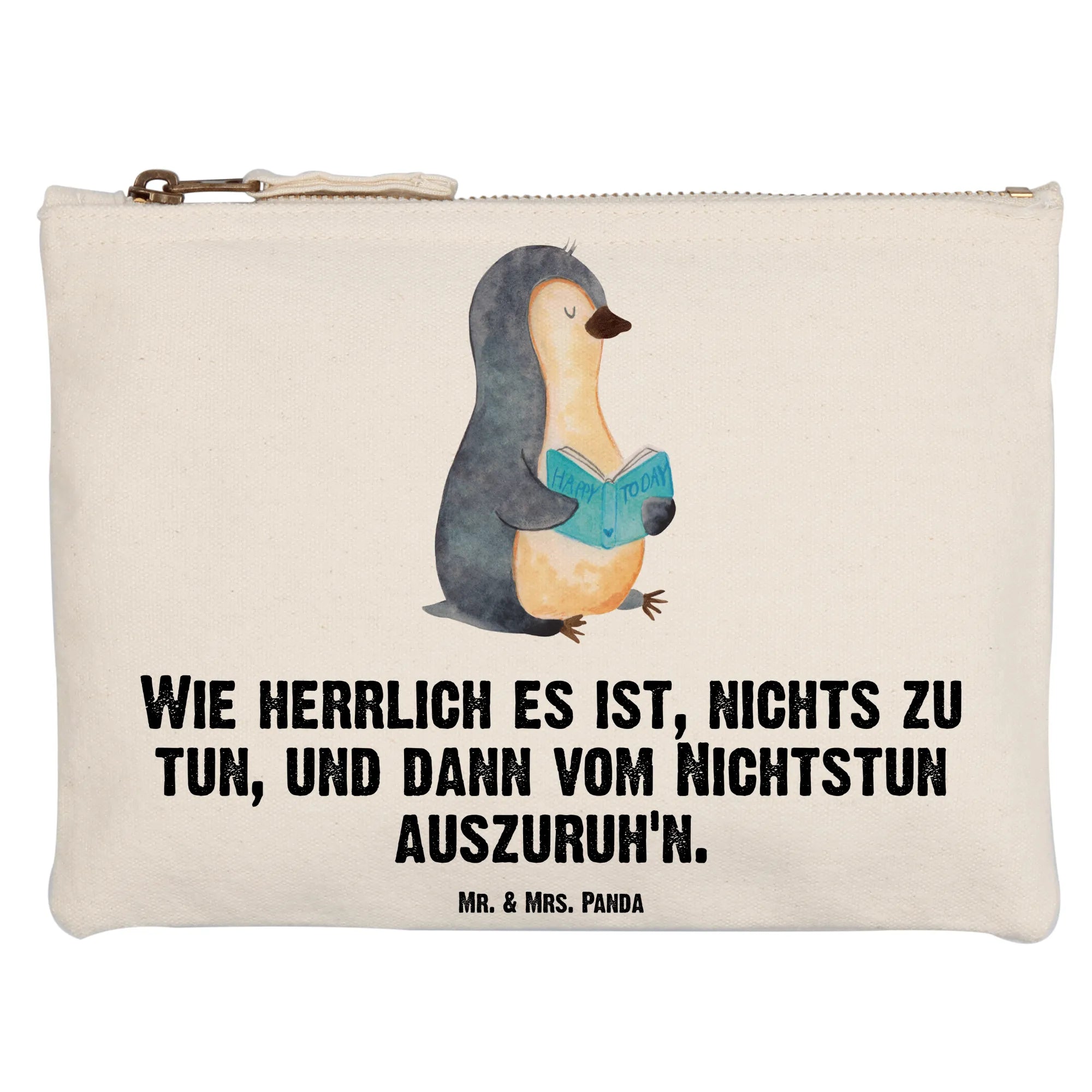 torebka na makijaż pingwin książka - Größe S Klein - z napisem