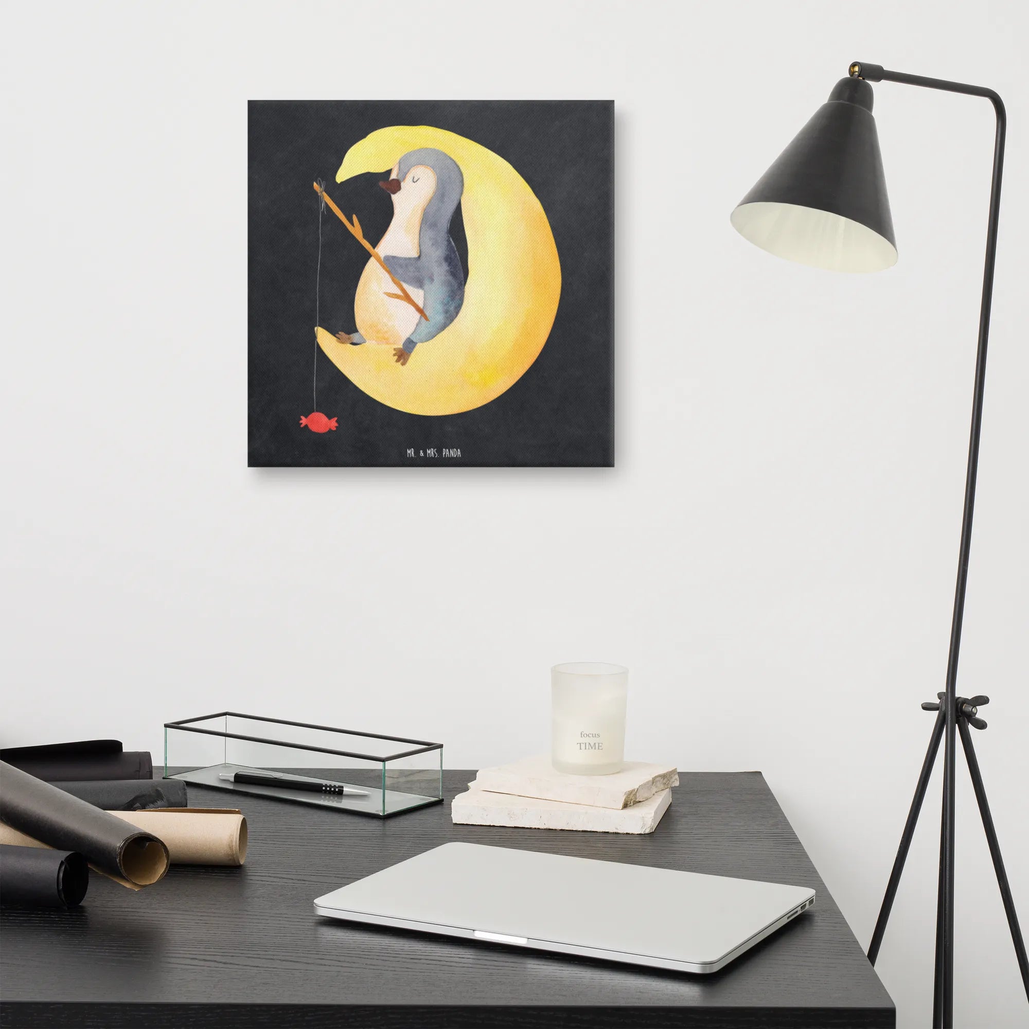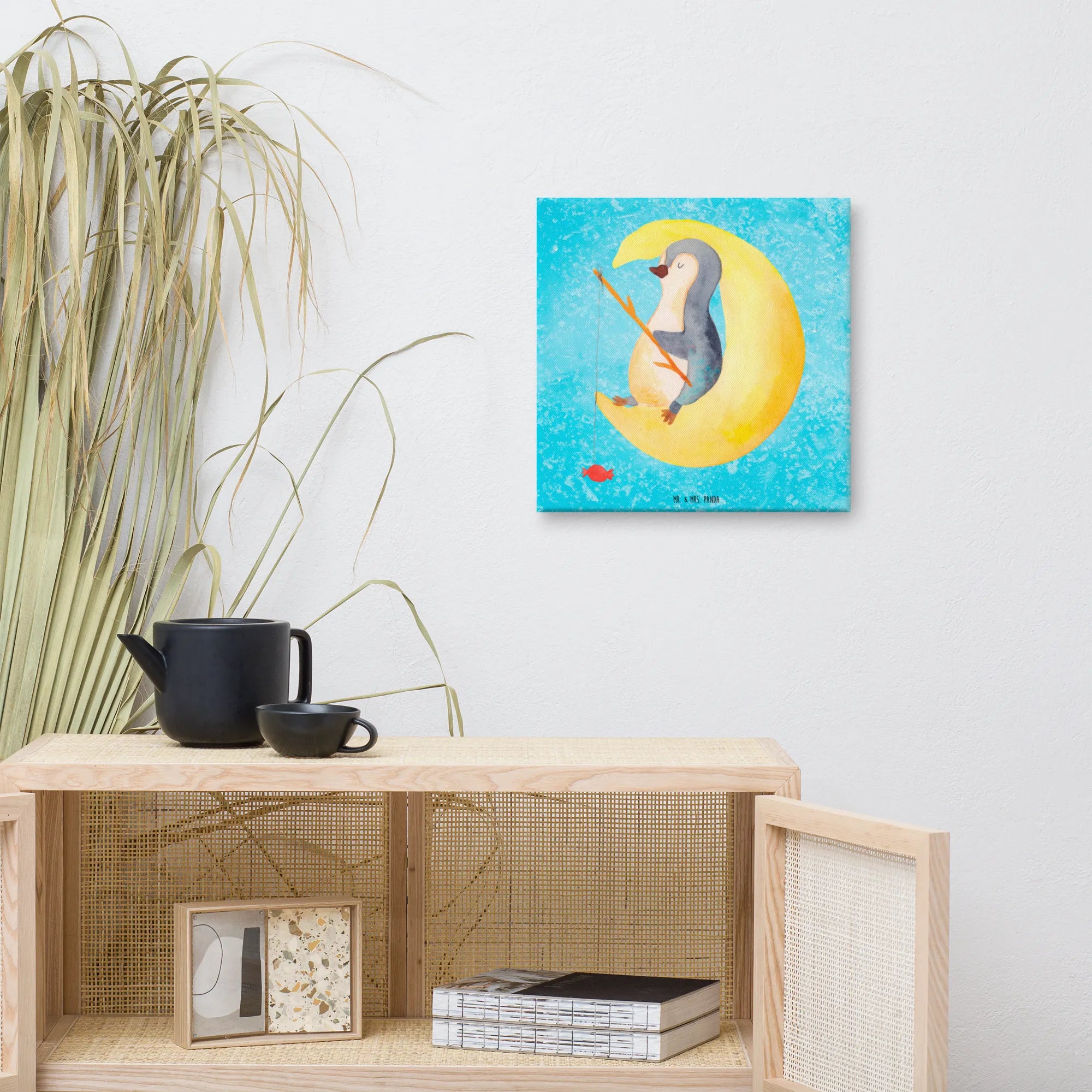 Obraz na płótnie pingwin księżyc - 40 x 40 cm - z napisem - biały