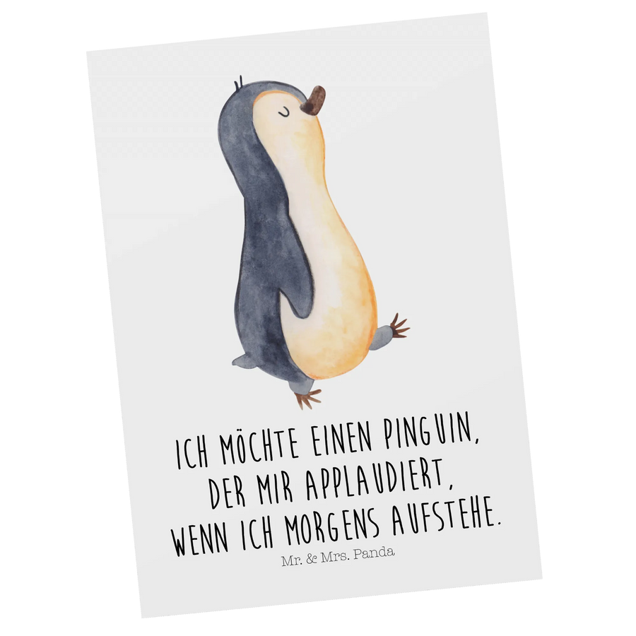 Pocztówka Pingwin maszerować - z napisem - biały