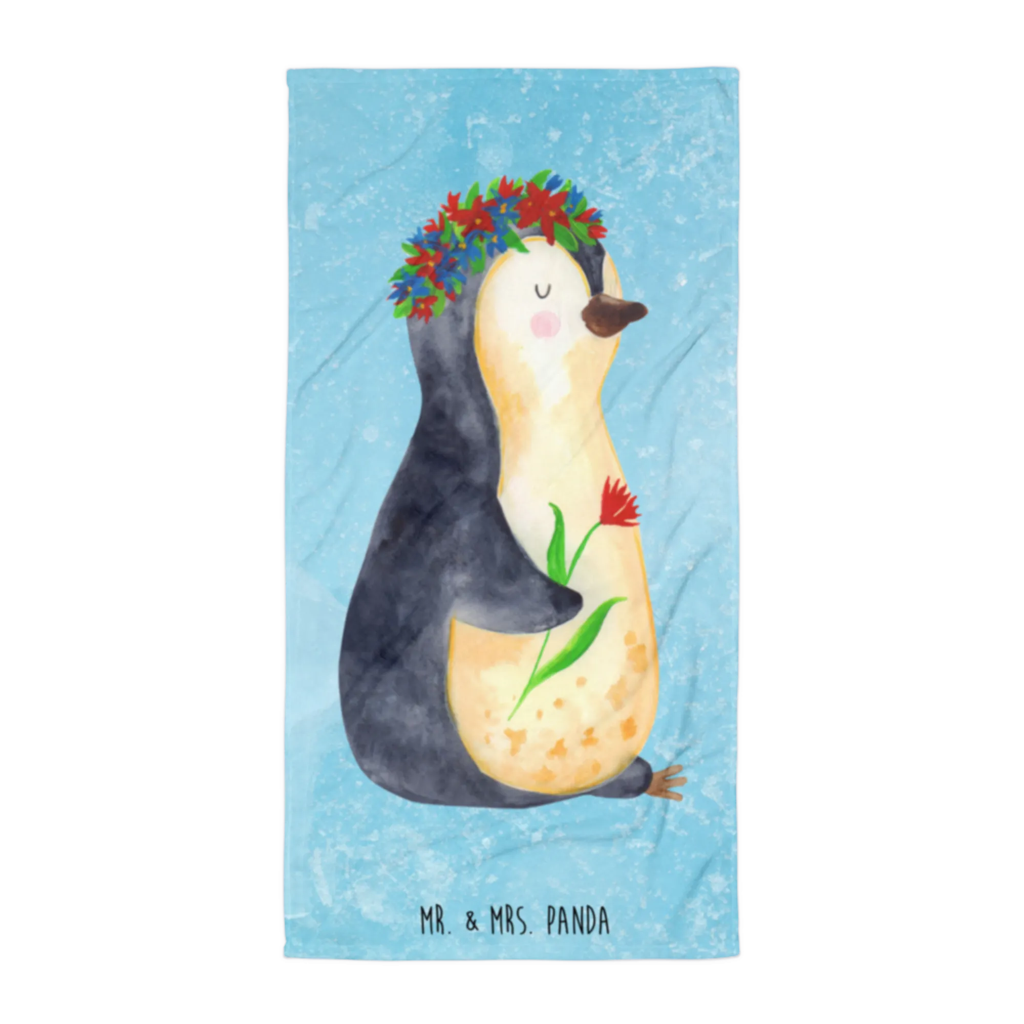XL ręcznik kąpielowy pingwin kwiaty - z napisem - lodowoniebieski