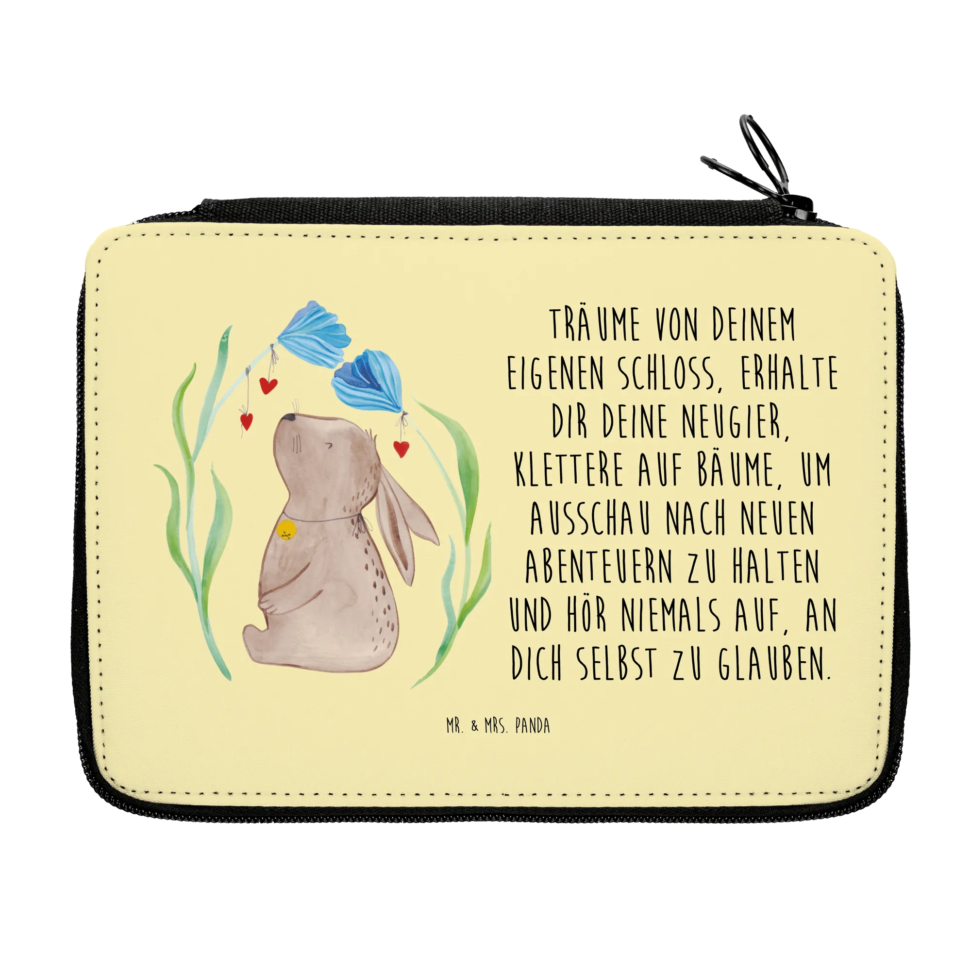 Piórnik królik kwiat - z napisem