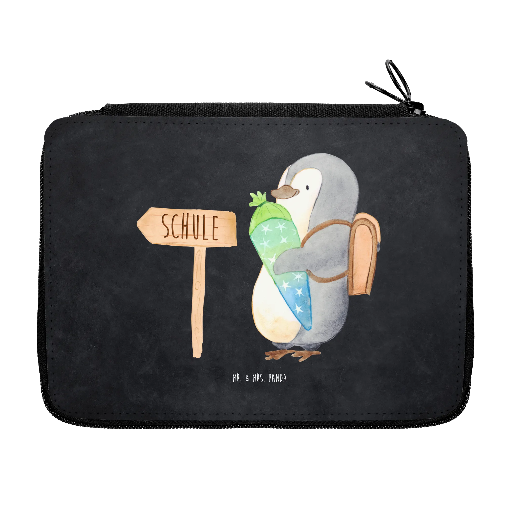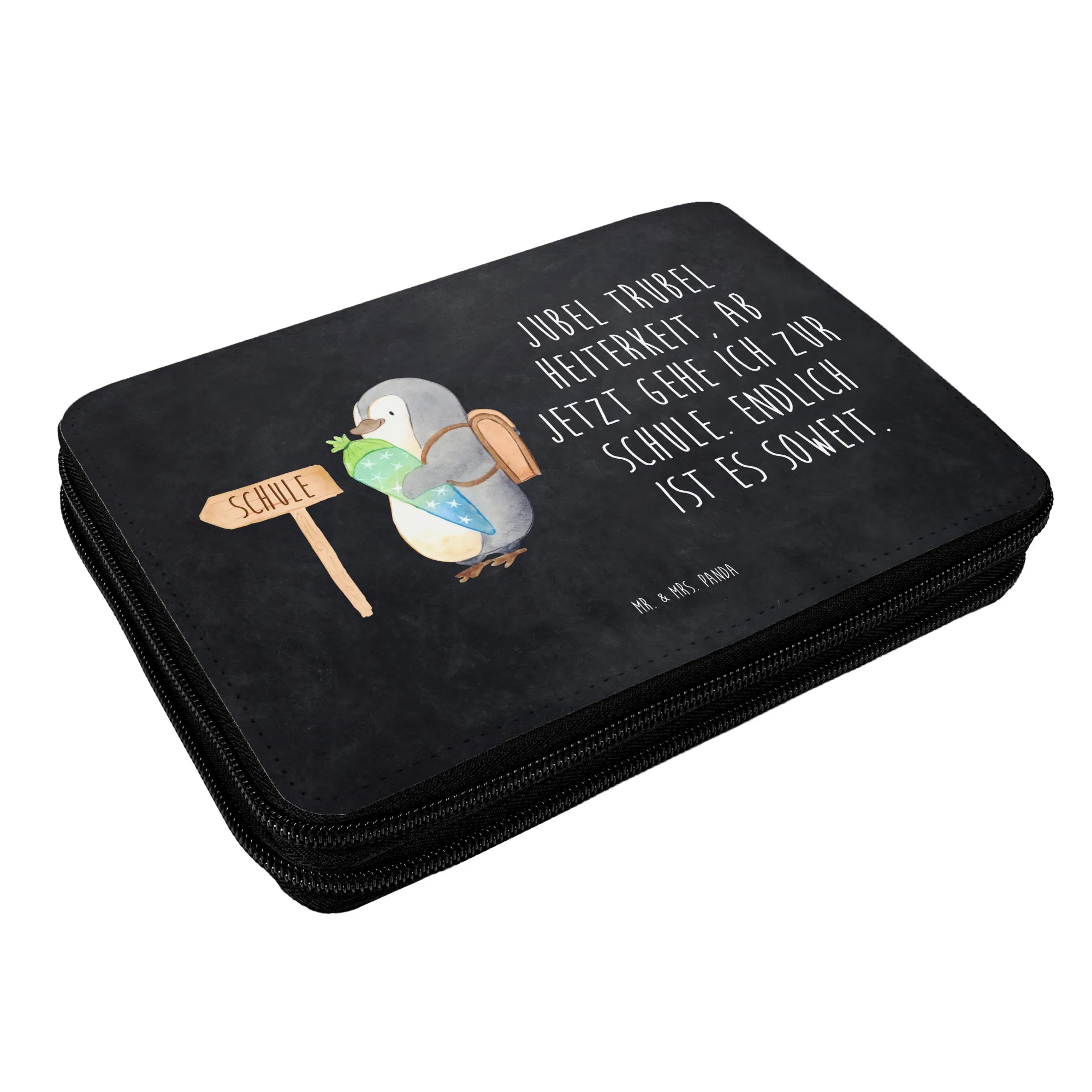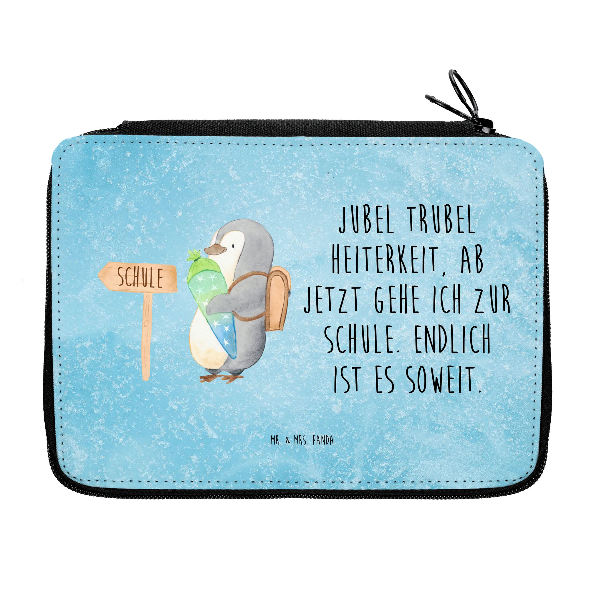 Piórnik pingwin torebka na rozpoczęcie szkoły - z napisem - lodowoniebieski