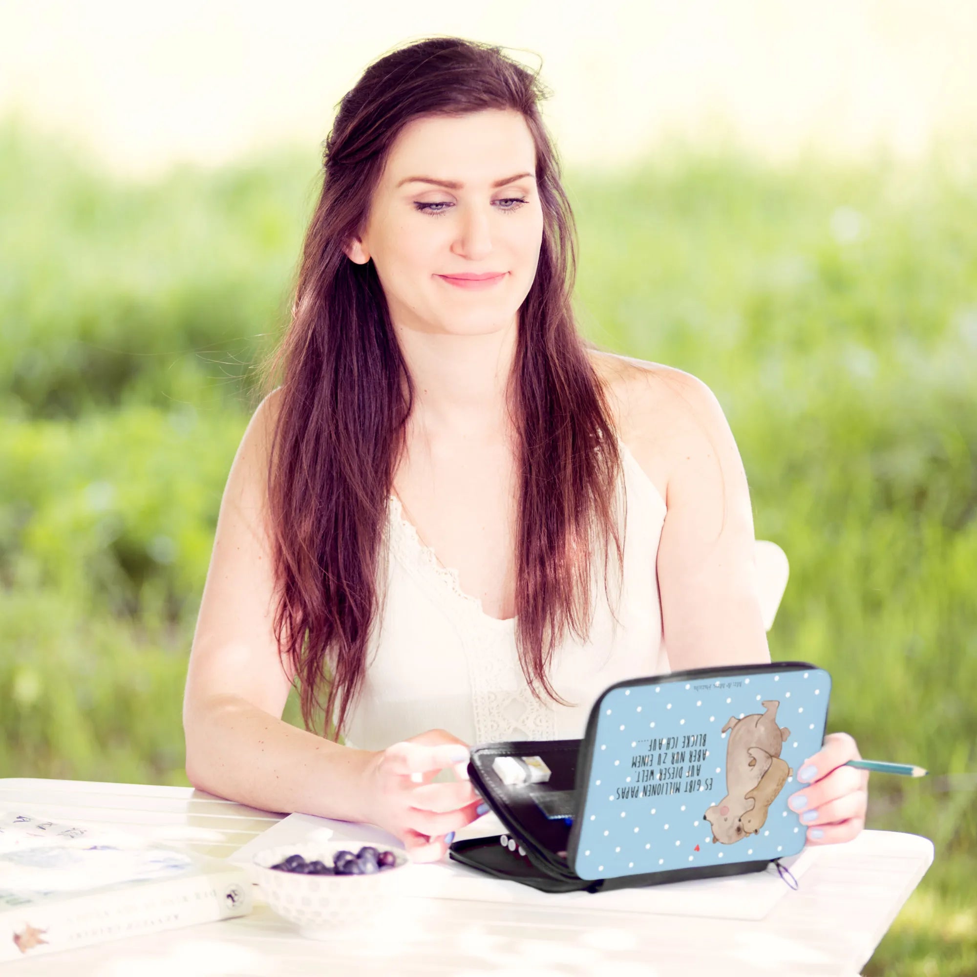 Piórnik Tata Niedźwiedź - z napisem - Pastelowy szary