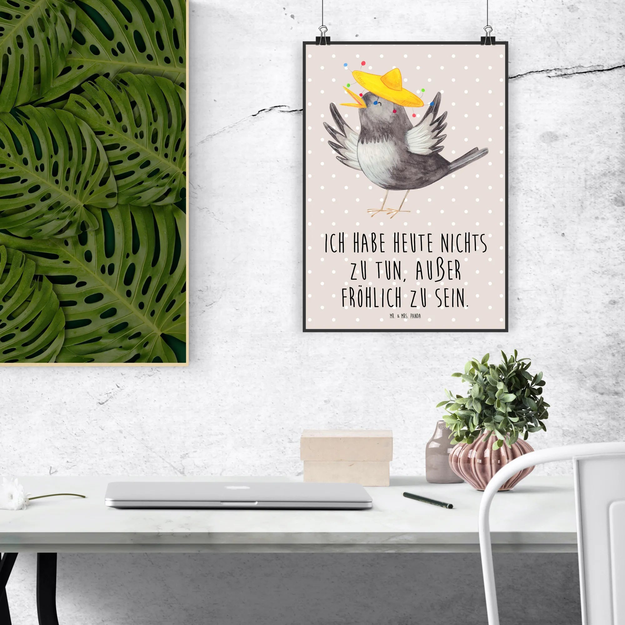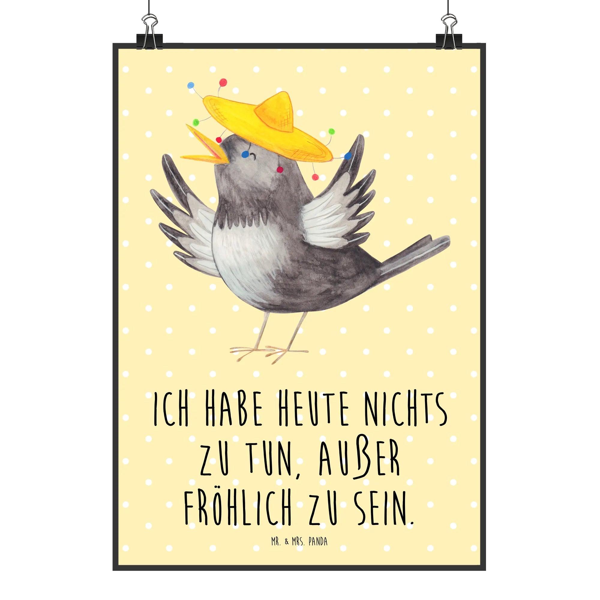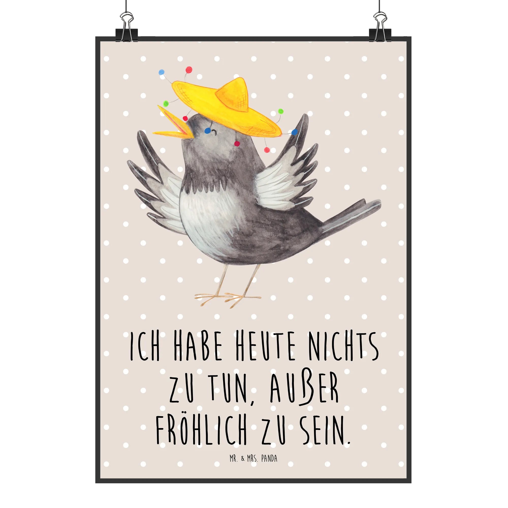Dieser putzige Rabe mit Sombrero ist ein richtiges Gute-Laune-Poster. Mit seinem lustigen Hut, dem tanzenden Körper und dem liebevollen Spruch „Ich habe heute nichts zu tun, außer fröhlich zu sein.“ zaubert er sofort ein Lächeln an die Wand. Ein charmantes Designposter, das Illustration und Typografie zu einem einzigartigen Kunstdruck verbindet.