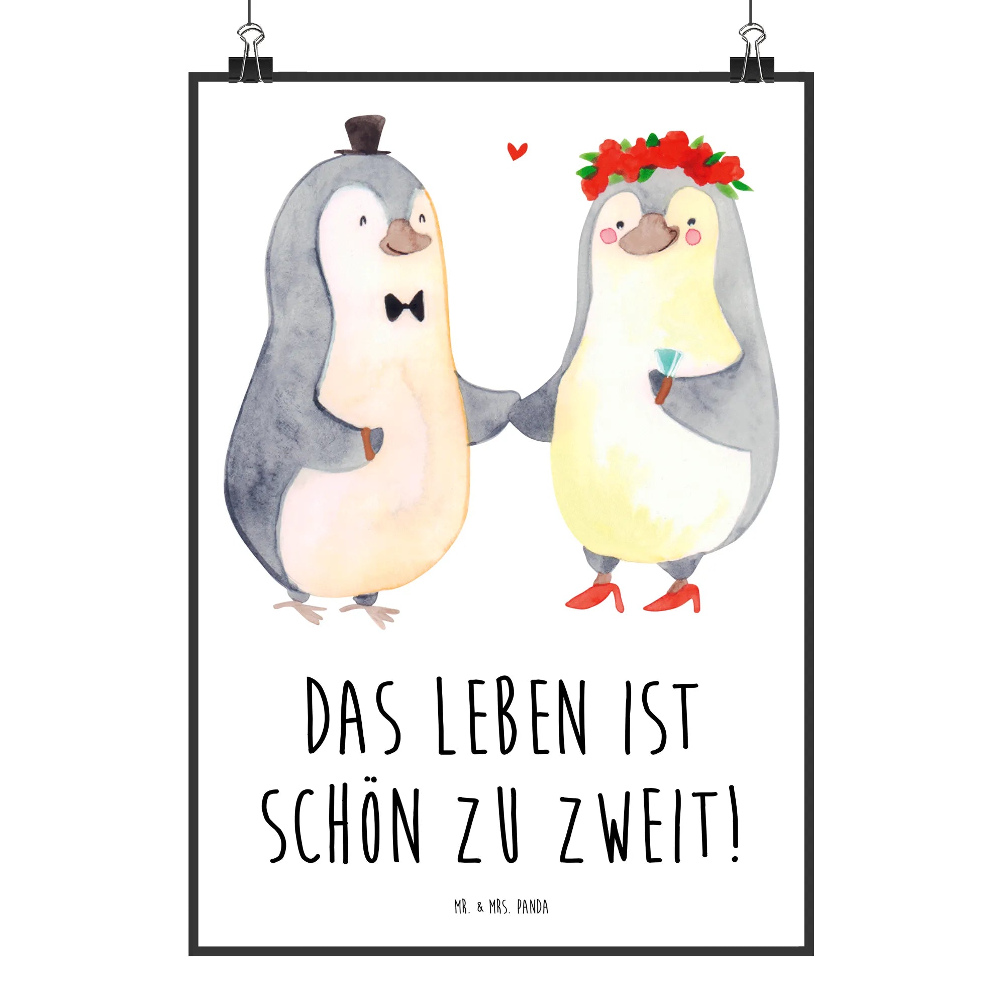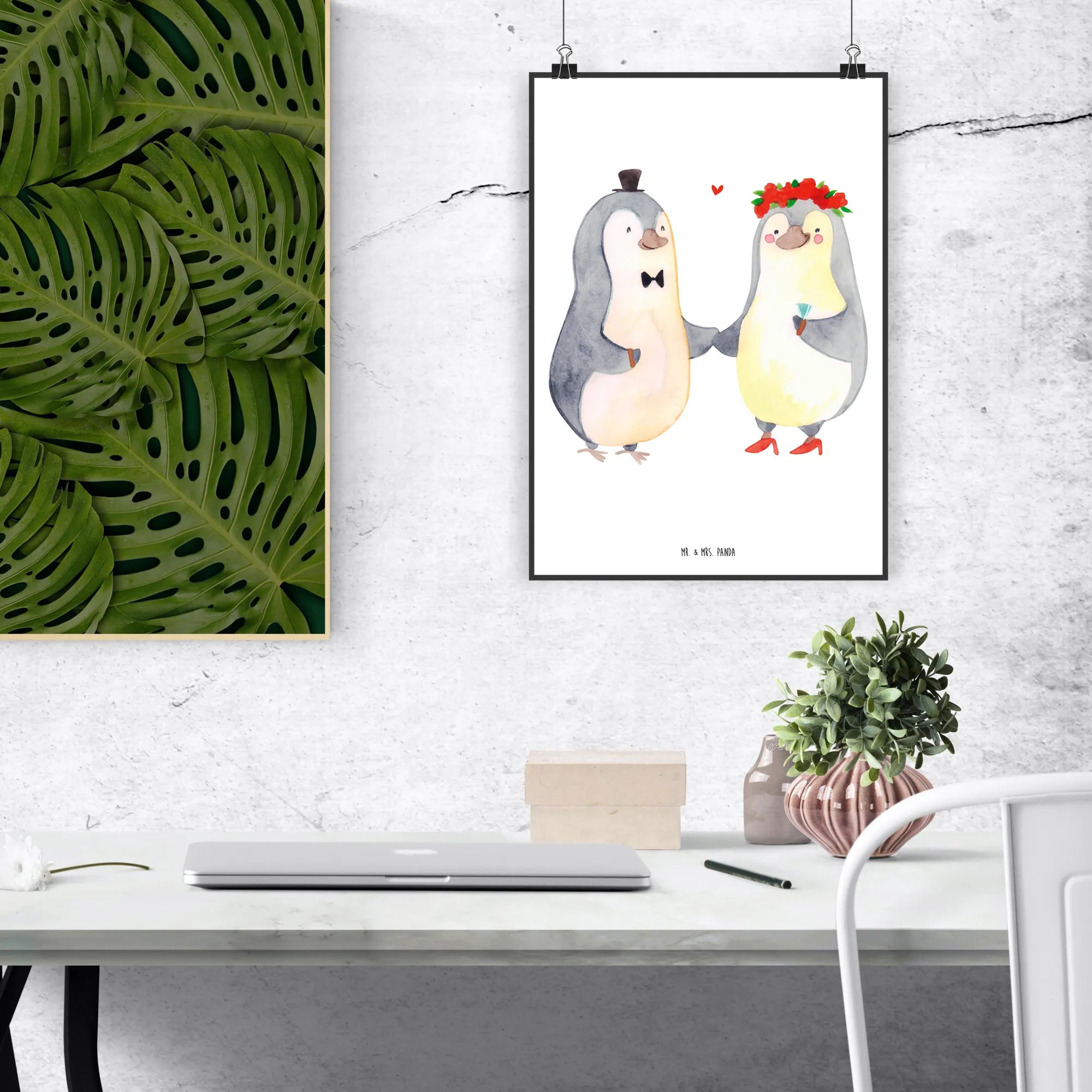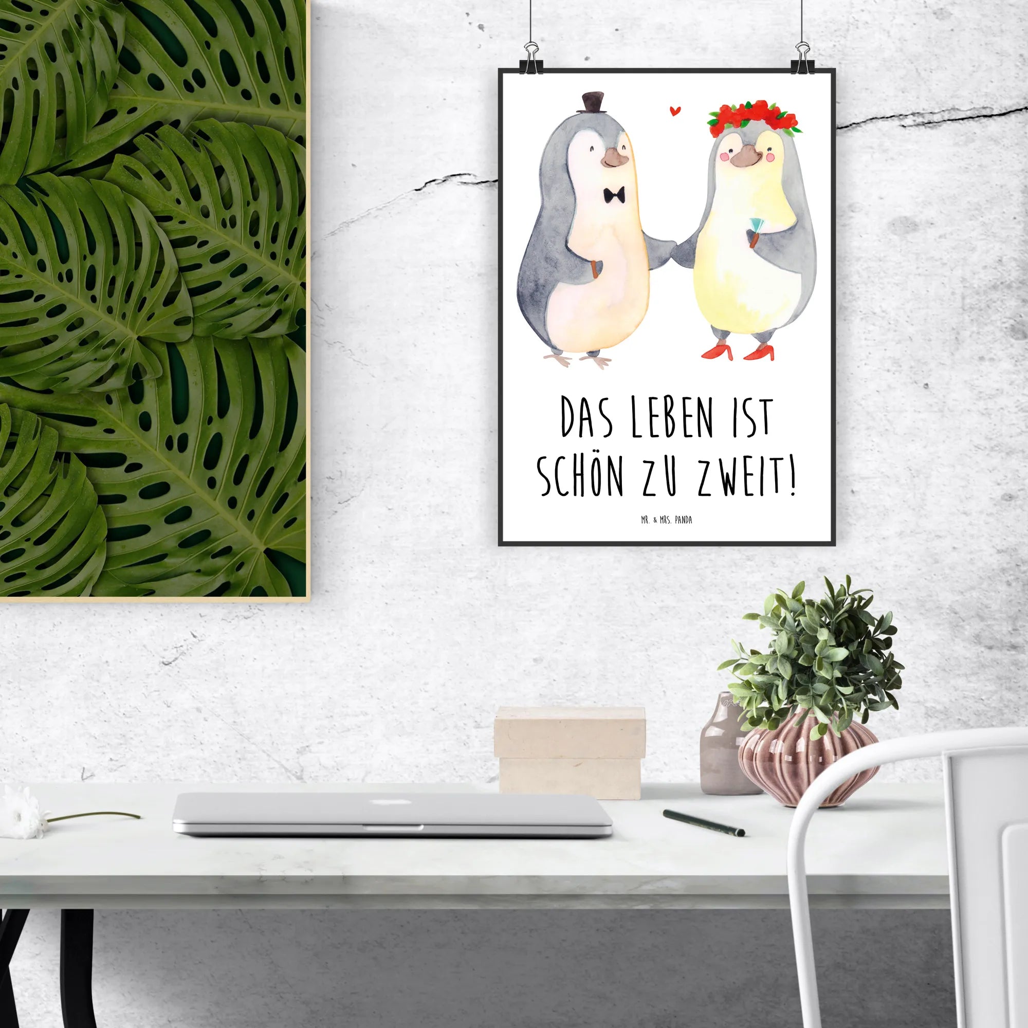 Plakat Ślub pingwinów - DIN A3 - z napisem - biały