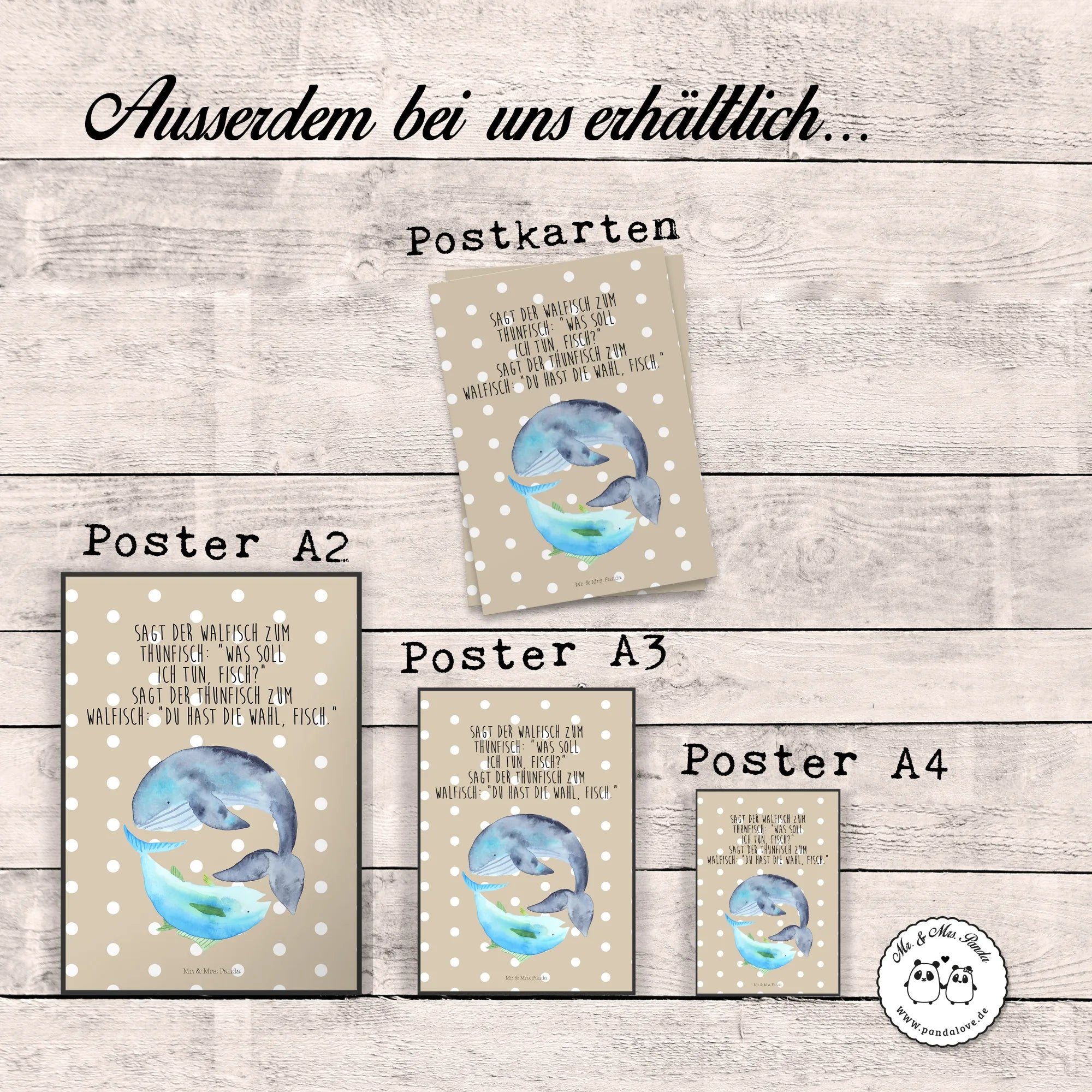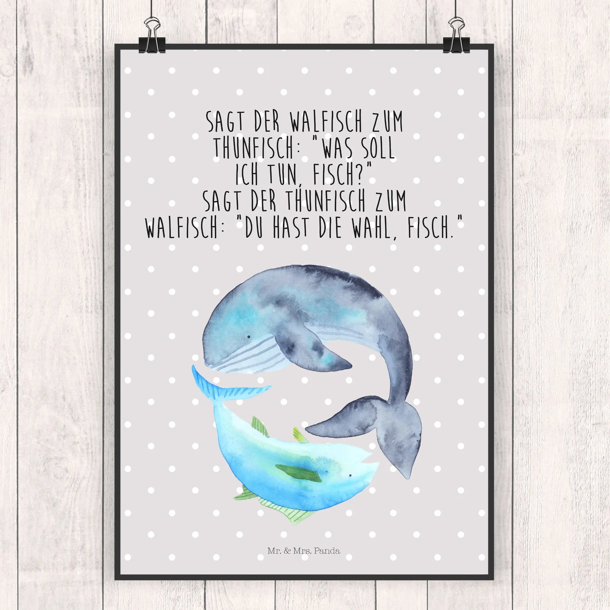 Plakat wieloryb tuńczyk - DIN A0 - z napisem - Pastelowy żółty