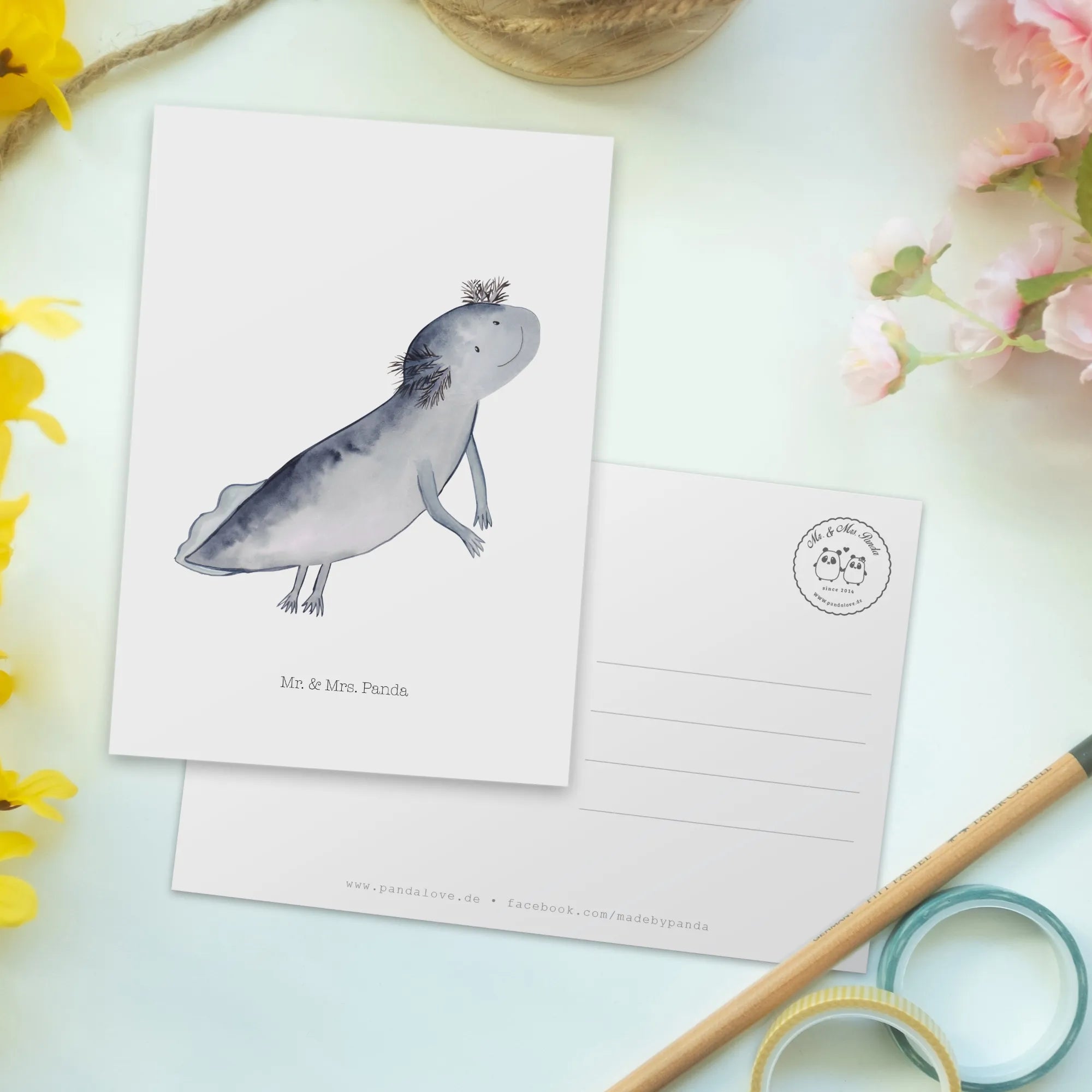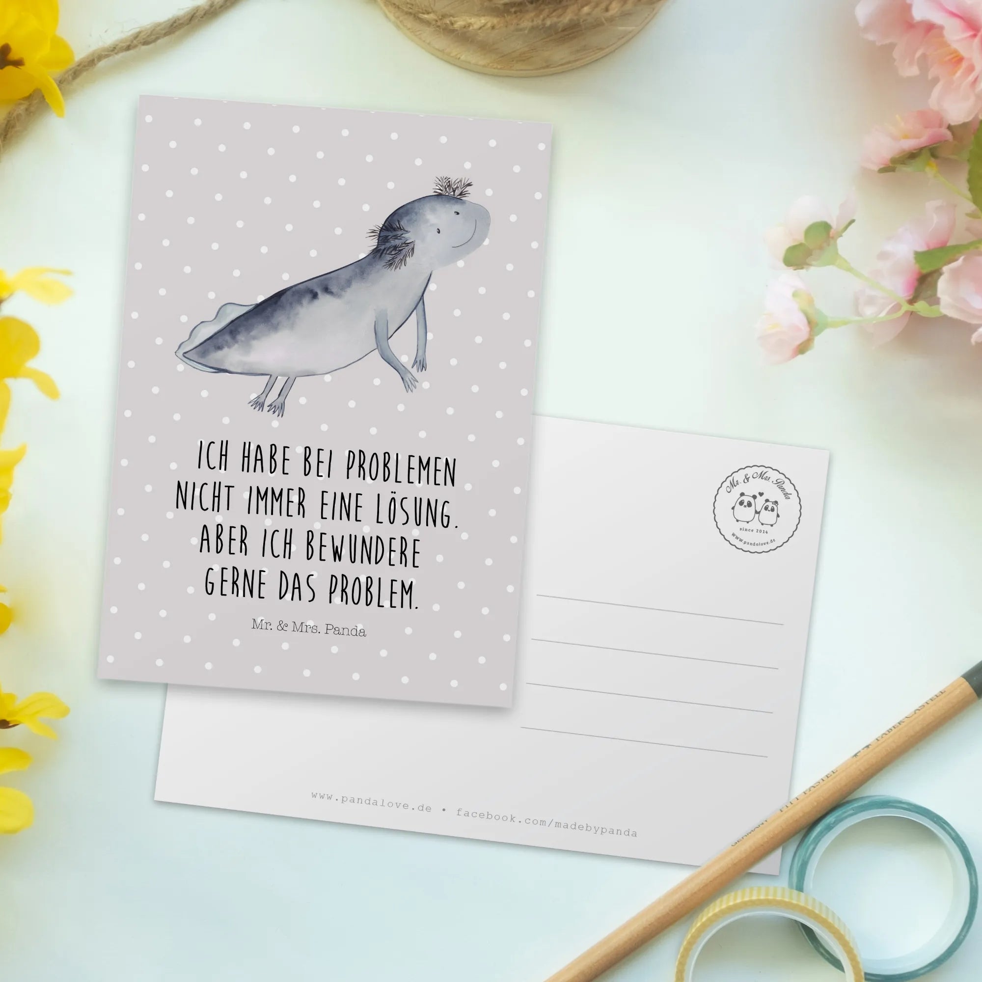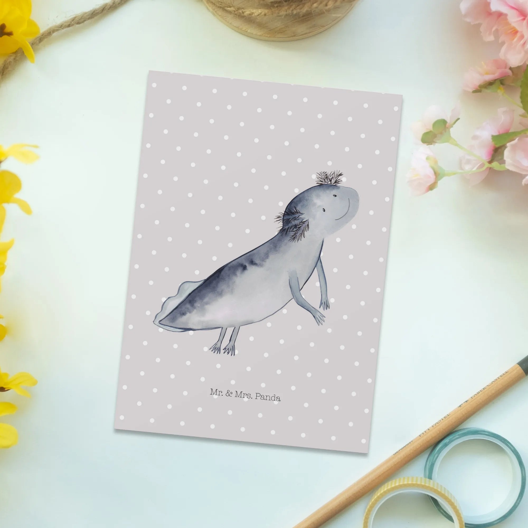 Pocztówka ajolotl pływanie - z napisem - Pastelowy szary