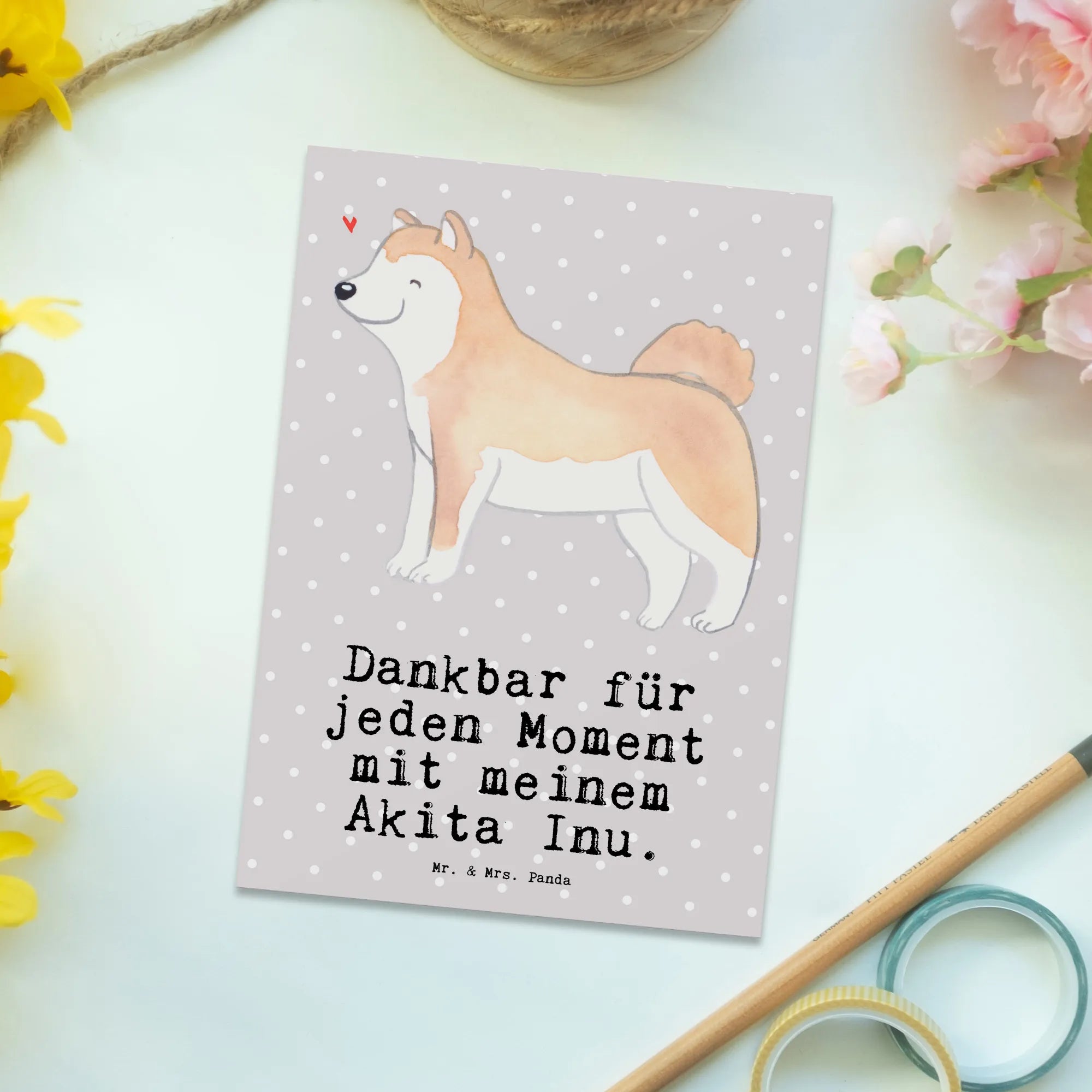 Pocztówka Akita Inu chwila - Pastelowy szary